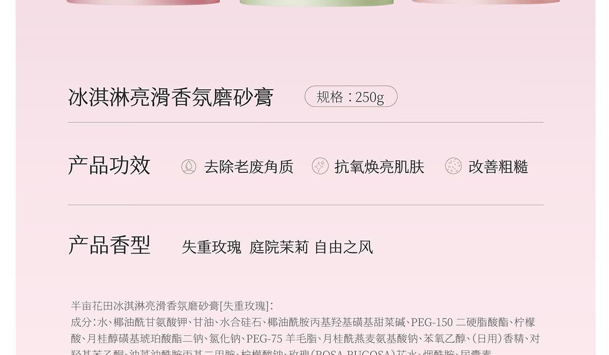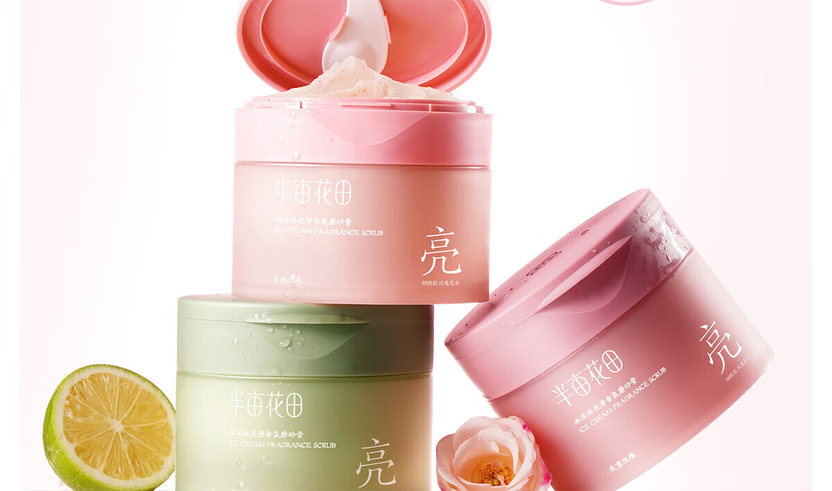 半亩花田磨砂膏去角质 冰淇淋果酸亮滑香氛沐浴露 沐浴磨砂二合一 磨砂膏250g 乳木果身体磨砂膏250g*3