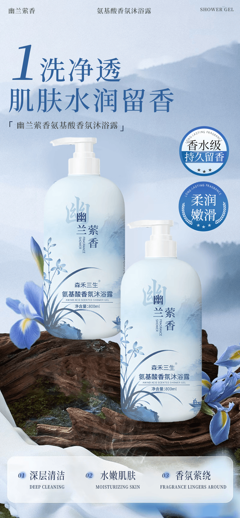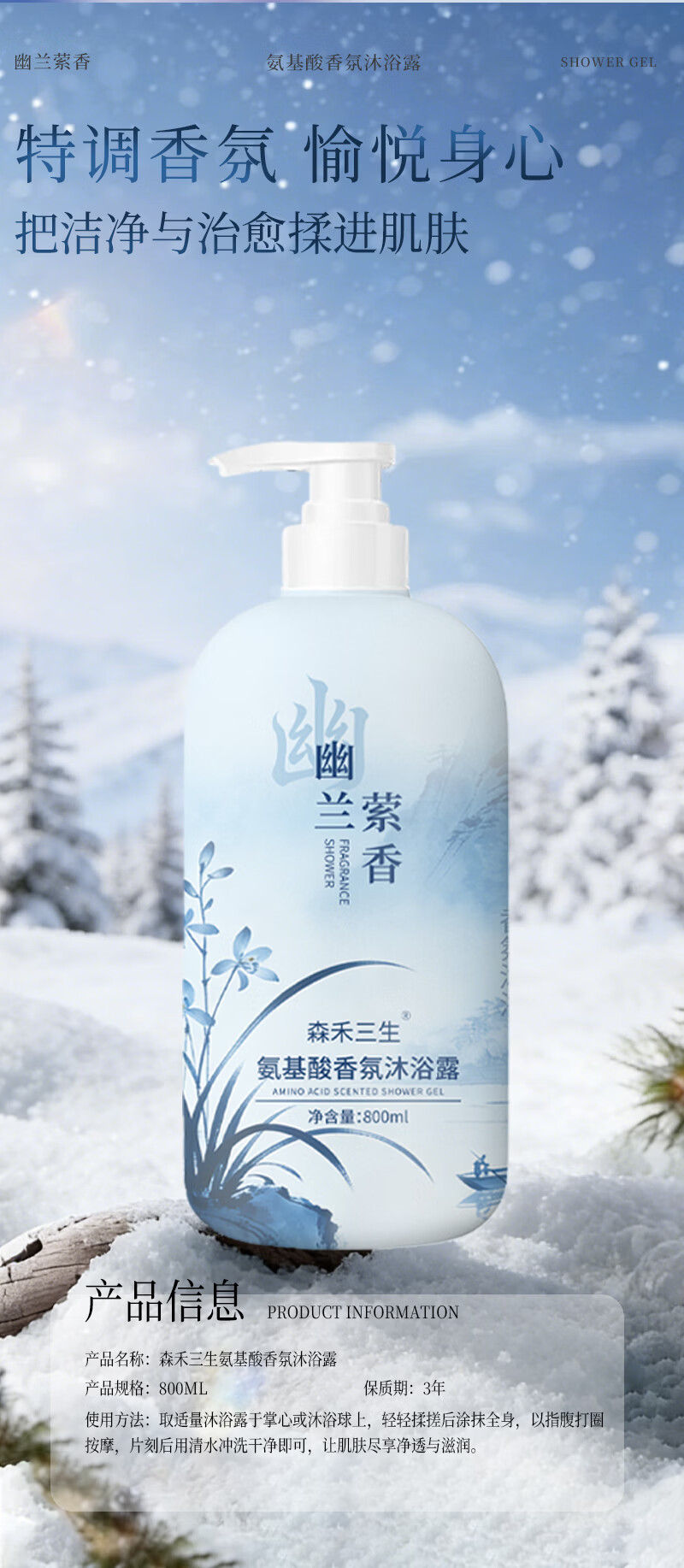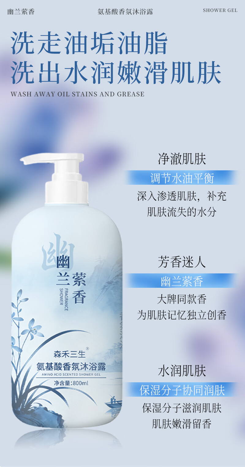 森禾三生氨基酸幽兰萦香沐浴露持久留香沐浴乳清爽保湿男女士大容量家庭版 香氛氨基酸沐浴露800ml×1瓶