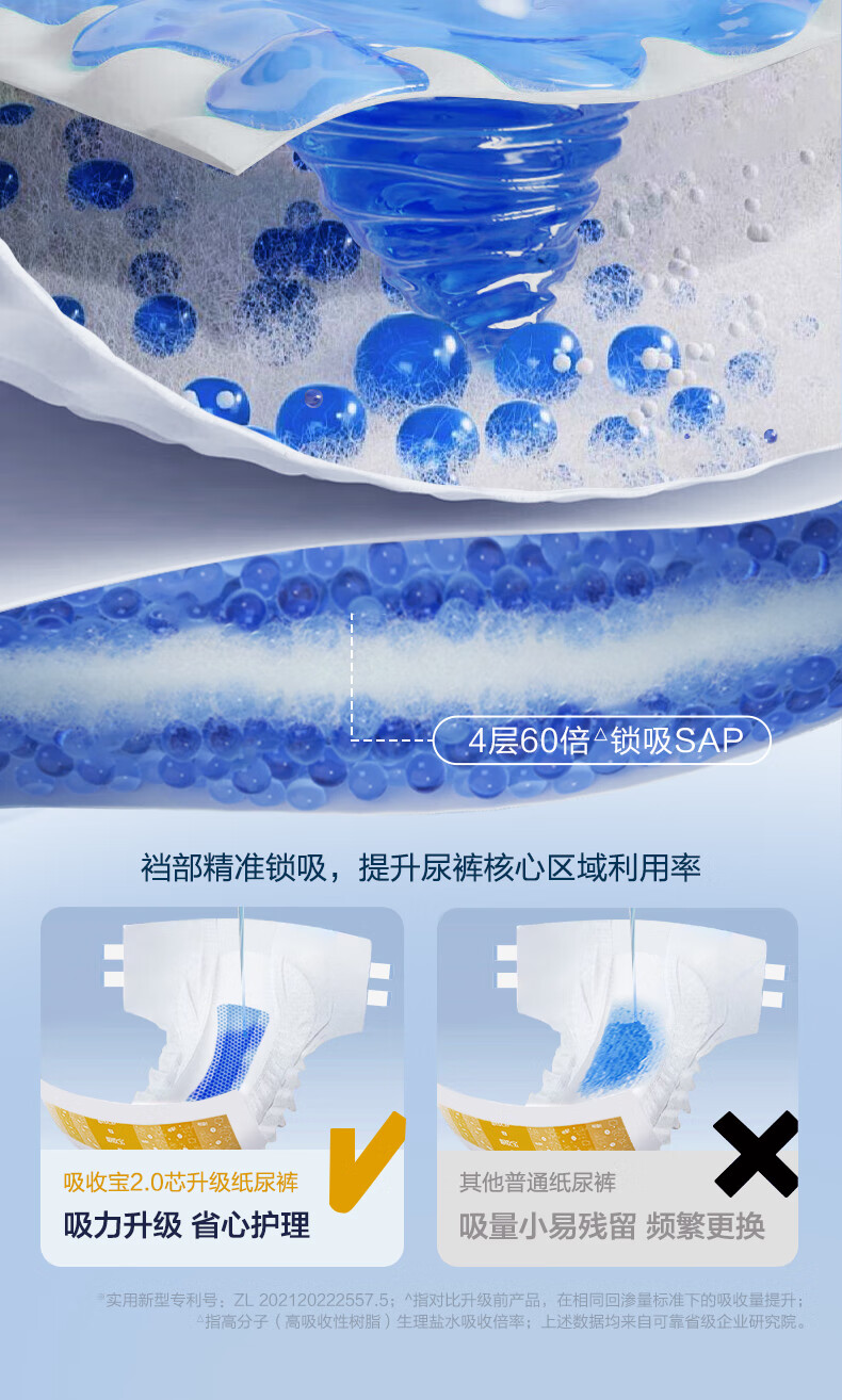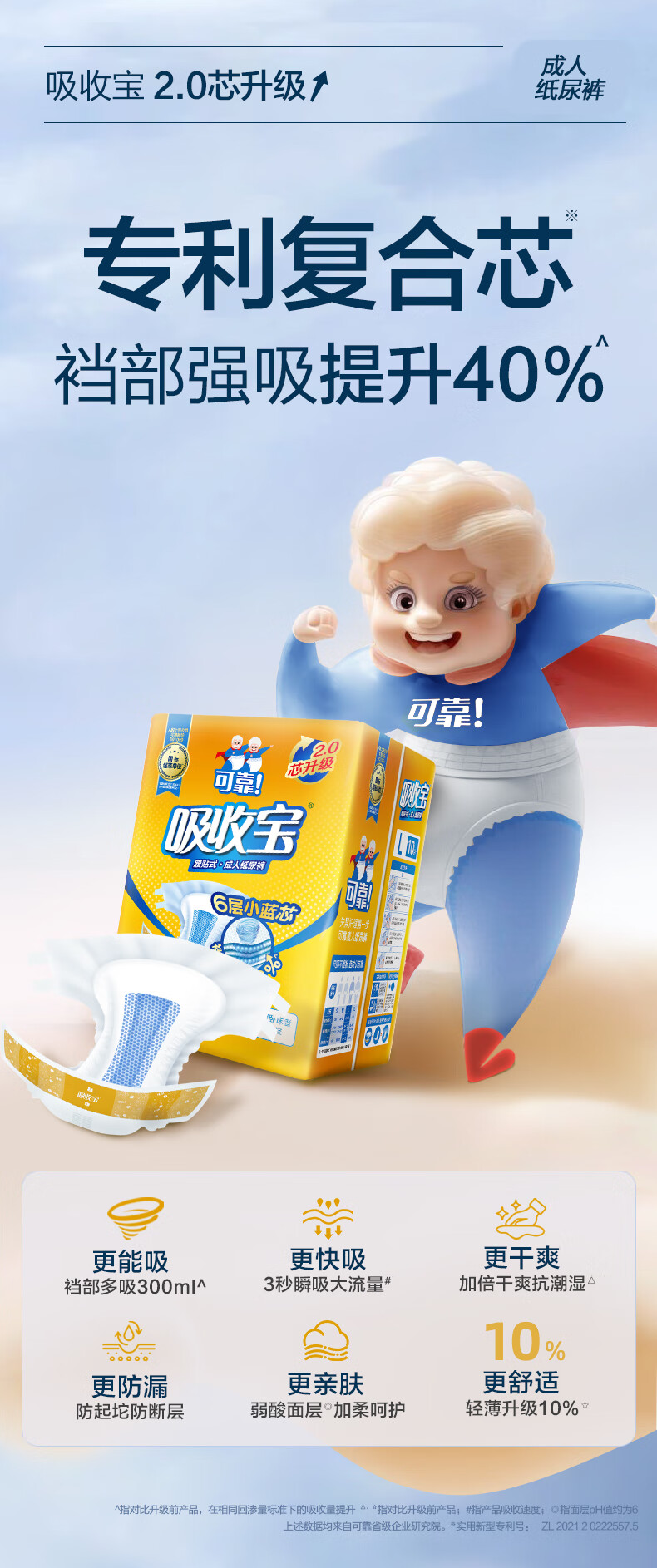 可靠(COCO)吸收宝2.0成人纸尿裤XL80片(臀围≥110cm)芯升级大码老年人尿不湿