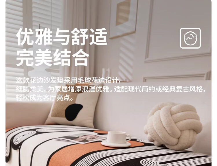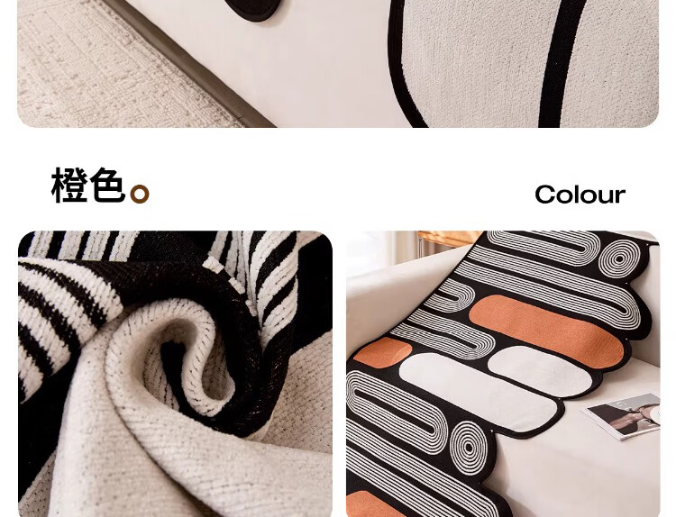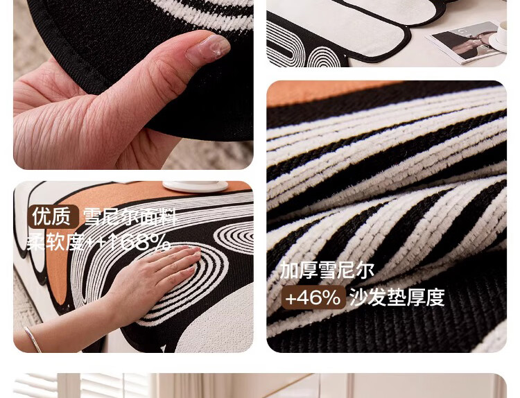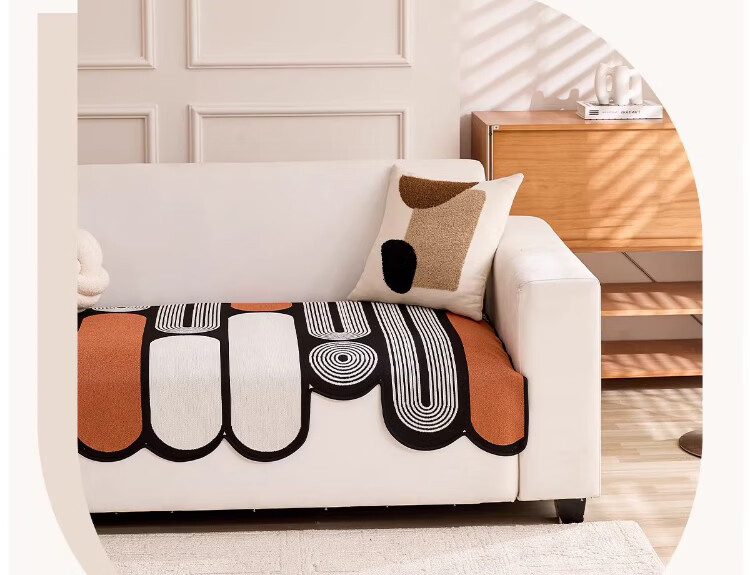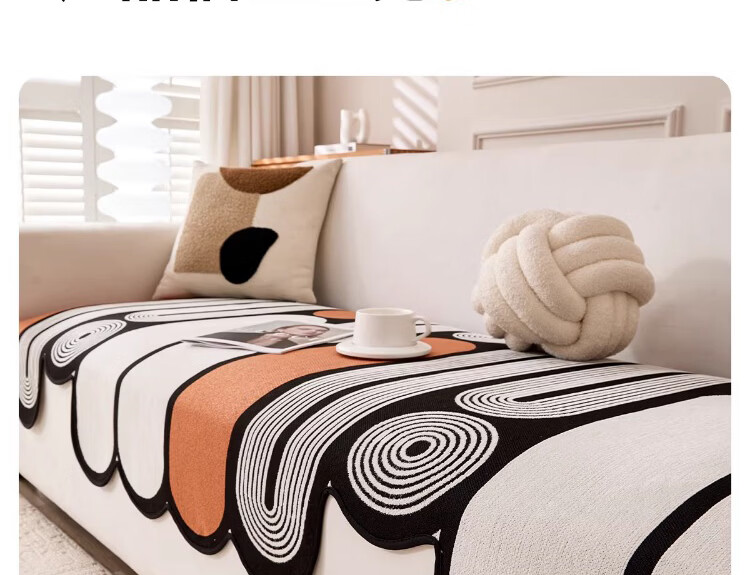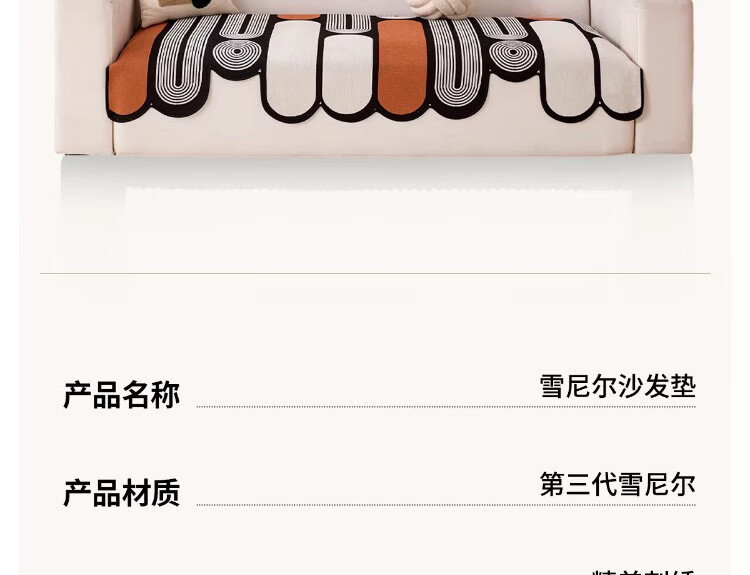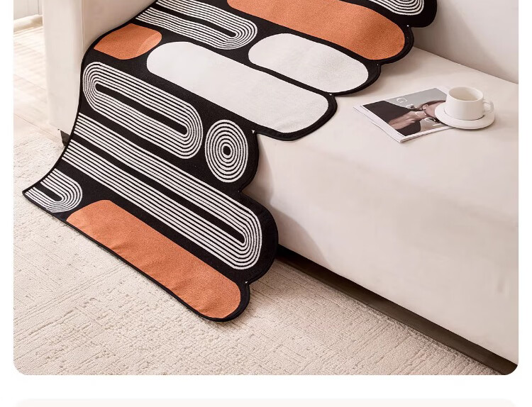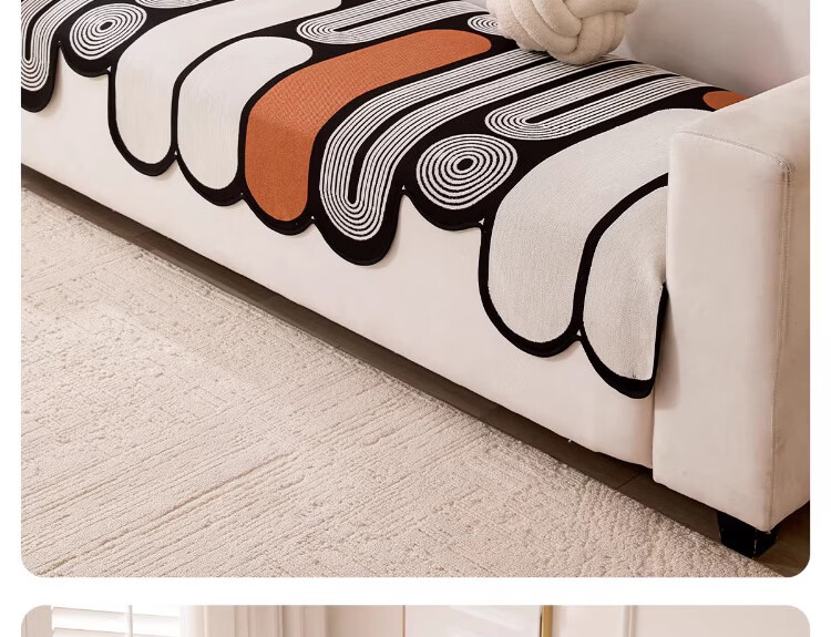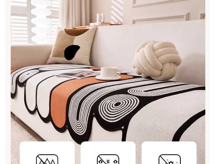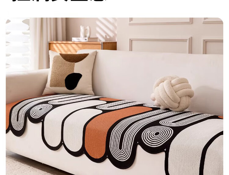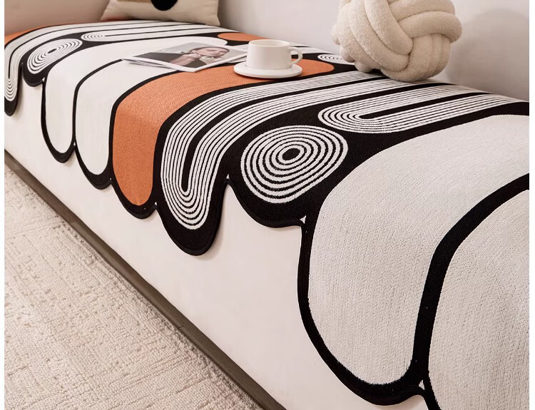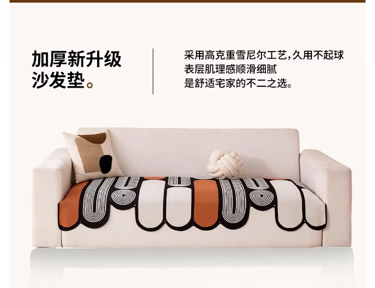 无印良品异形沙发垫四季通用高克重雪尼尔固定防滑沙发坐垫高级感加厚垫布 谜宫-橙色【高克重雪尼尔 云柔触感】 70*280cm(适用于座位长度270-300cm沙发)