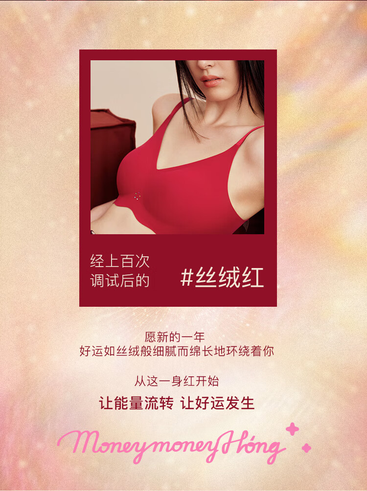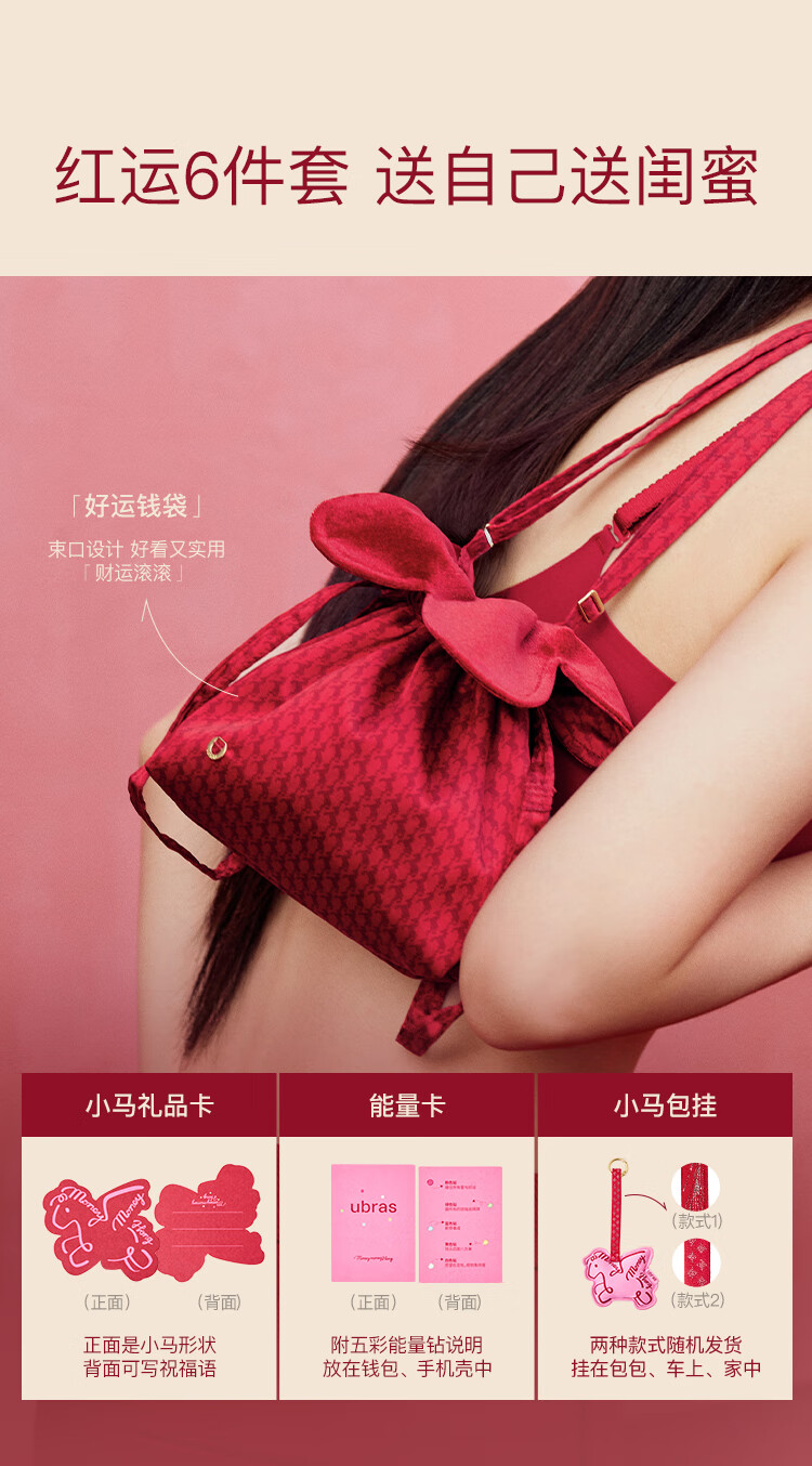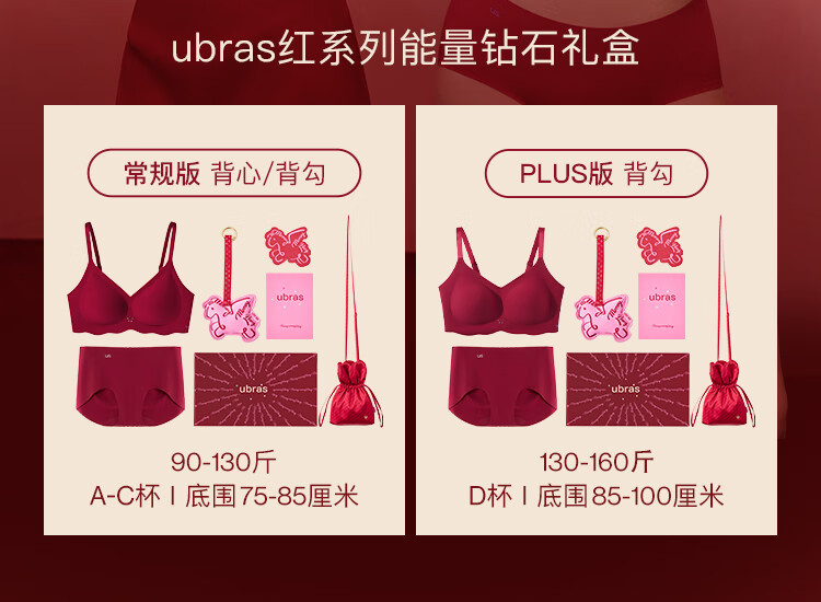 ubras虞书欣同款26迎新钻石红盒无尺码内衣女本命年骐骥红礼盒背勾