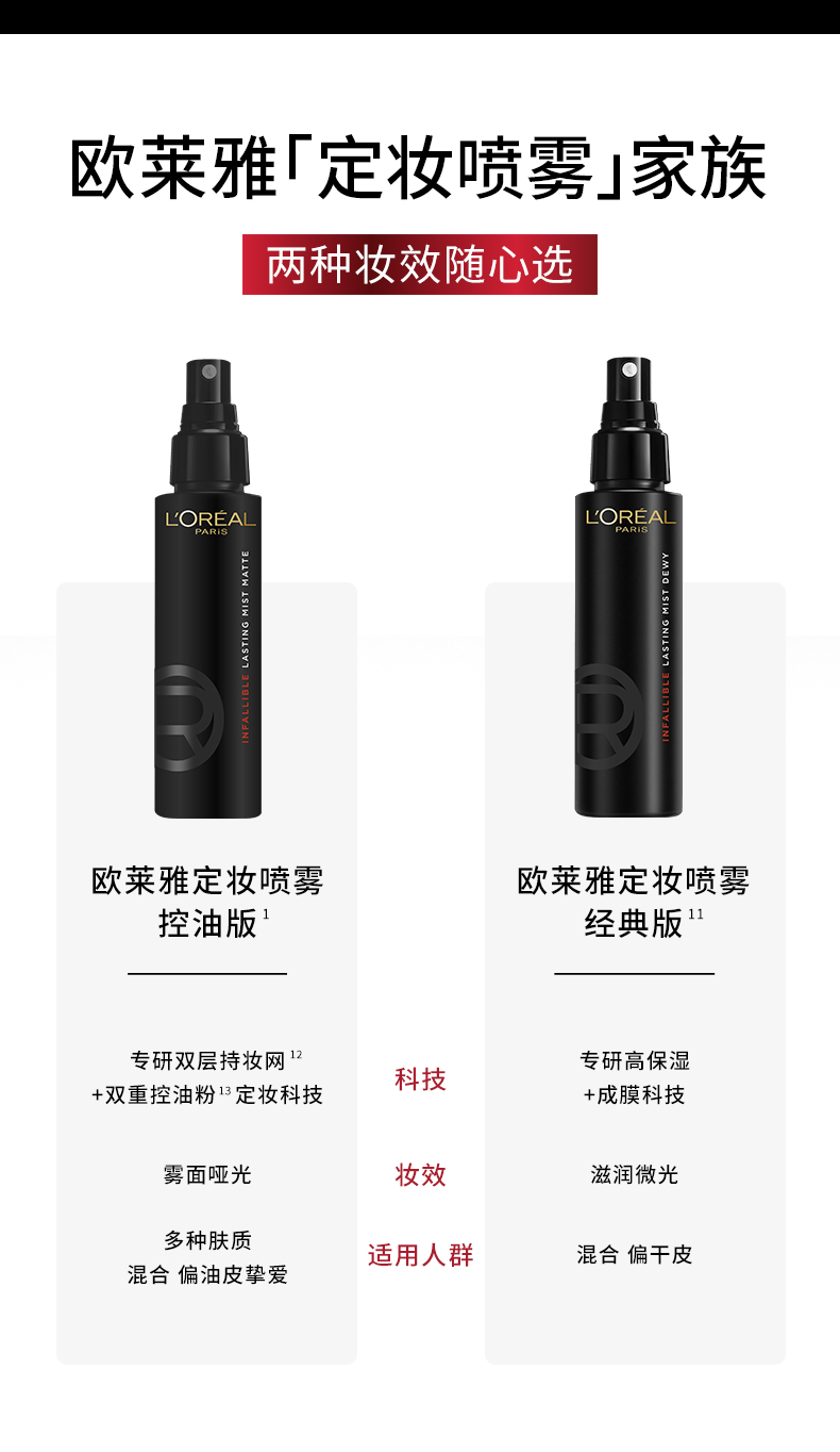 欧莱雅定妆喷雾控油版100ml散粉防汗哑光持久不脱妆圣诞礼物送女友