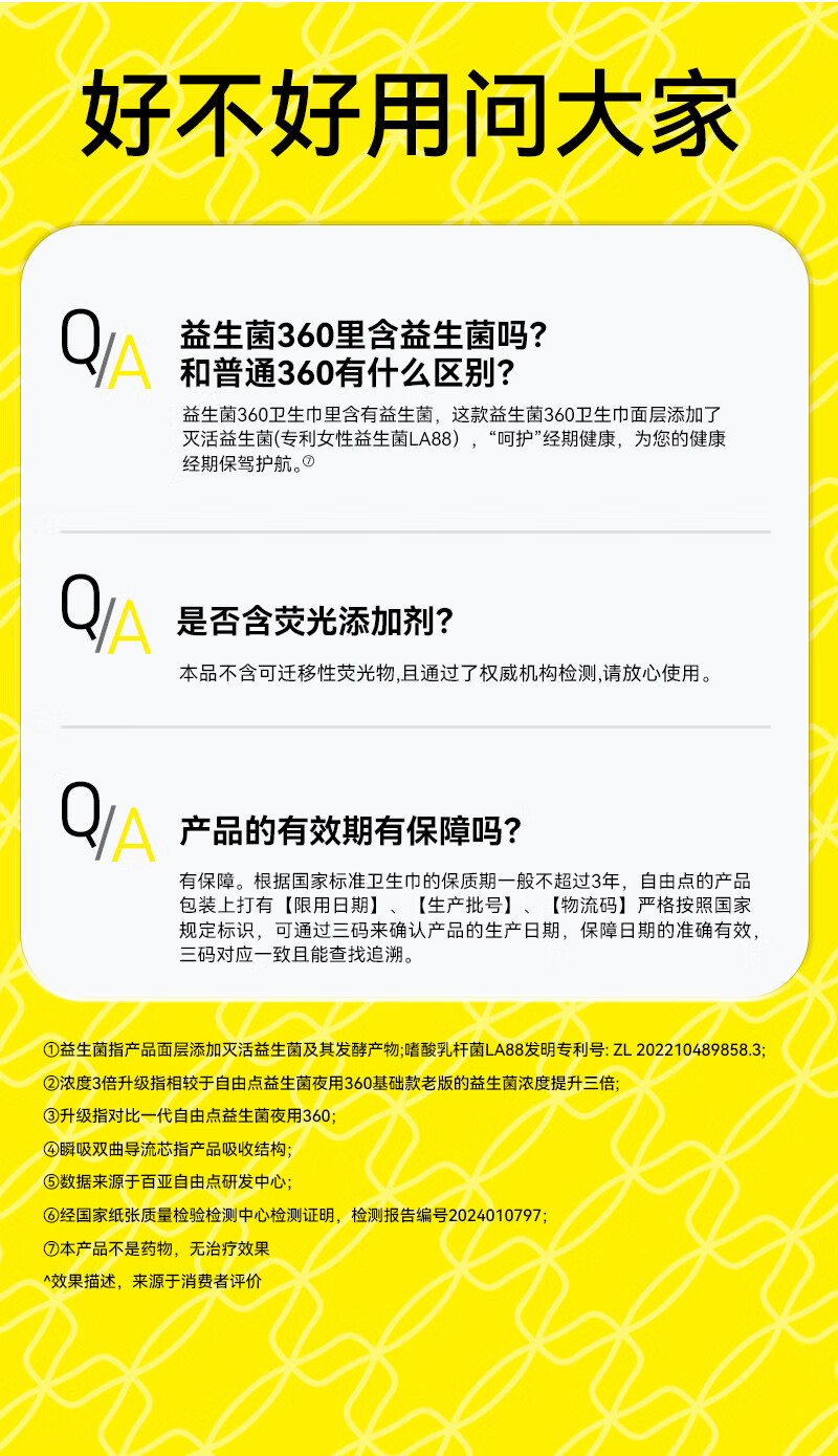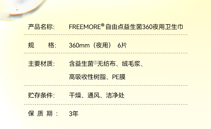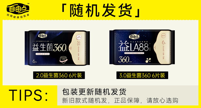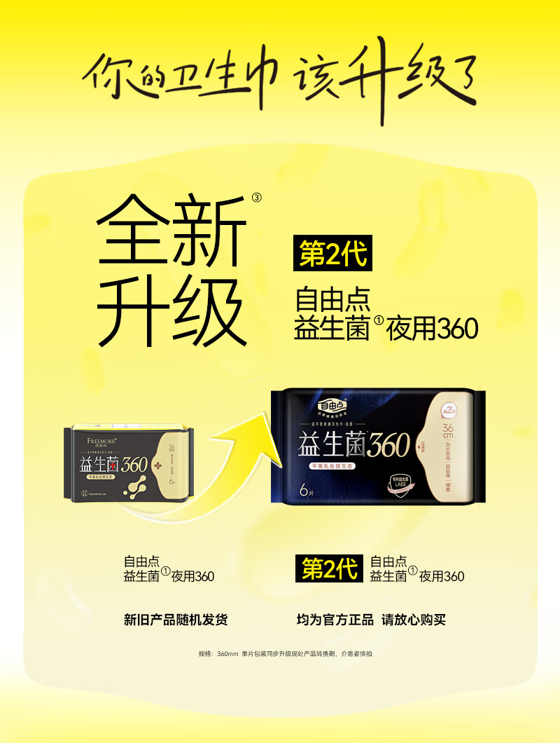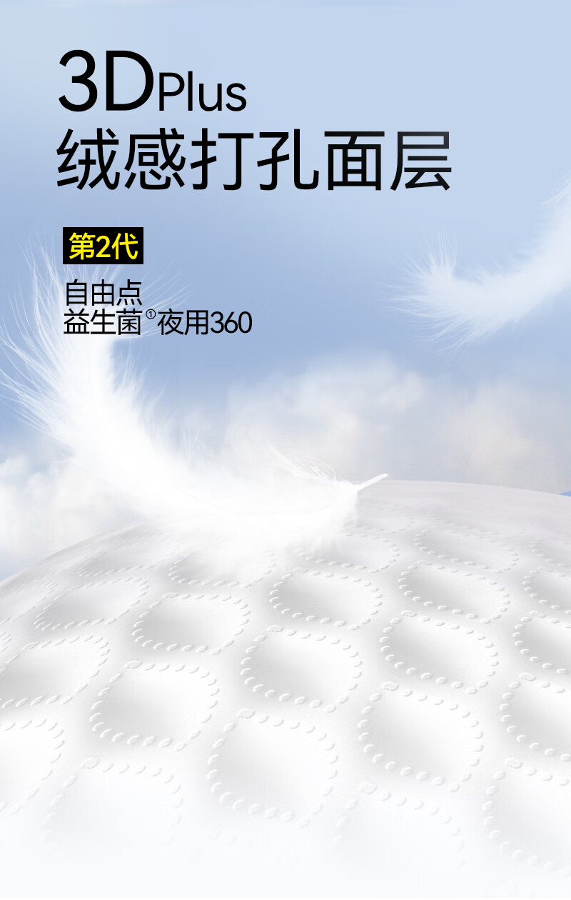 自由点益生菌360 超薄无感透气卫生巾 夜用姨妈巾360mm4包24片 京东自营