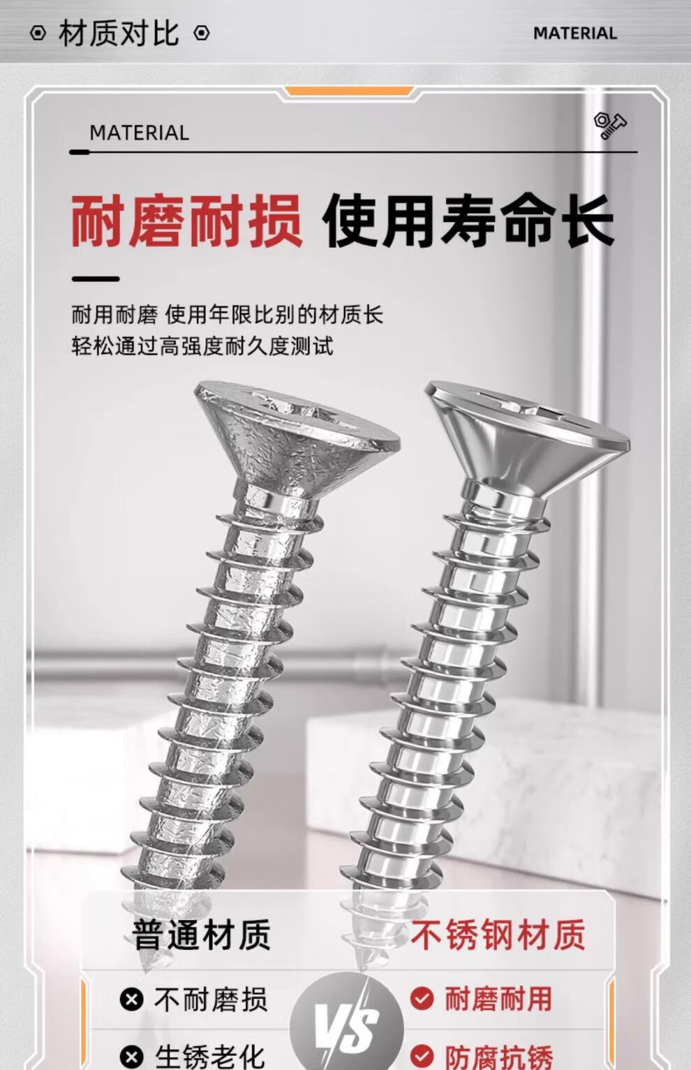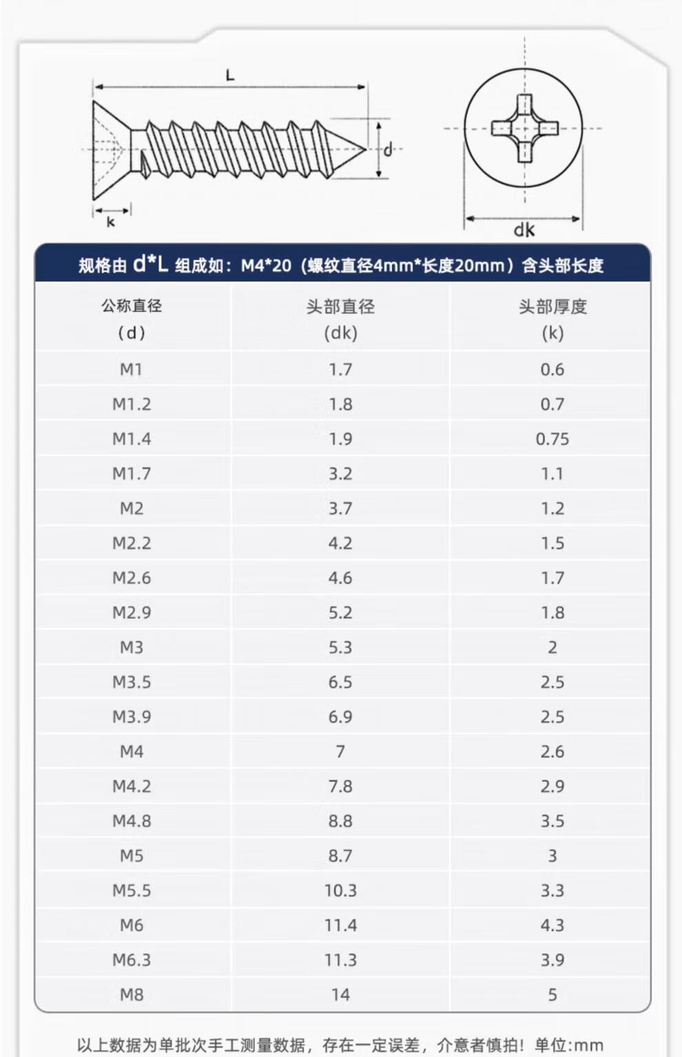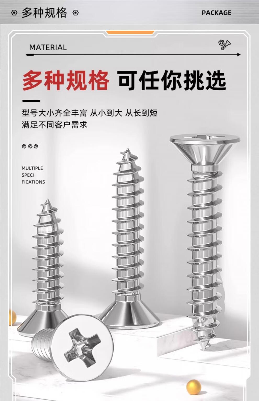 天卓五金GB846沉头自攻螺丝304不锈钢十字平头加长木螺钉M2.9M3.5M4.2M5.5 2.2*4.5【500个】