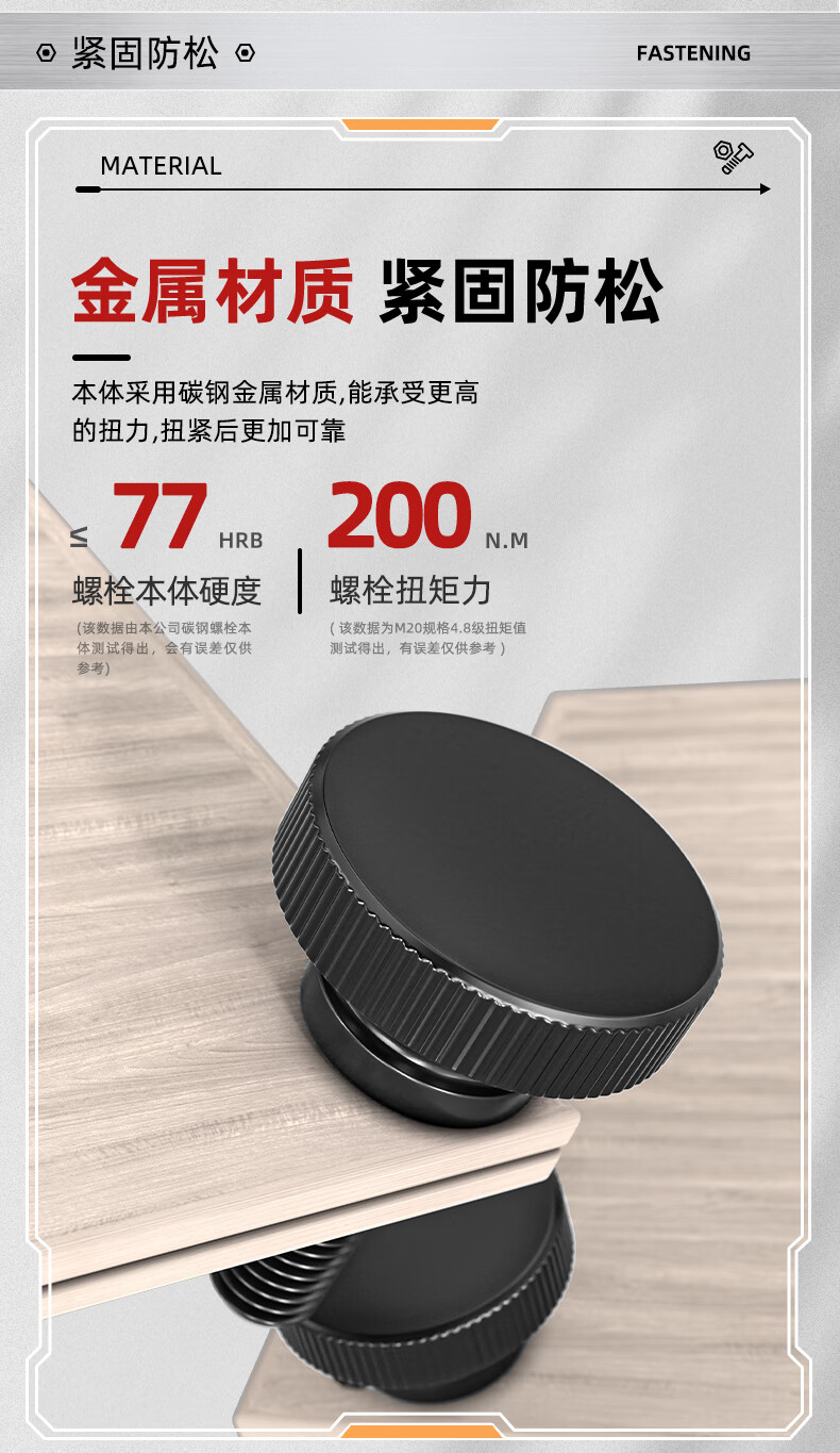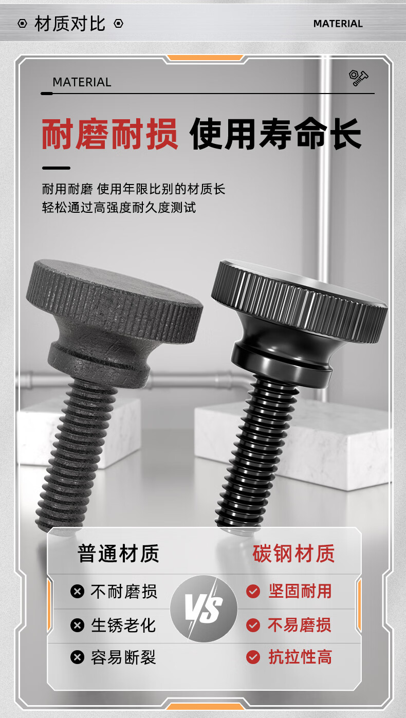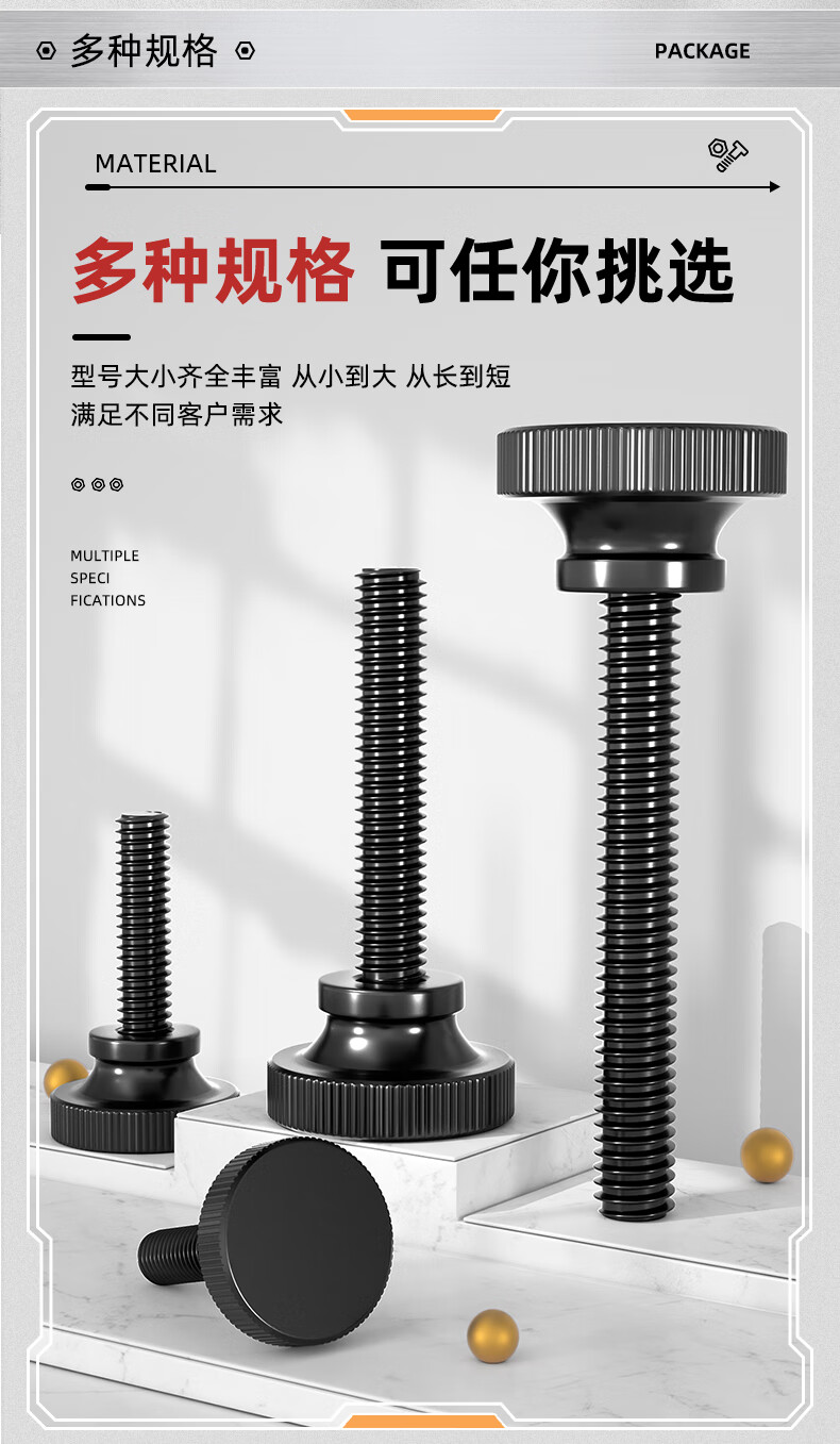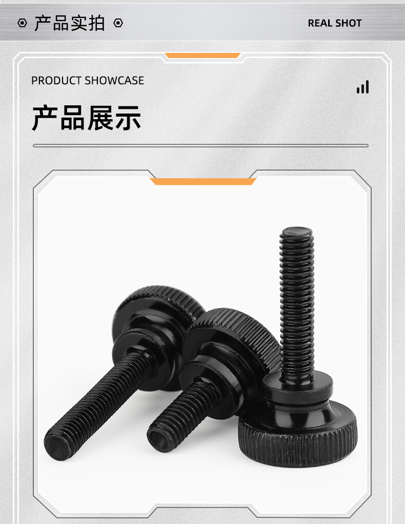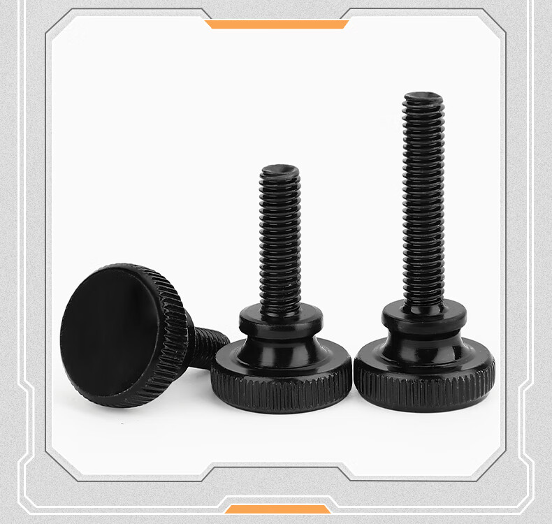 天卓五金GB834黑色手拧螺丝镀黑锌高头滚花大头台阶调节螺钉m3m4m5m6m8m10 304母平弹套装M3-8