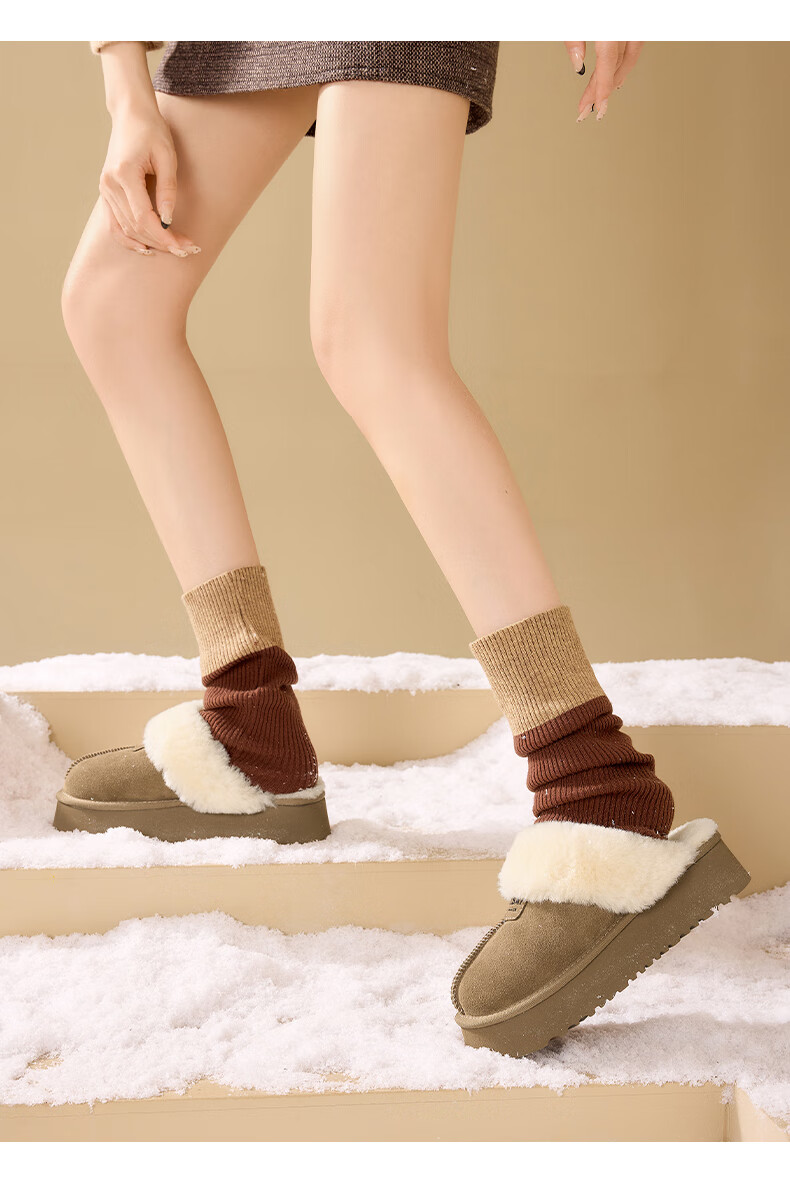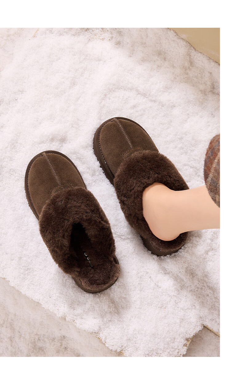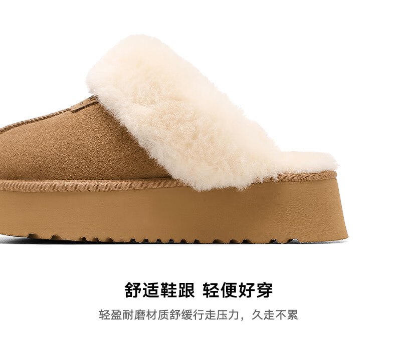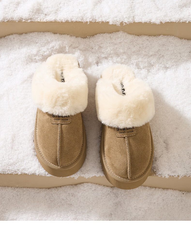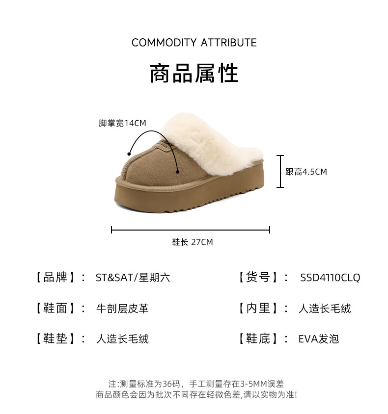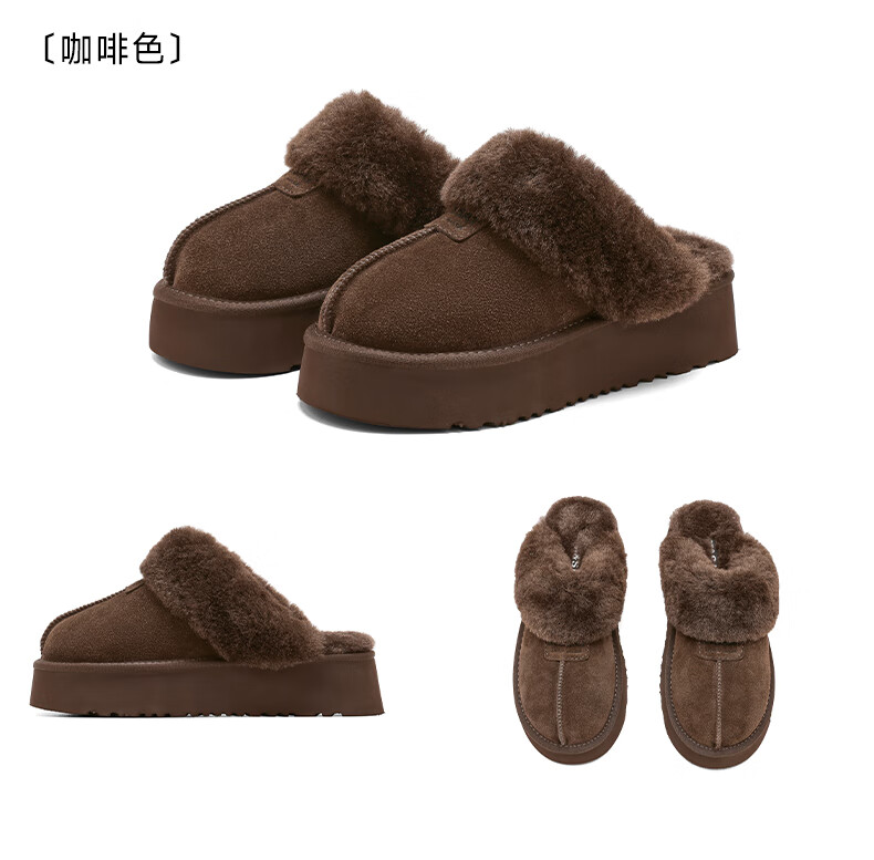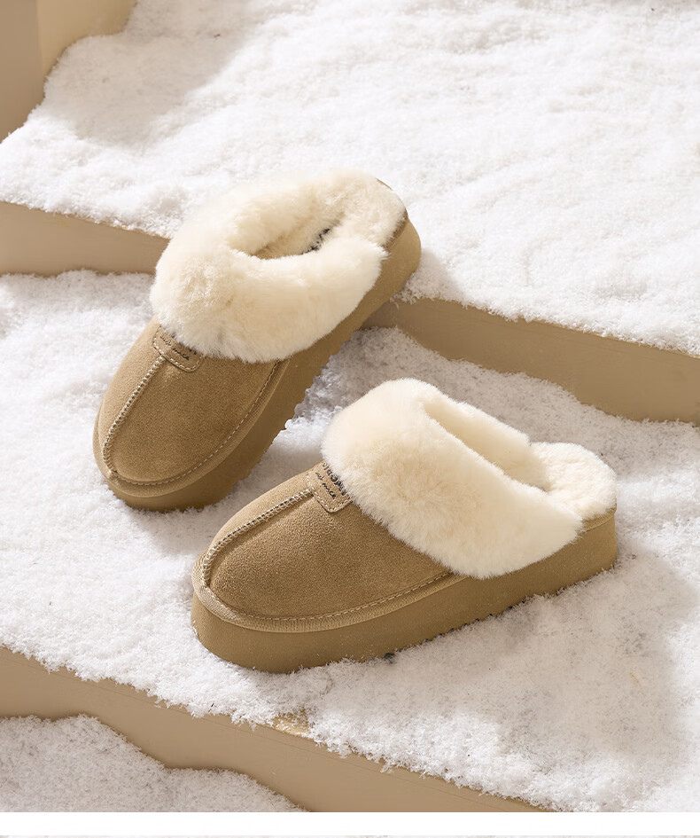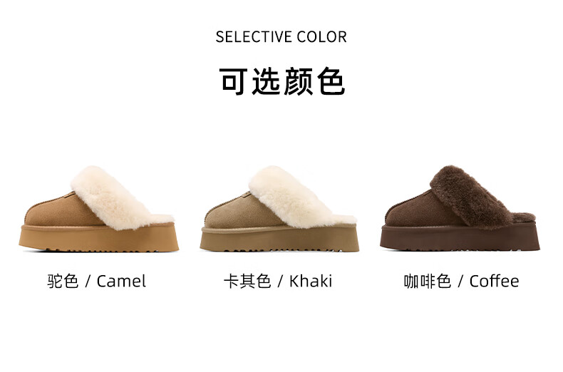 星期六厚底半拖雪地靴女款2025新款冬季加绒加厚毛毛棉拖鞋外穿保暖棉鞋 驼色 【超暖绒毛】跟高4.5cm 36