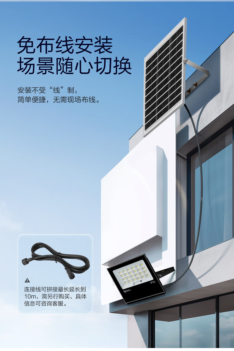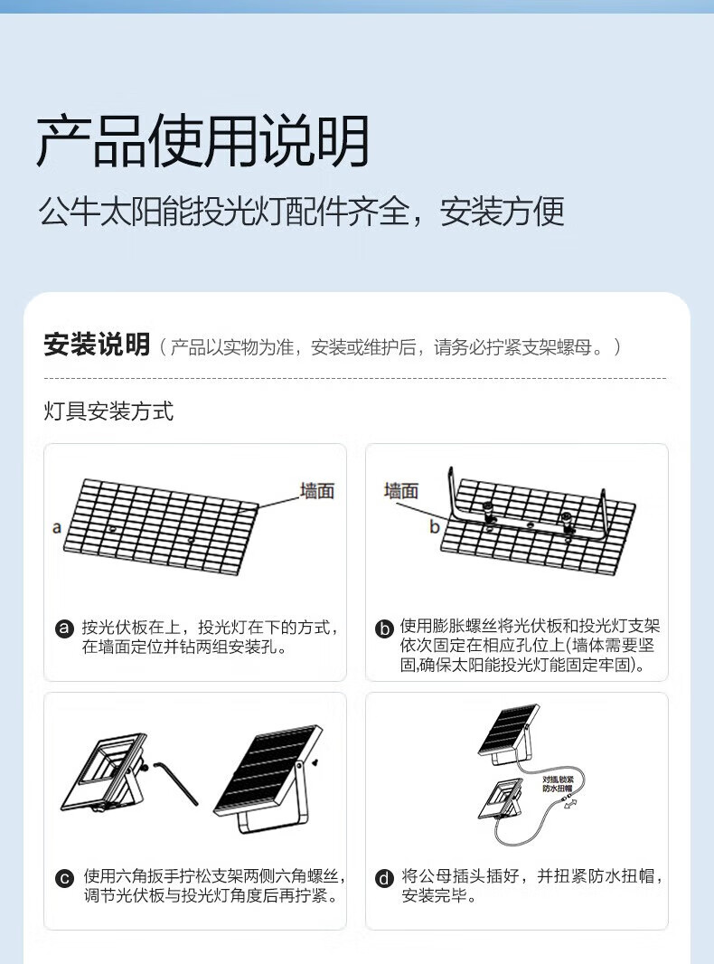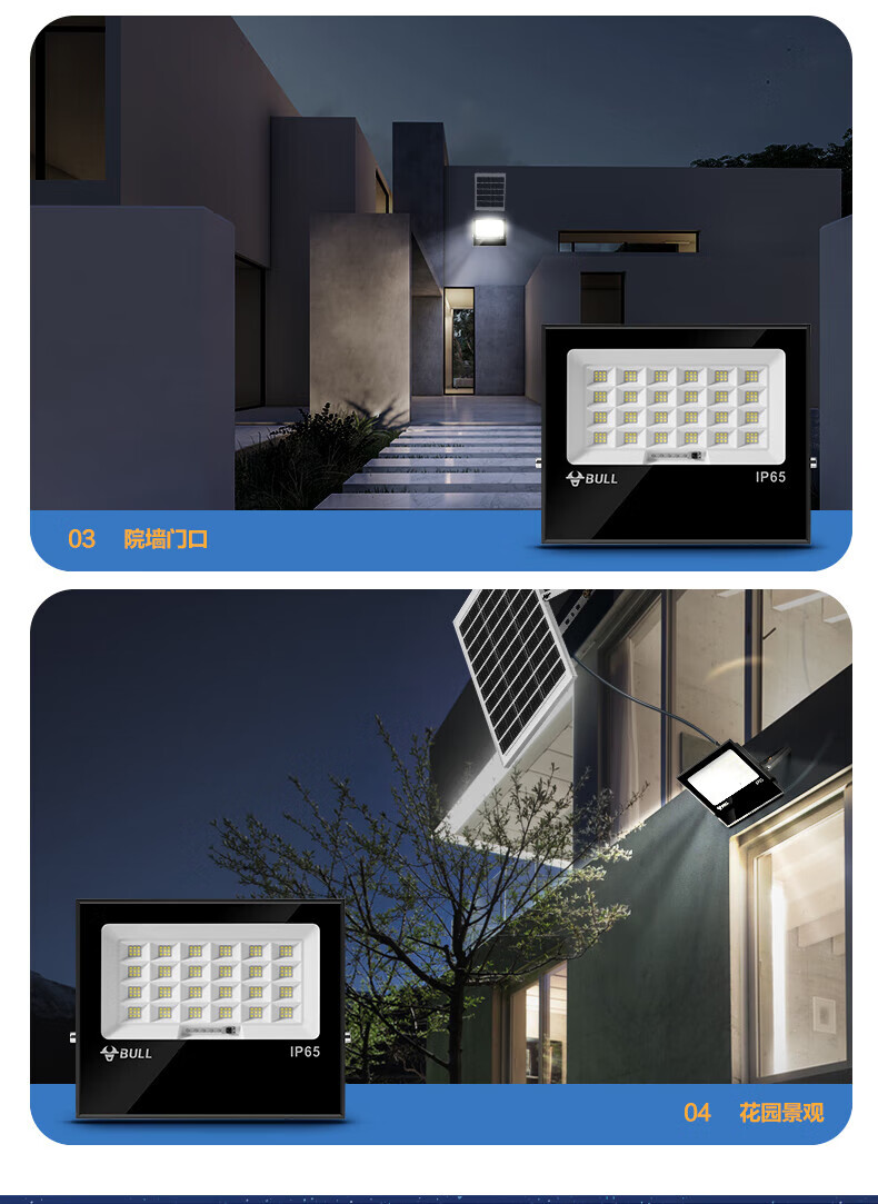 公牛太阳能照明灯家用院子壁灯大门口投光灯户外防水大庭院灯 太阳能50W+遥控
