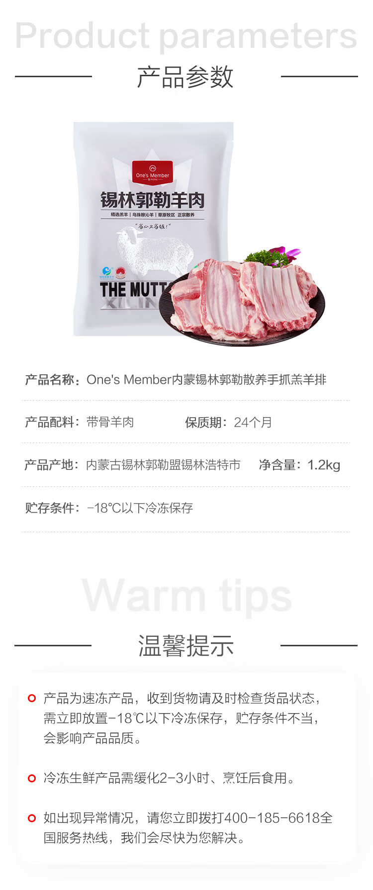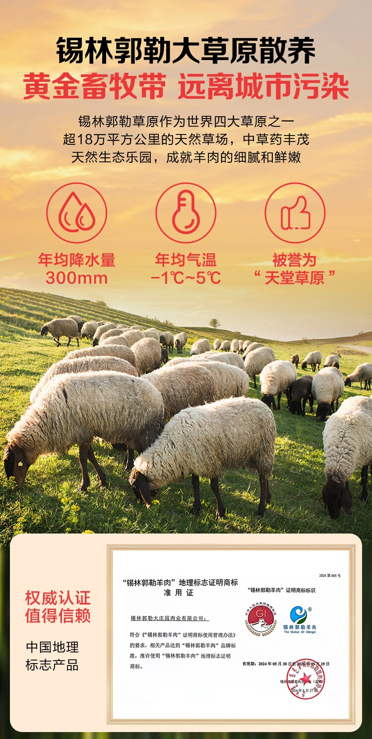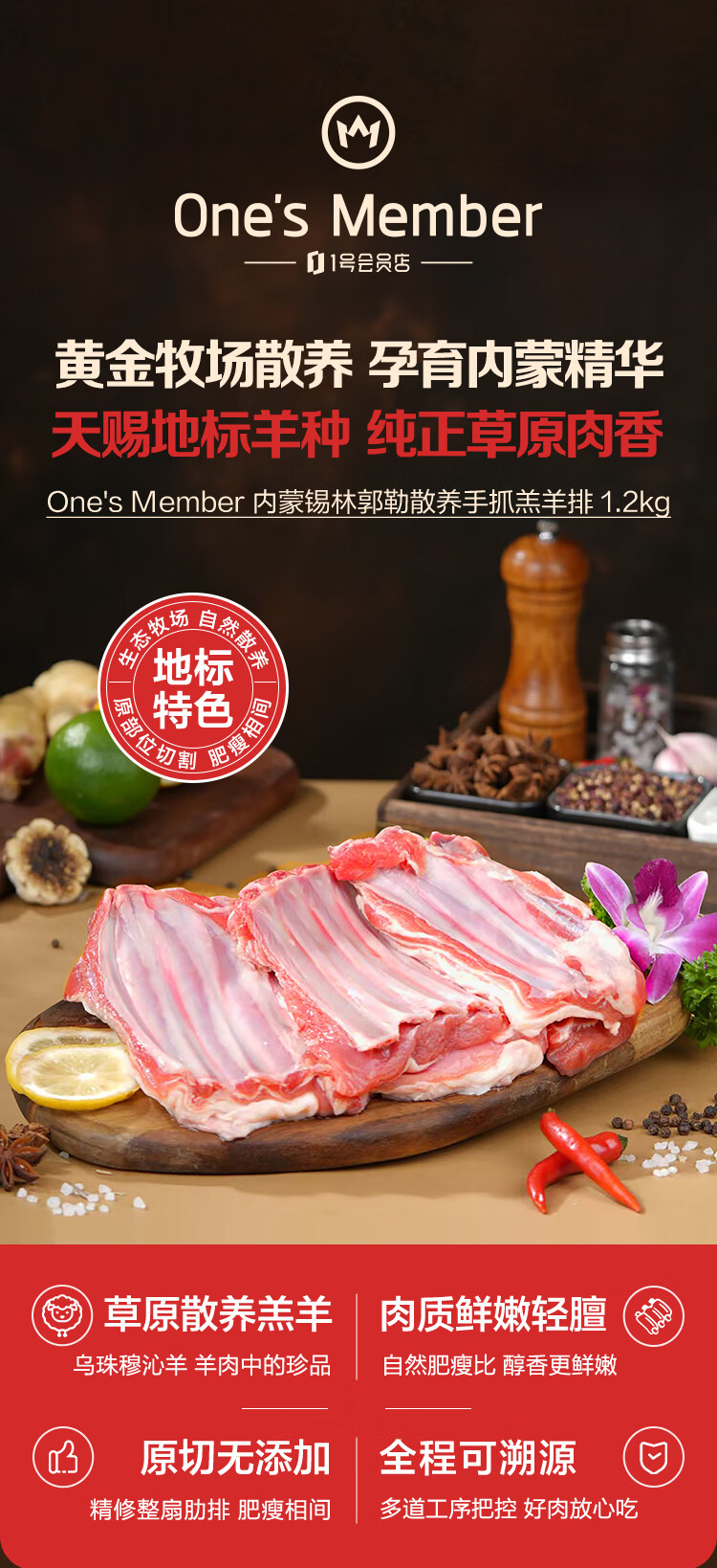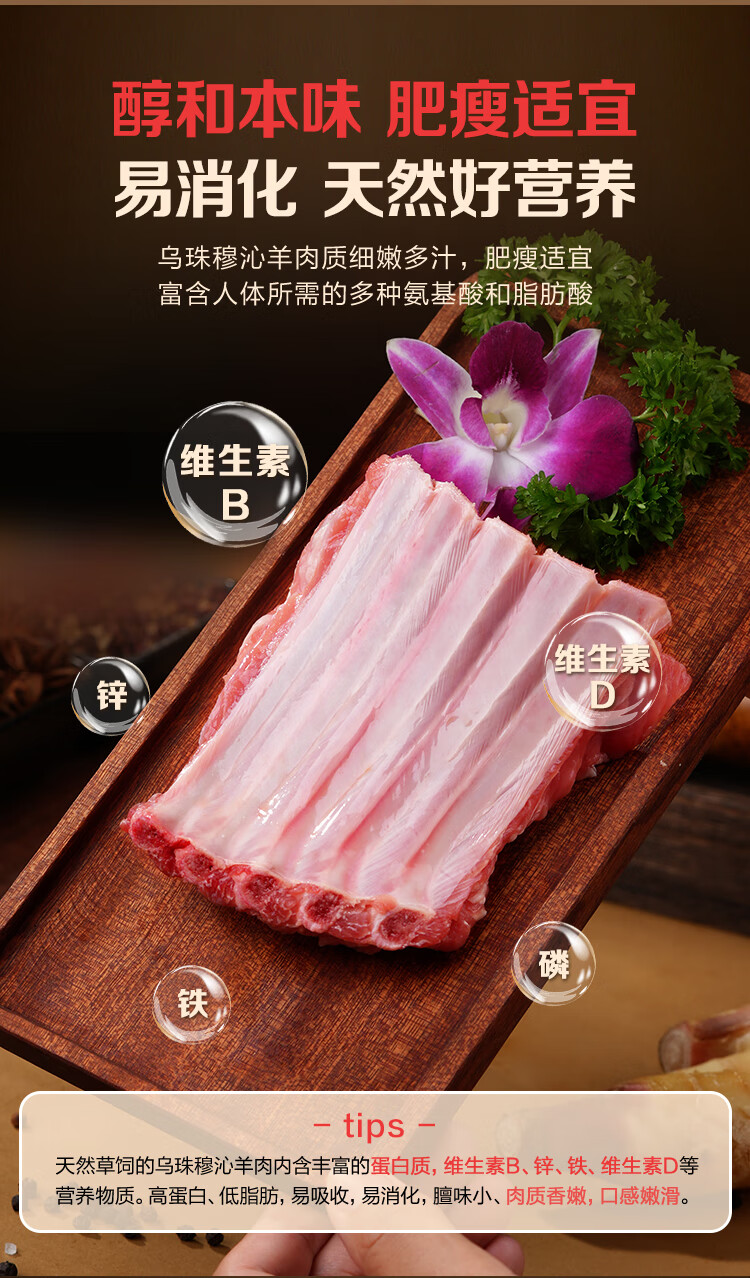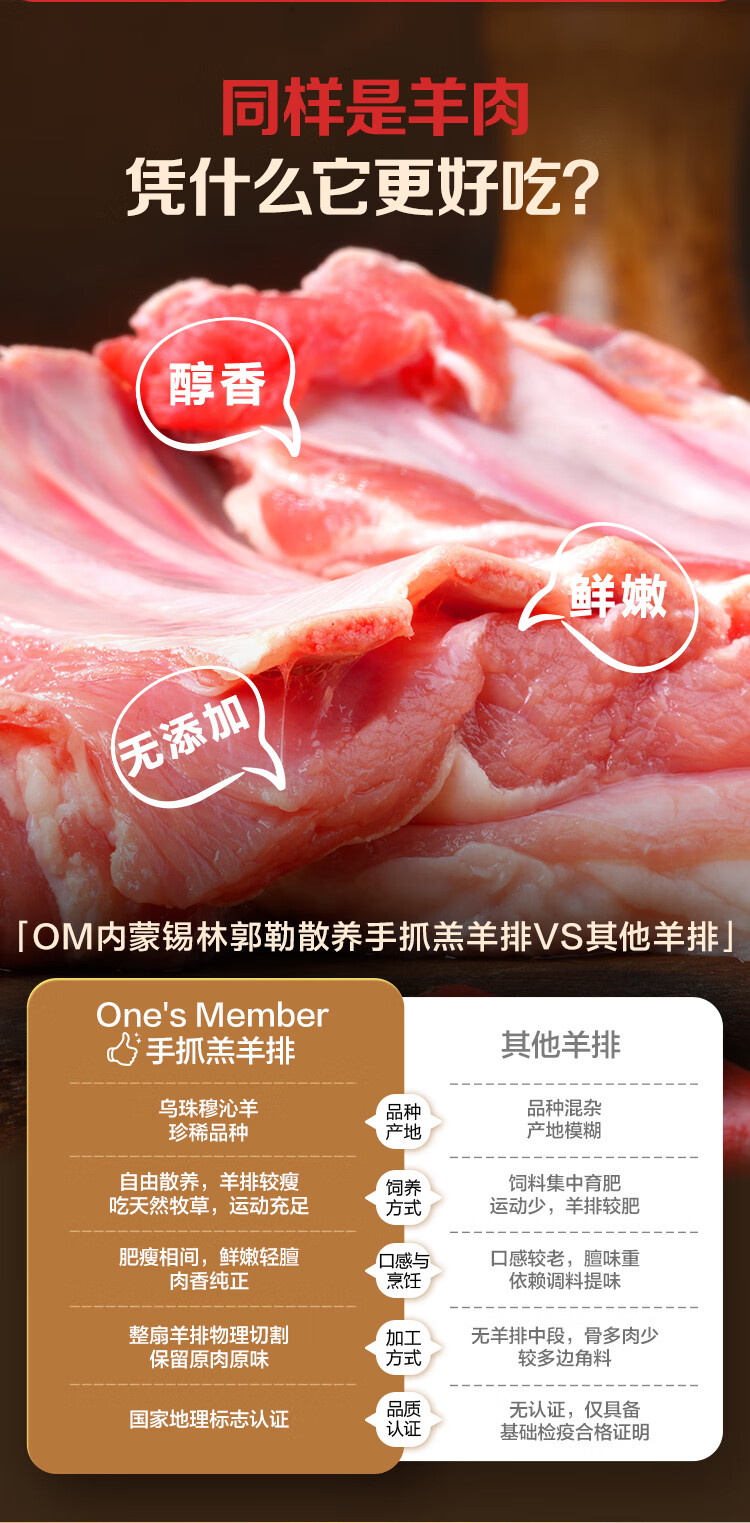 1号会员店内蒙锡林郭勒散养手抓羔羊排2.4斤 正宗乌珠穆沁羊草地散养羊肉