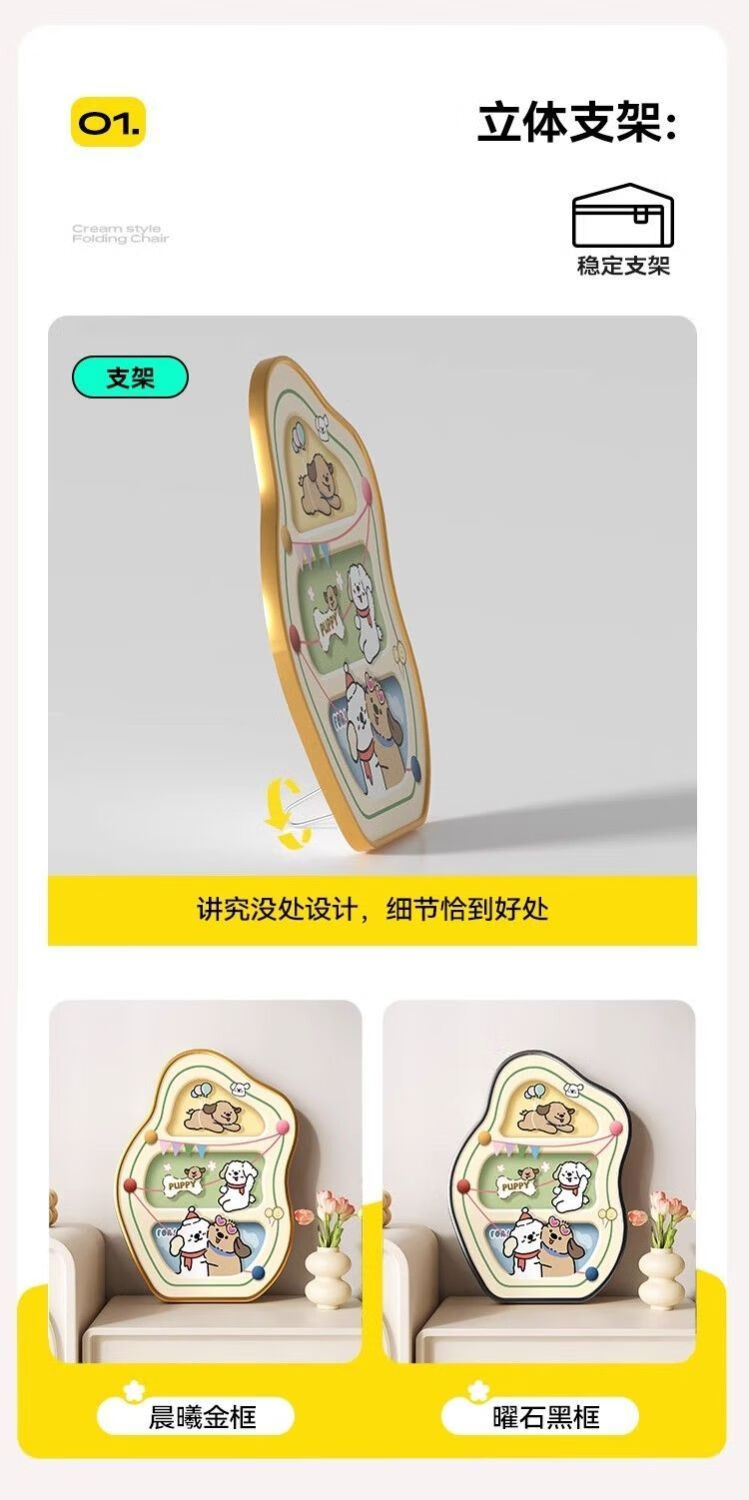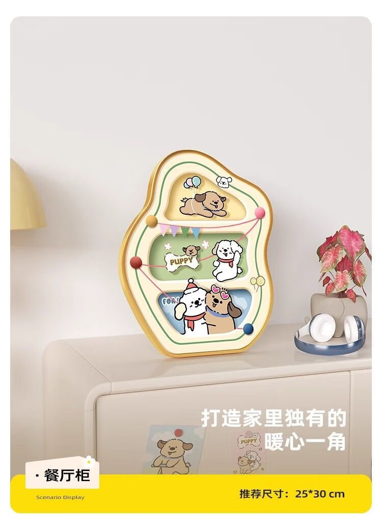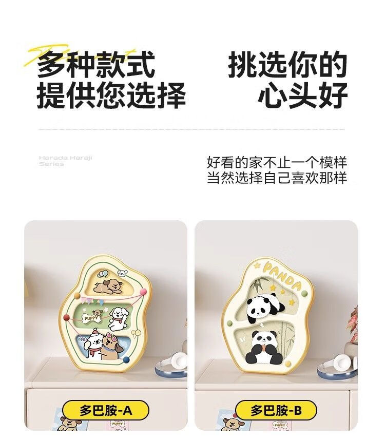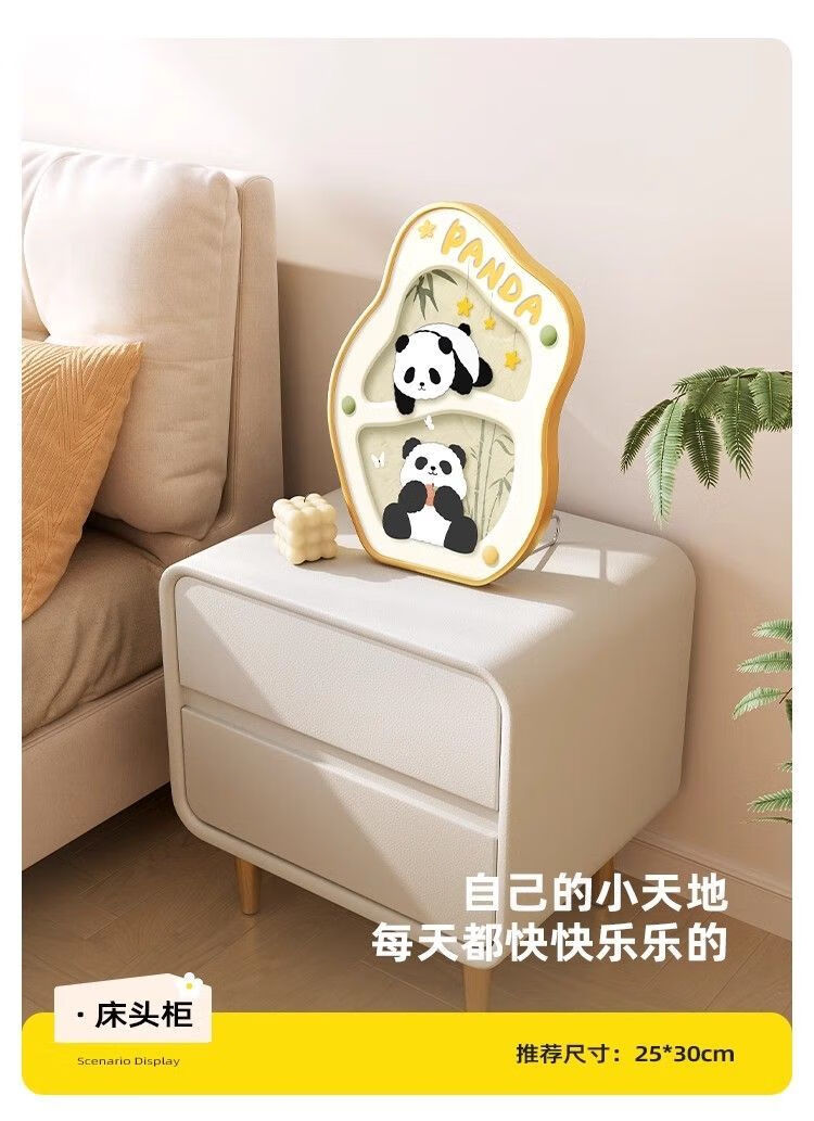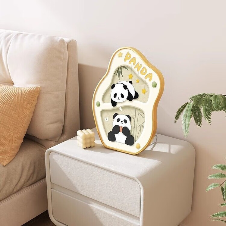 OYKTN熊猫小狗餐桌装饰画卡通桌面摆画电视柜摆件艺术卧室床头生日礼物 萌趣熊猫-晶瓷(15*19-金框)