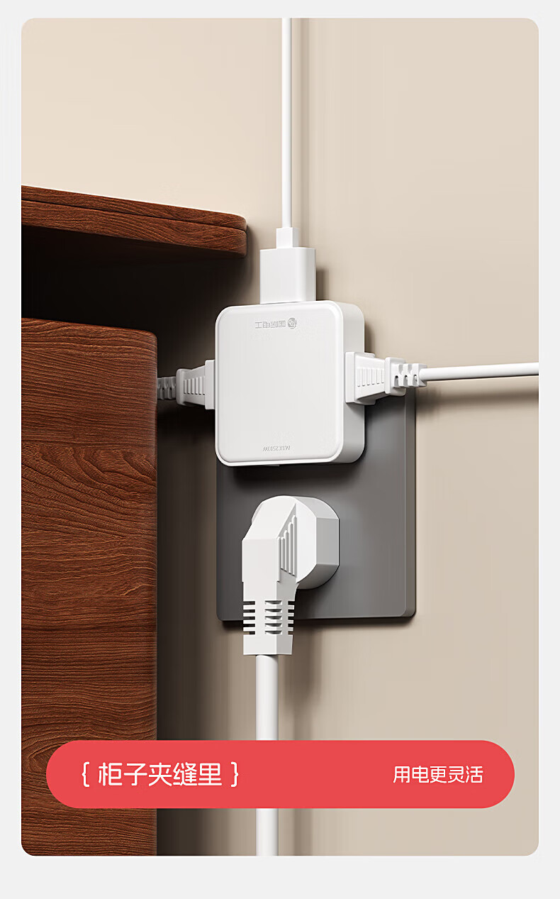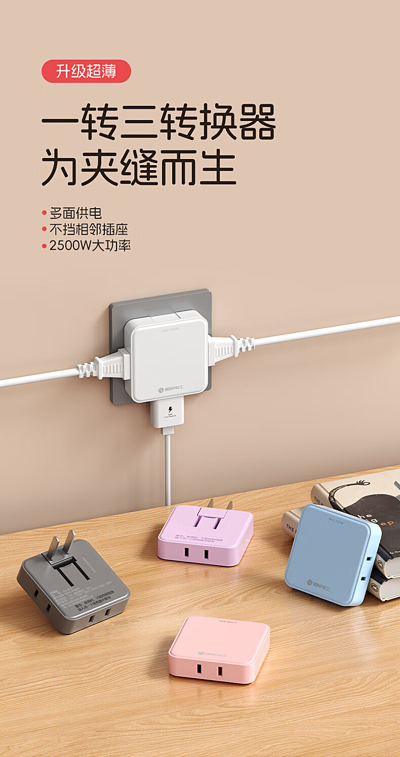 国际电工插座转换器一转三多功能超薄二脚二孔多插位插头扩展器插线板 一转三【白色】