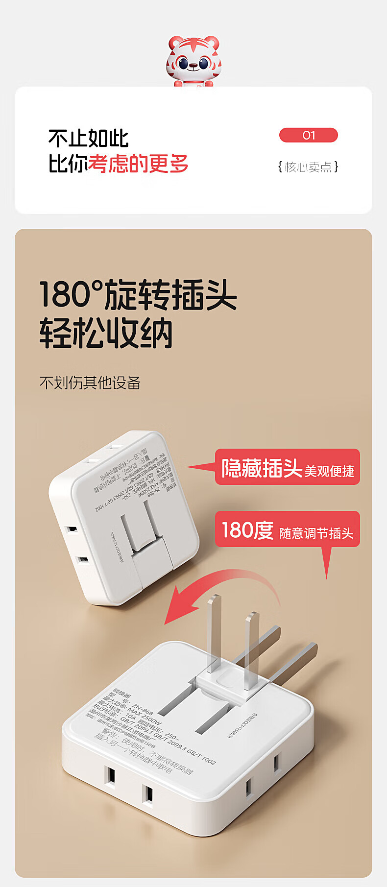 公正牛转电器插头转换器插座usb独立开关一转多孔家用插排板 升级边插一转五 带USB灯10A2500