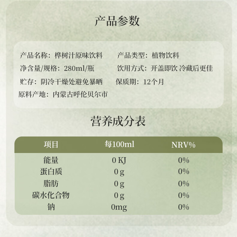 北方神桦白桦树汁原味饮料野生植物饮料 280ml桦树汁饮料健康植物饮品 原味饮料280ml/15瓶【推荐】