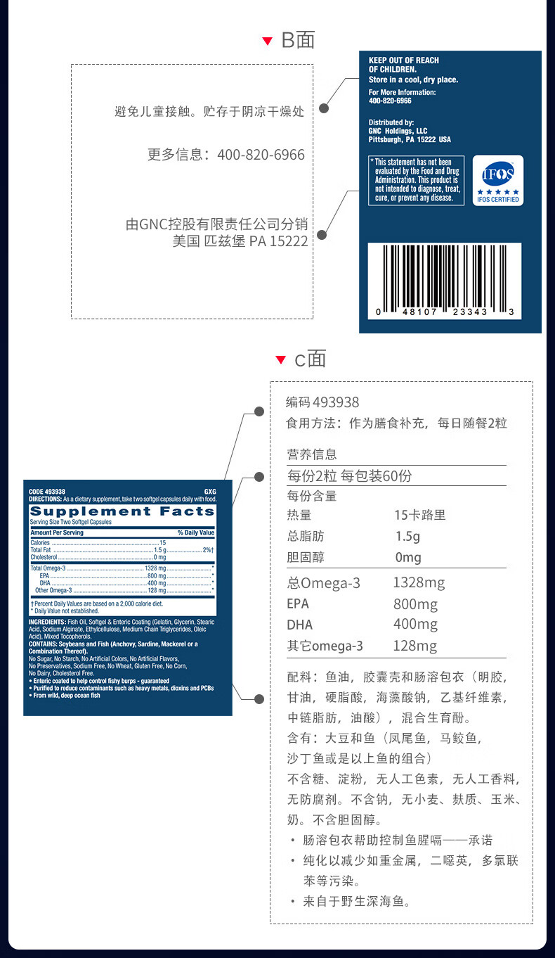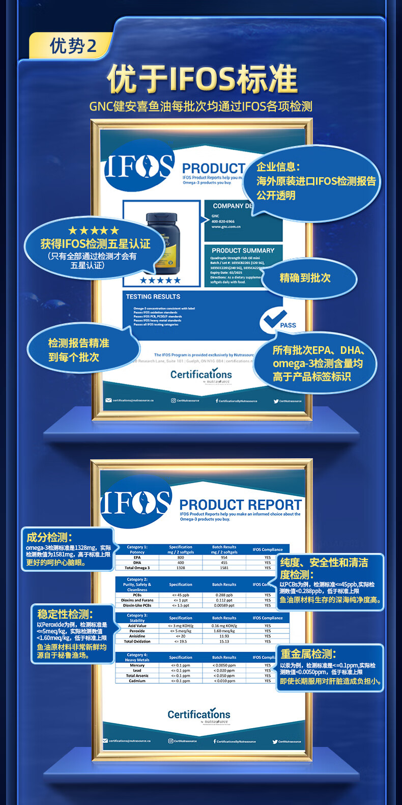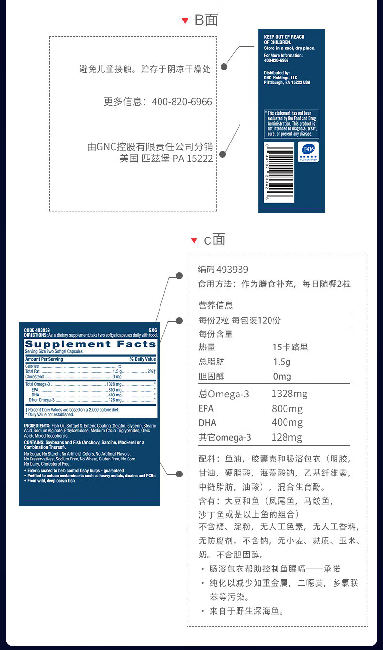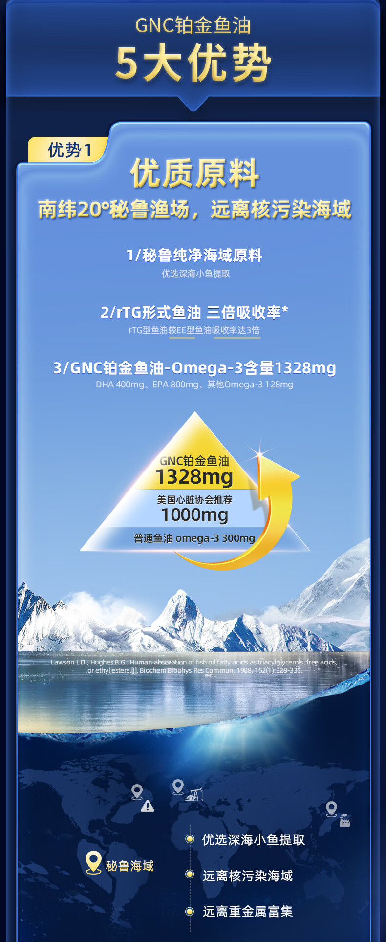 GNC健安喜四倍铂金鱼油深海高纯度鱼油软胶囊 无腥成人rTG型omega-3 【铂金四倍鱼油】 120粒*1瓶