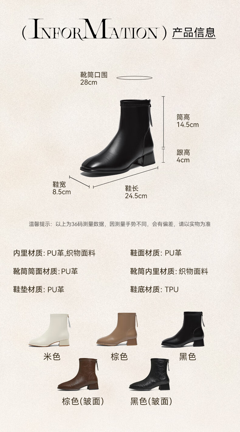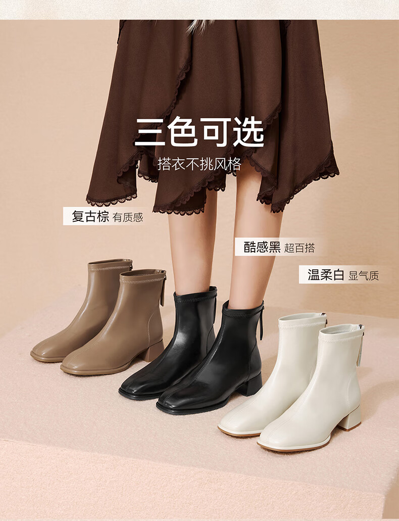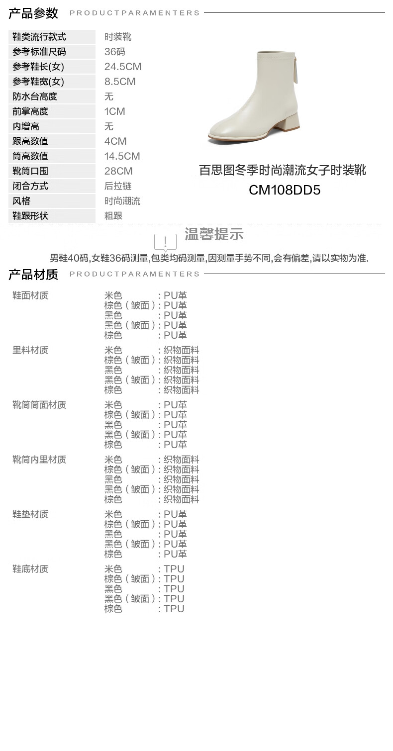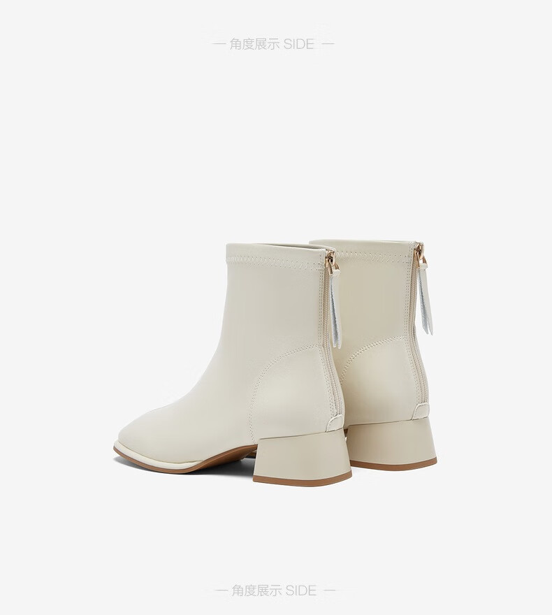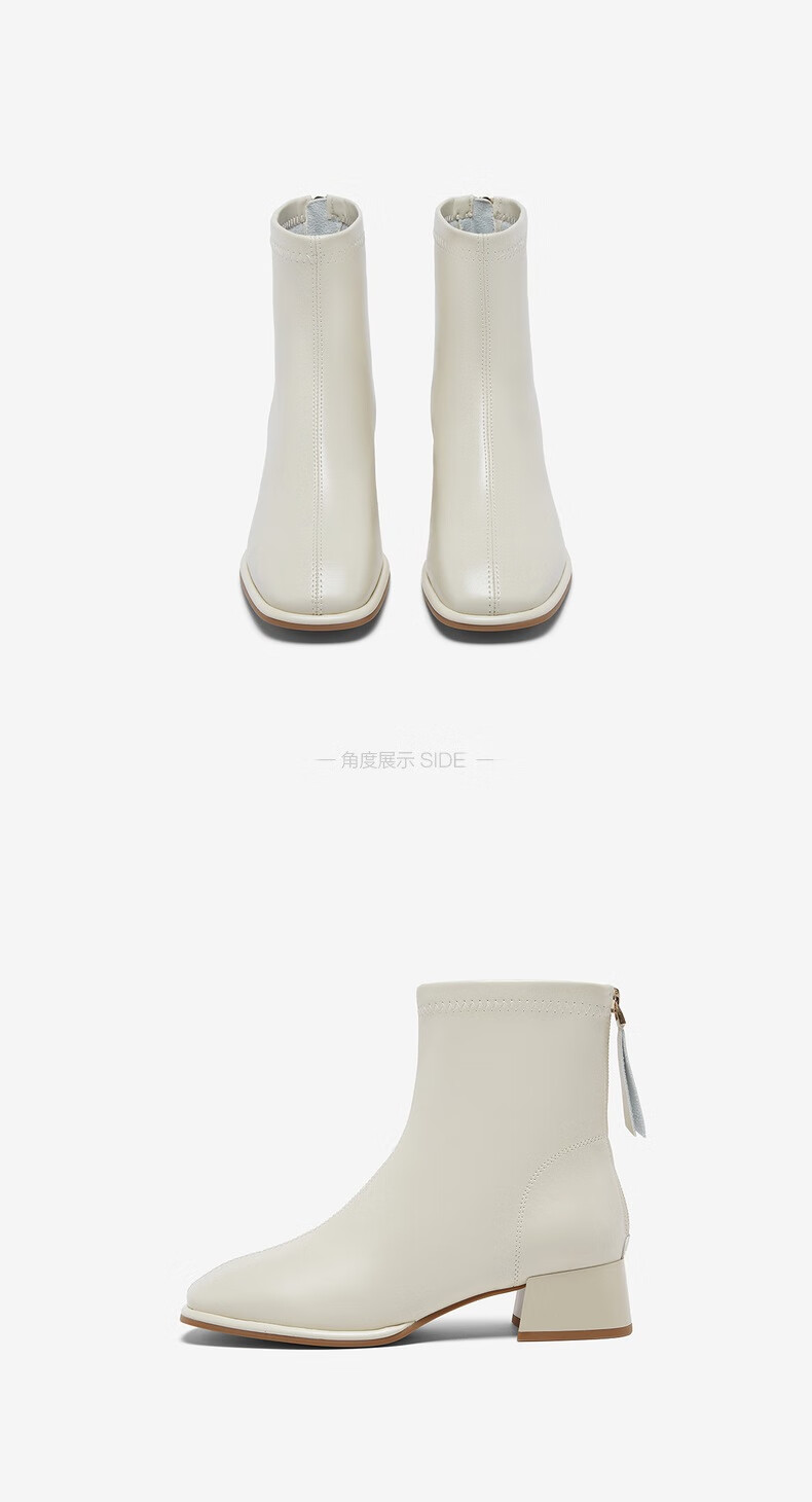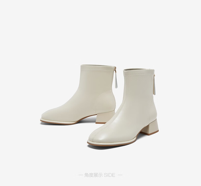 百思图25冬气质通勤白色法式小踝靴粗跟女短靴CM108DD5 米色 37