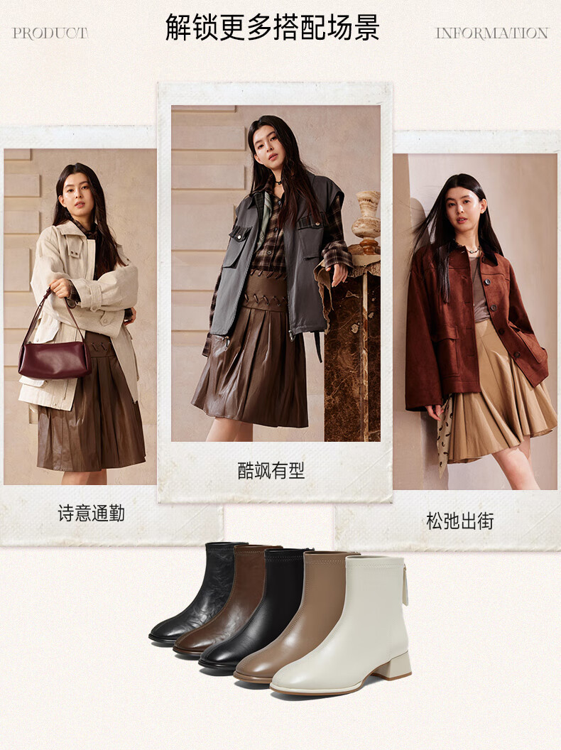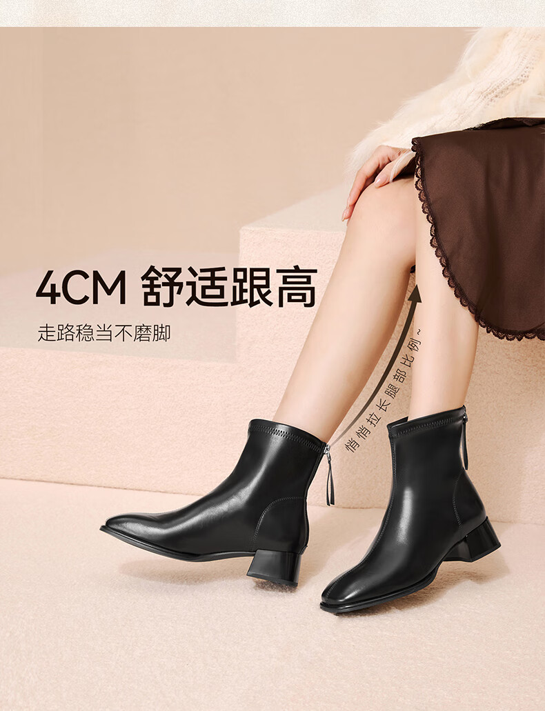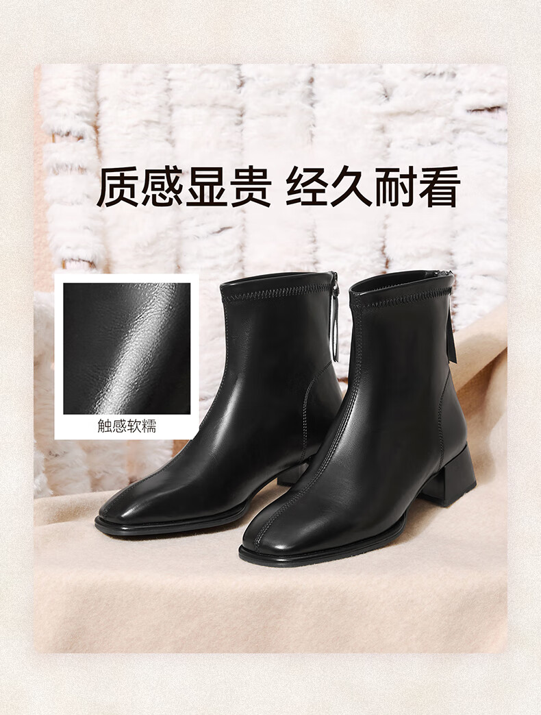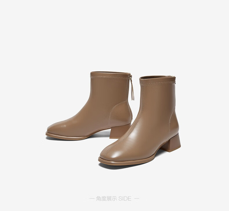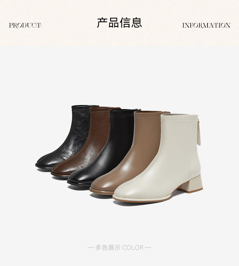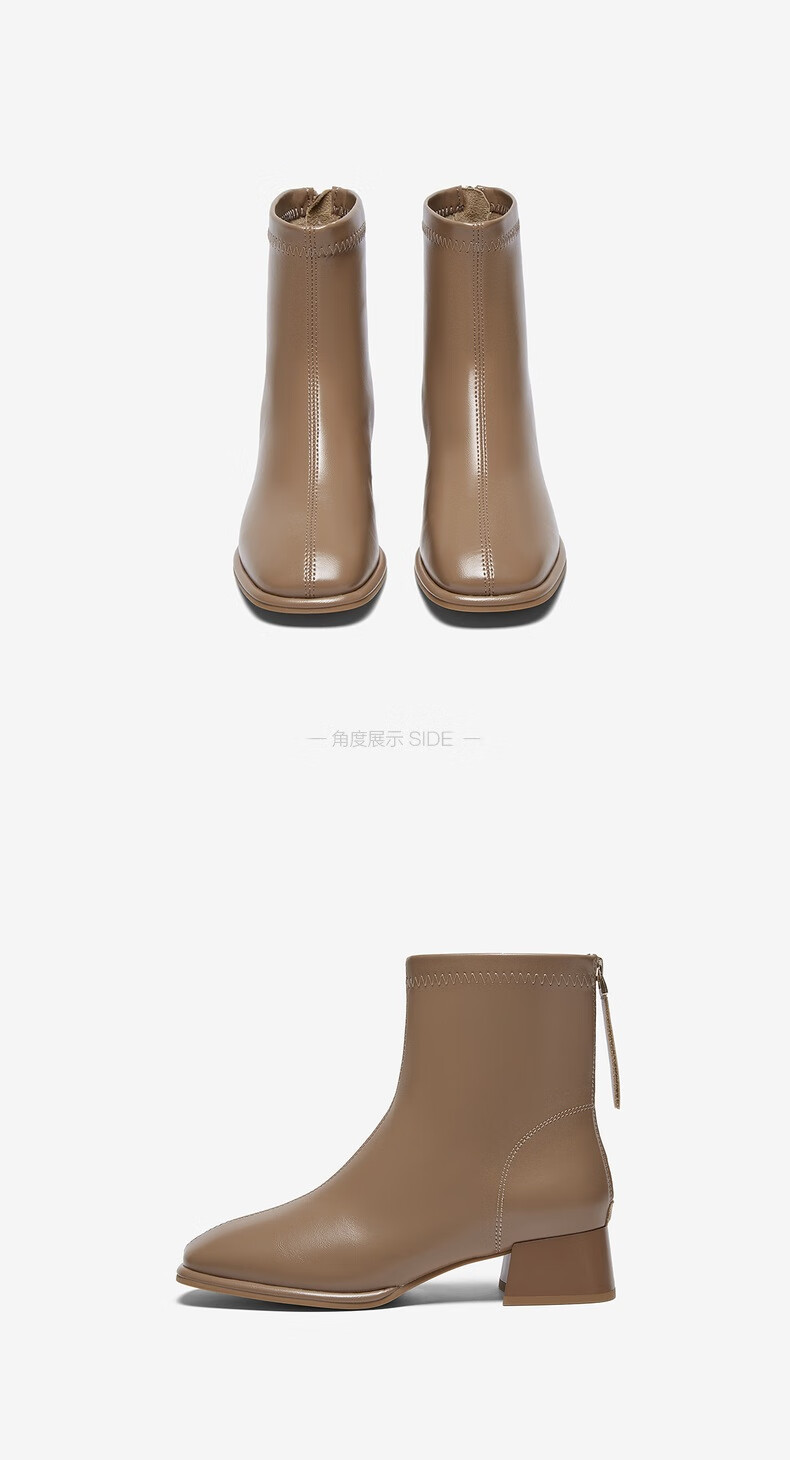 百思图25冬气质通勤白色法式小踝靴粗跟女短靴CM108DD5 米色 37