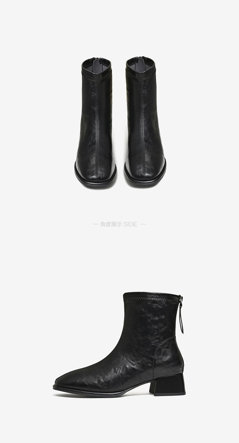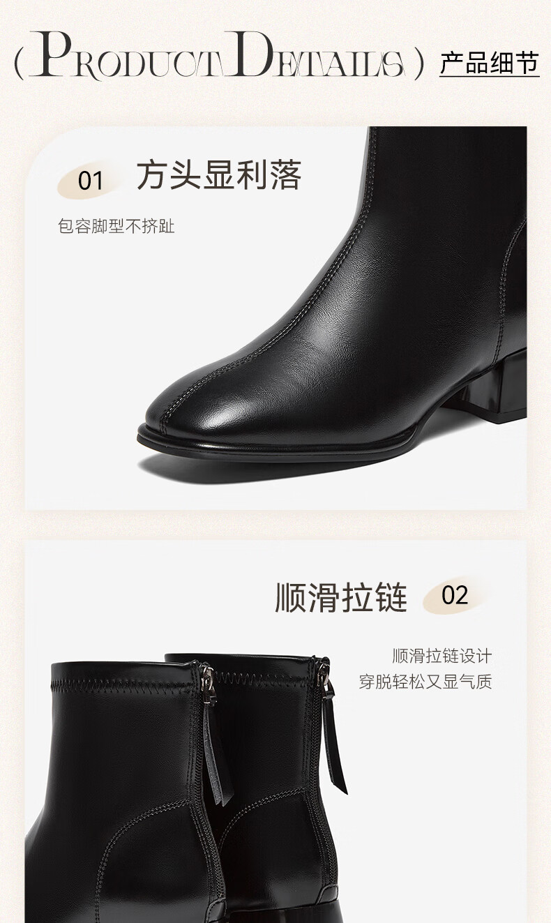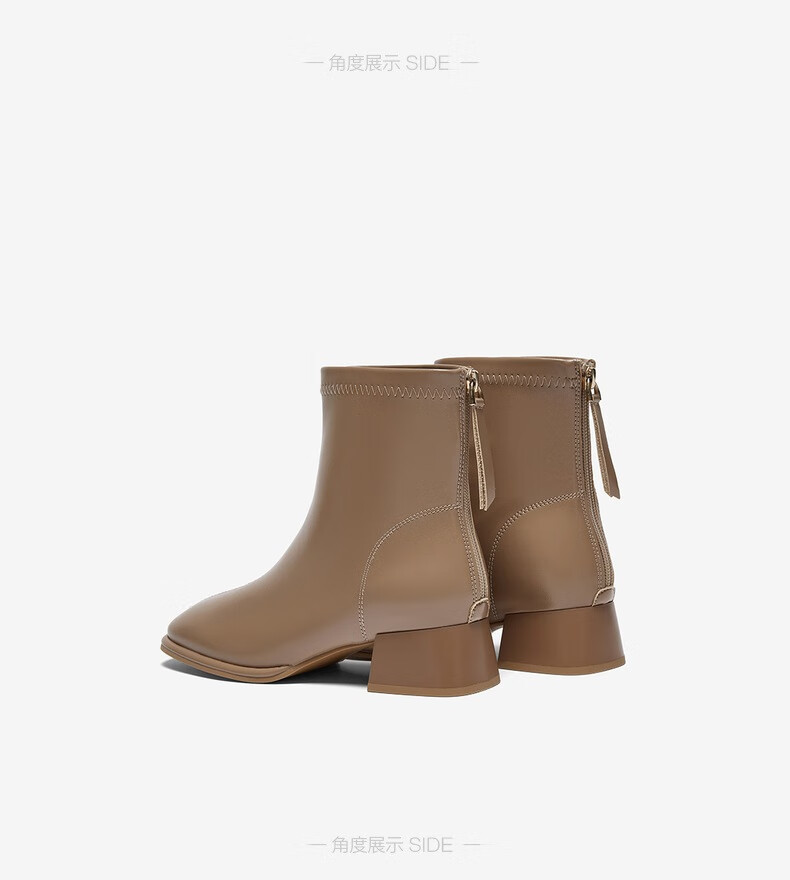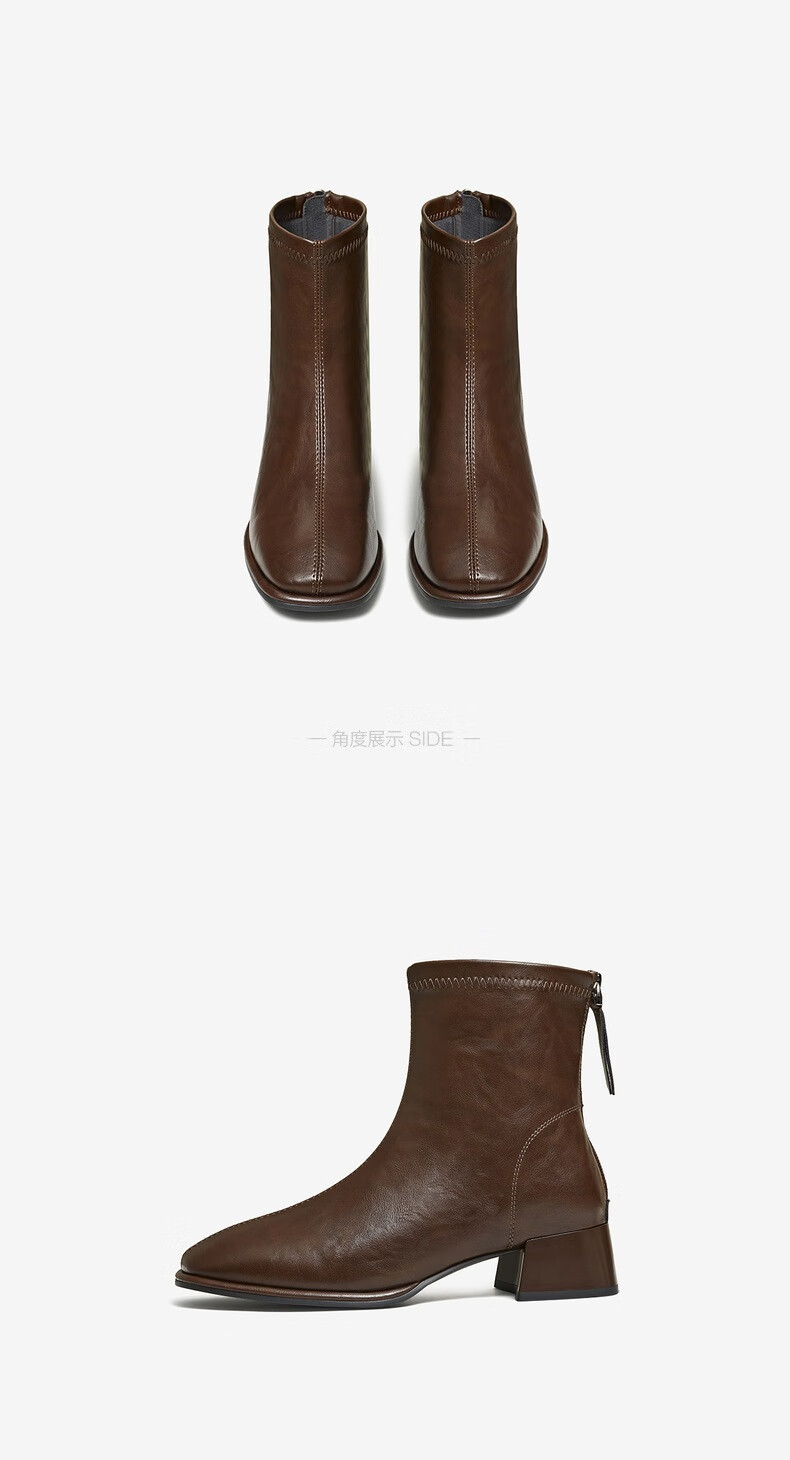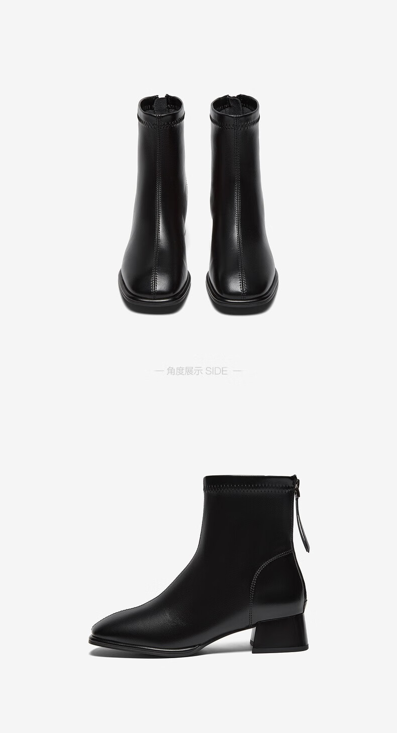 百思图25冬气质通勤白色法式小踝靴粗跟女短靴CM108DD5 米色 37