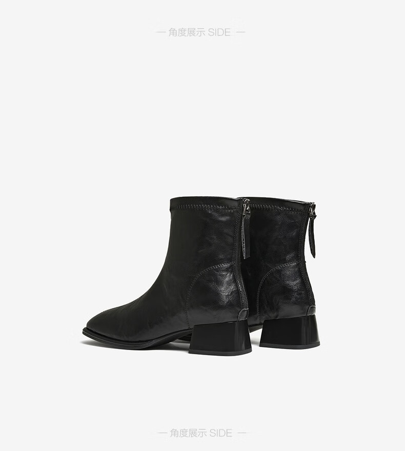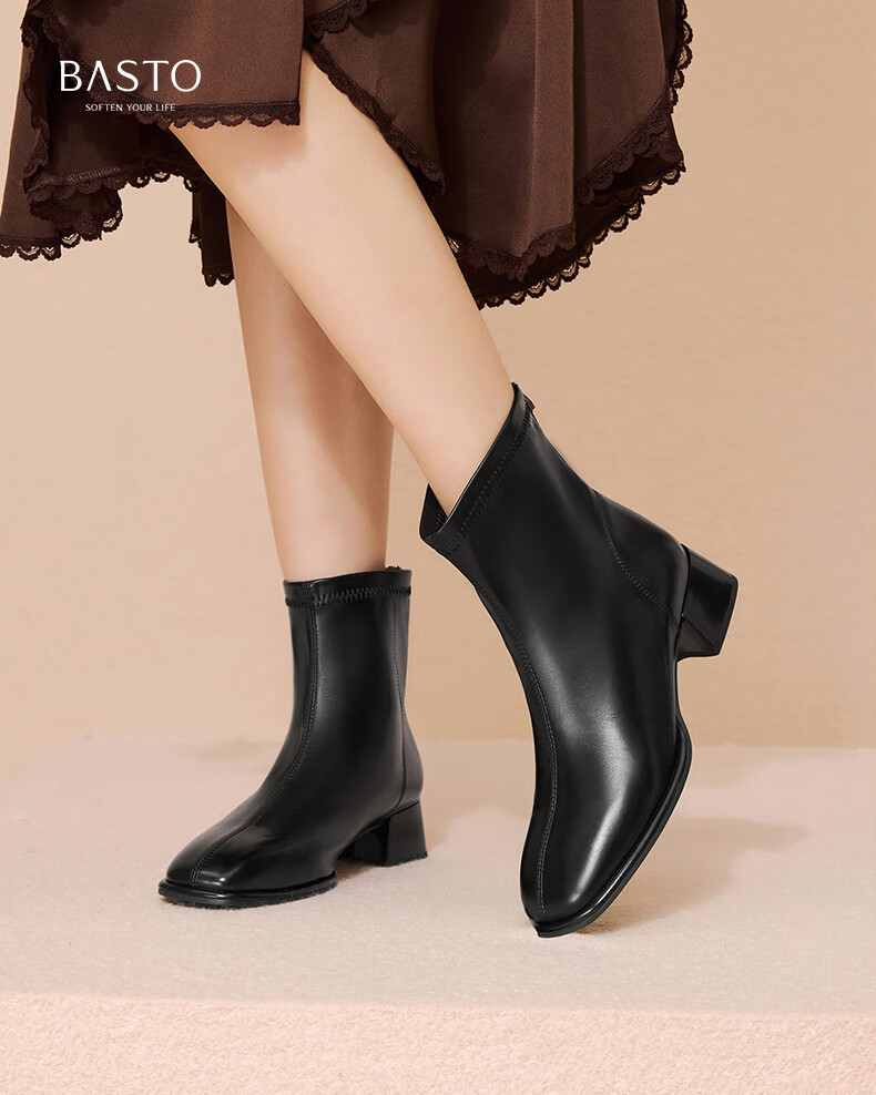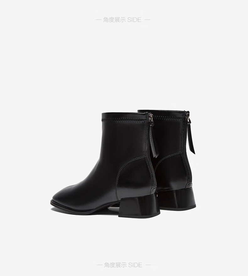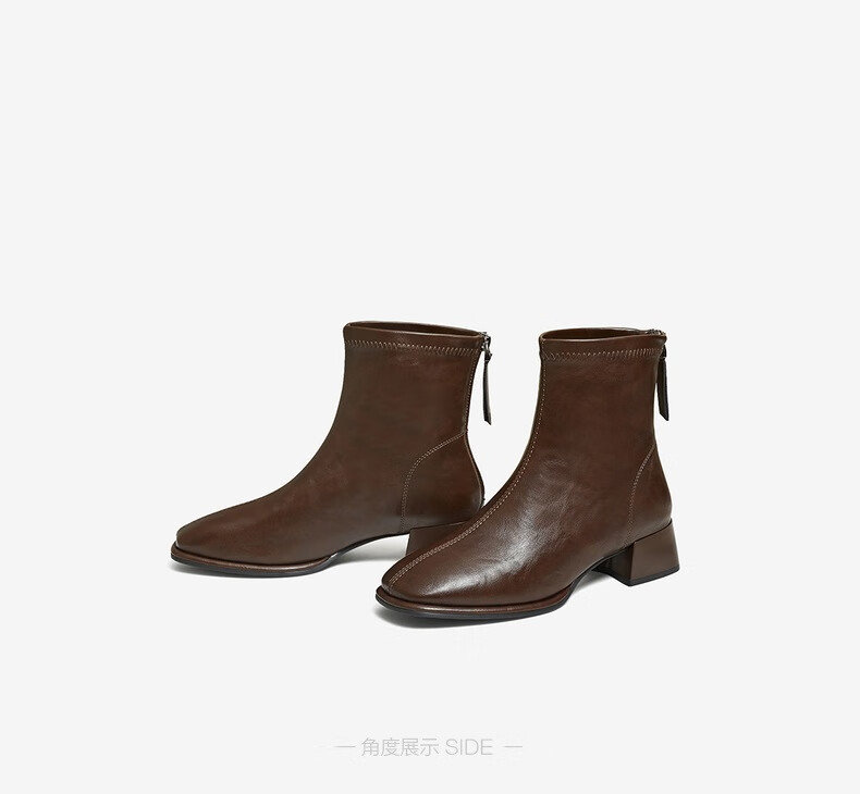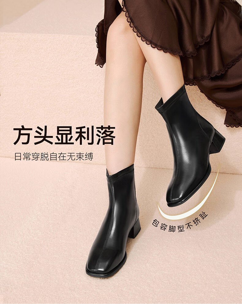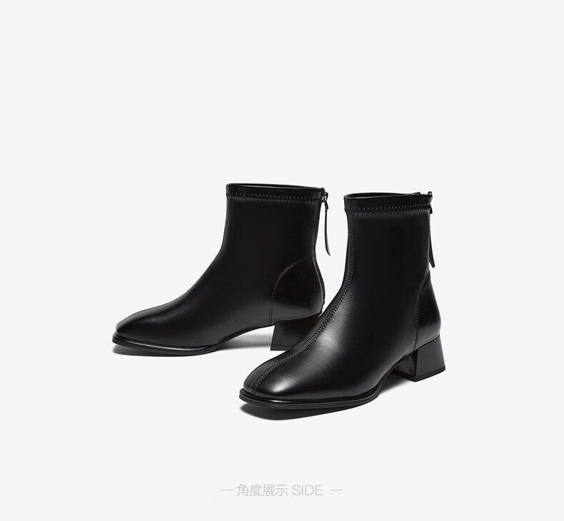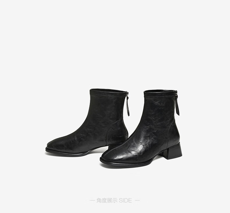 百思图25冬气质通勤白色法式小踝靴粗跟女短靴CM108DD5 米色 37