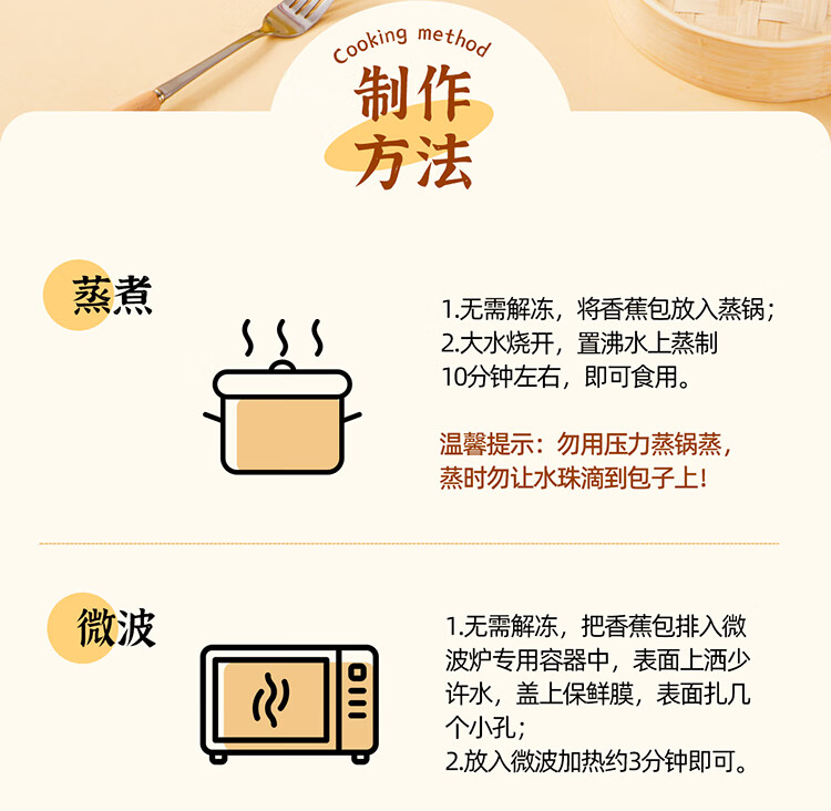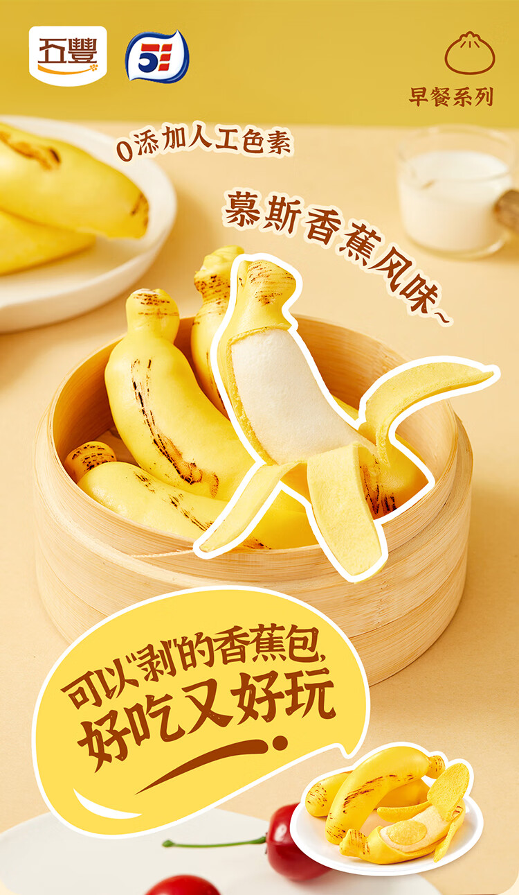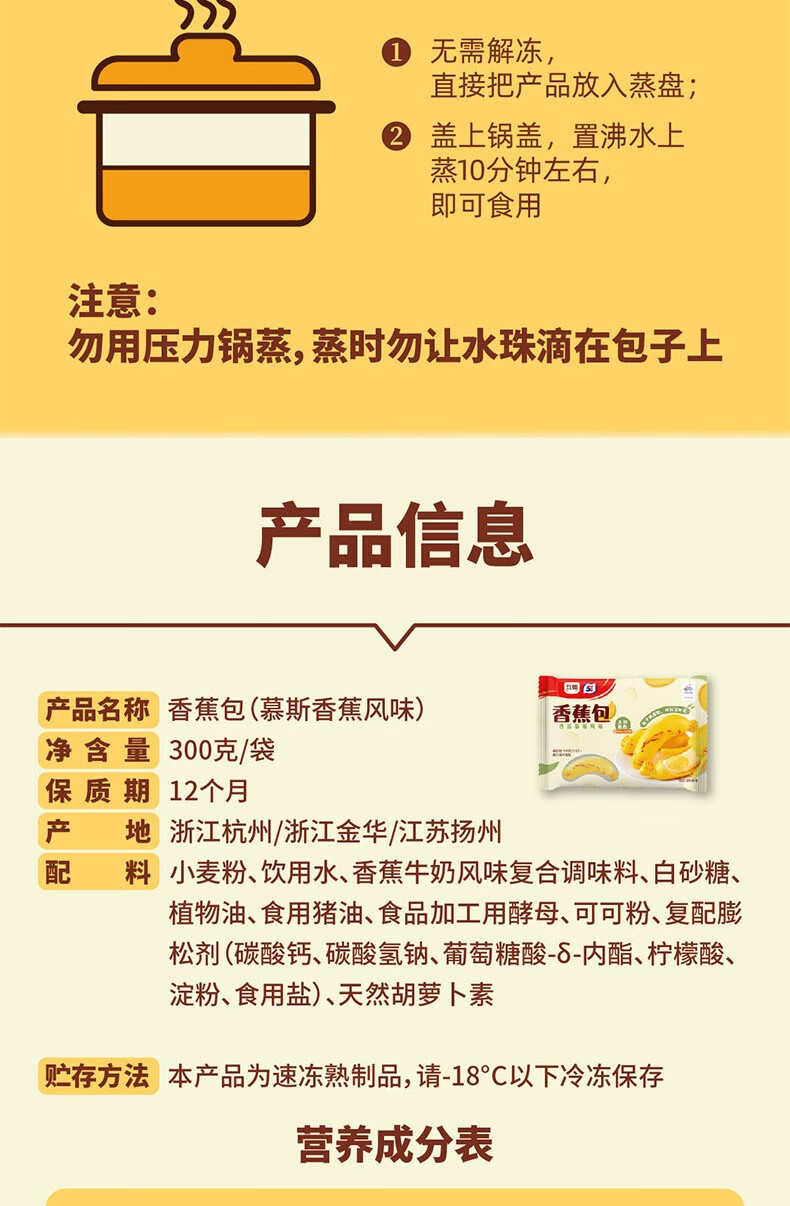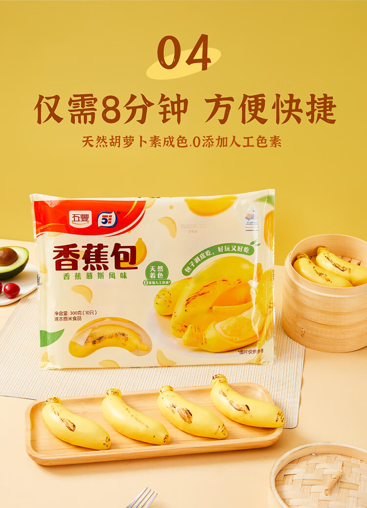 五丰 慕斯香蕉包300g*2 共20只甜包子馒头点心儿童速食早餐面点半成品