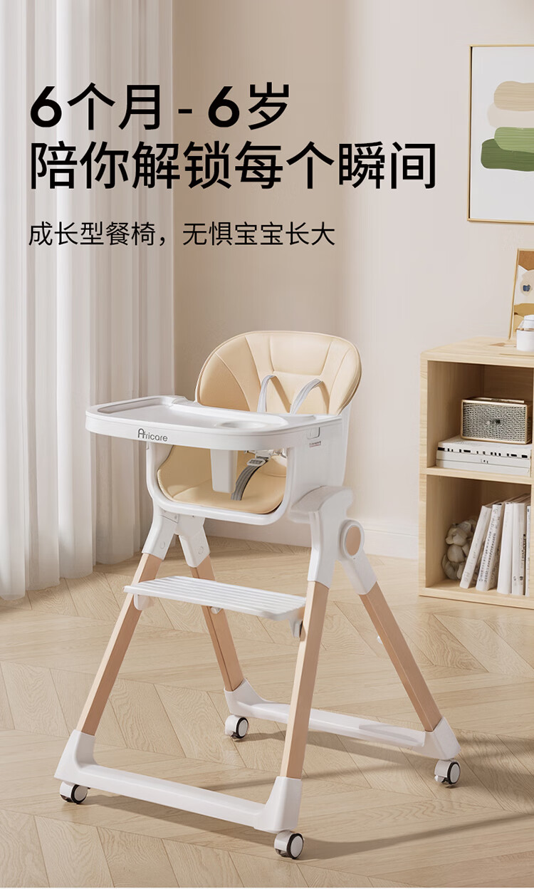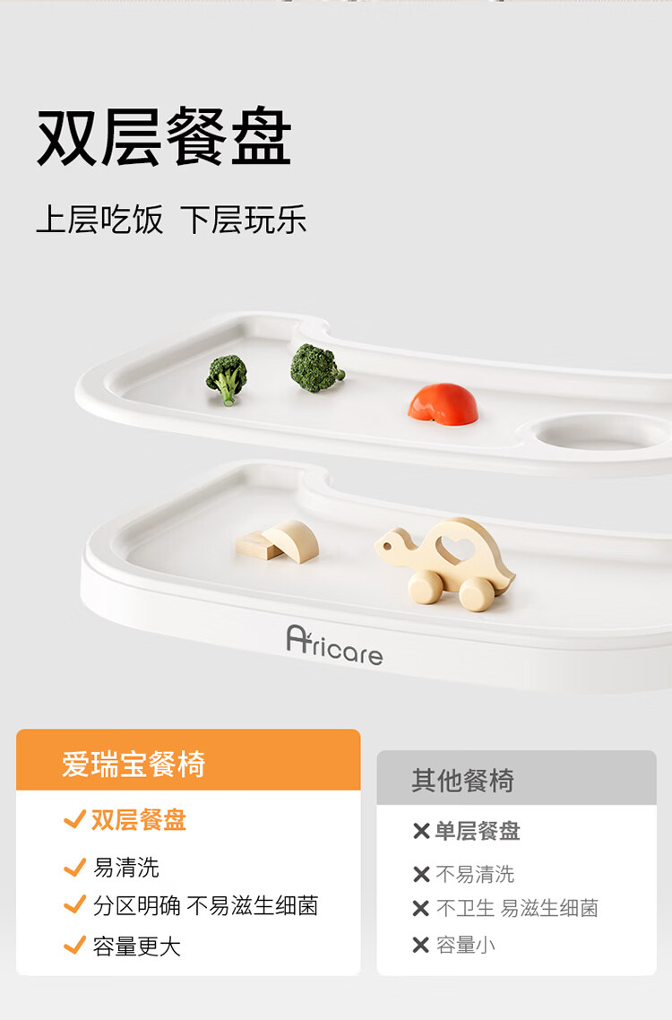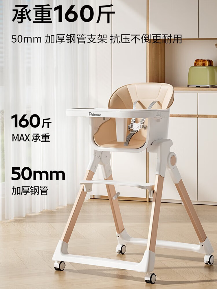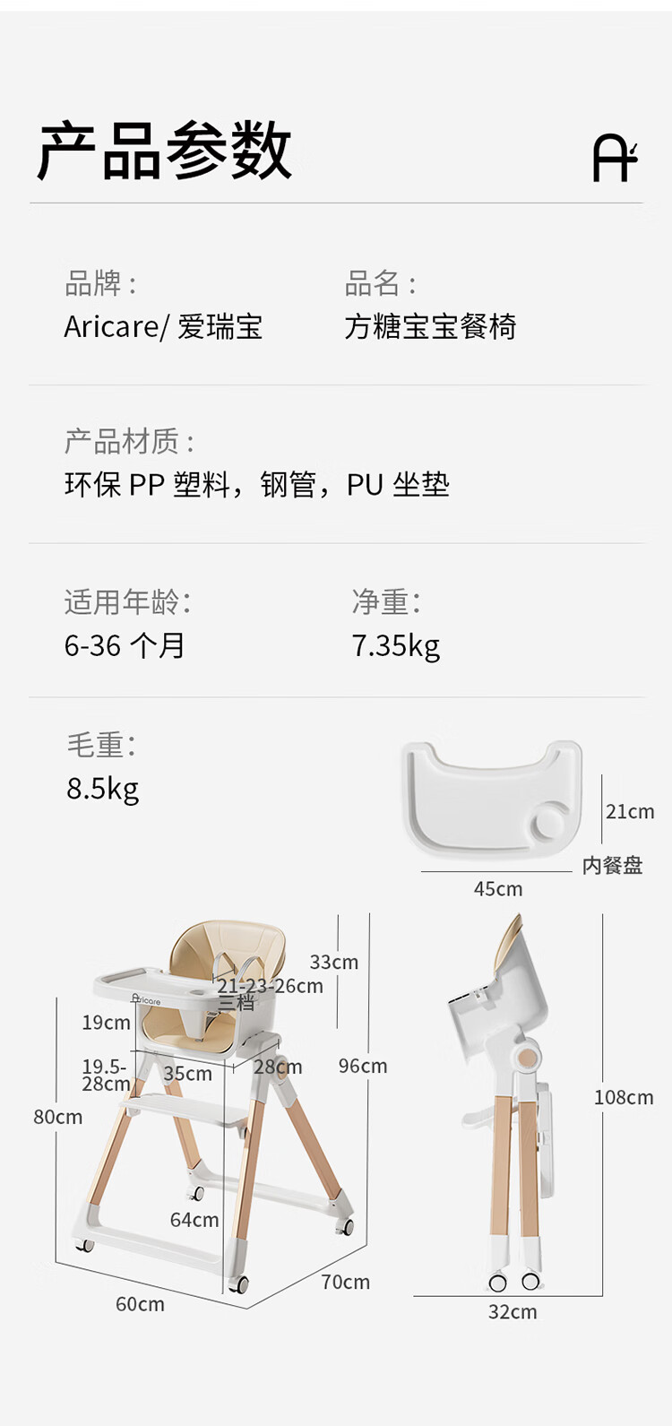 爱瑞宝(ARICARE)宝宝餐椅可折叠0-6岁婴儿餐椅家用儿童餐桌婴儿吃饭安全成长座椅 白金款全配 62*42*33cm