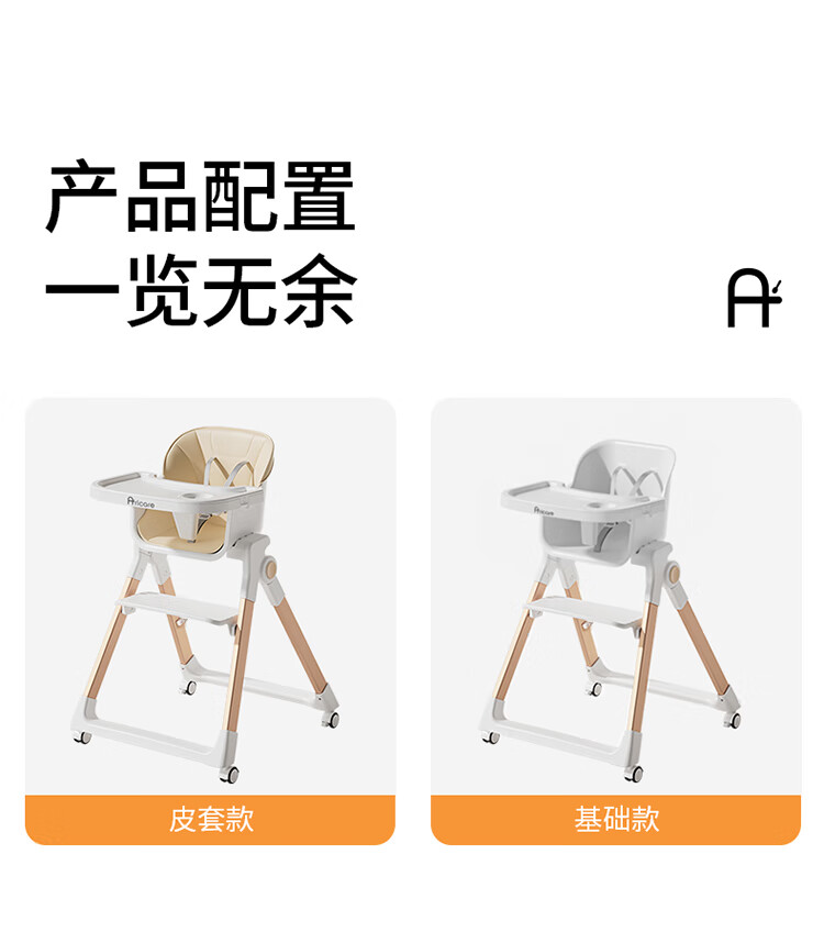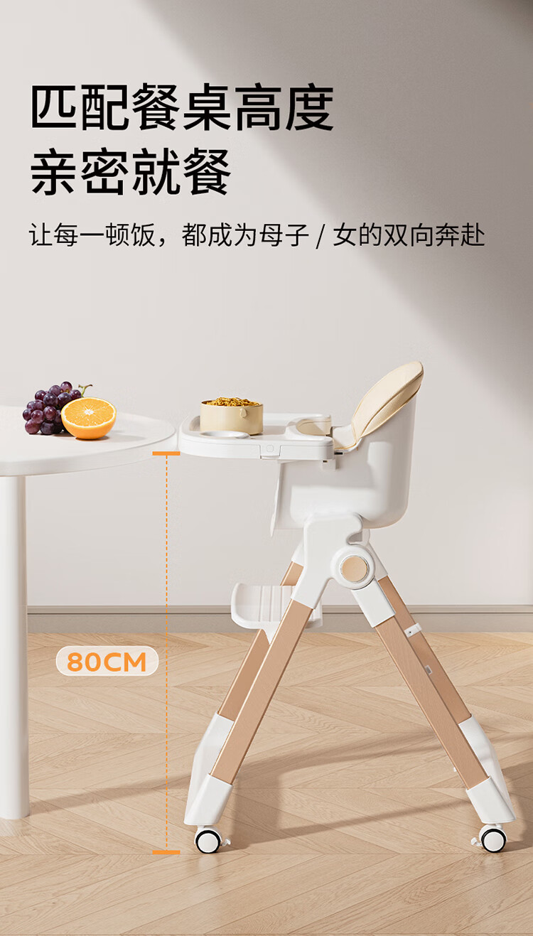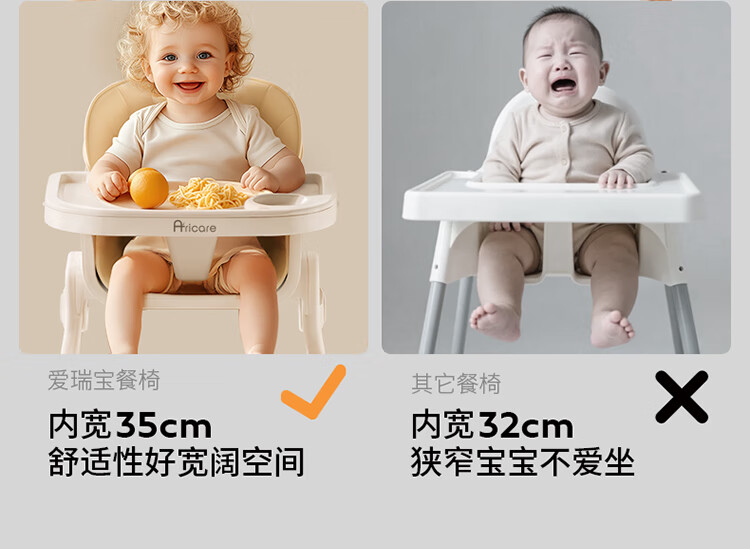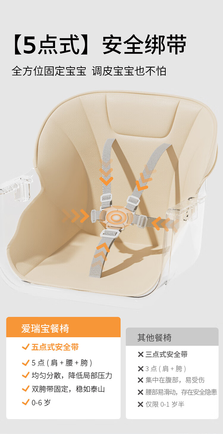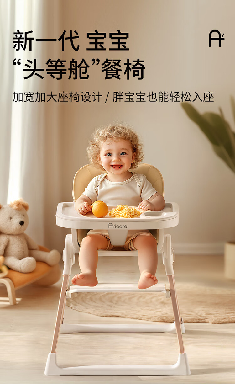 爱瑞宝(ARICARE)宝宝餐椅可折叠0-6岁婴儿餐椅家用儿童餐桌婴儿吃饭安全成长座椅 白金款全配 62*42*33cm