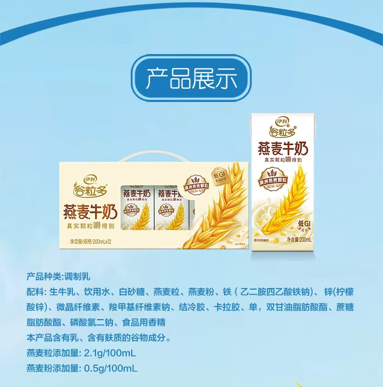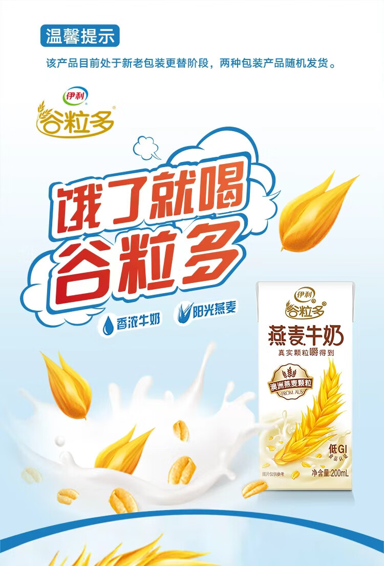 伊利谷粒多燕麦牛奶200mL*12盒/箱 真实颗粒 礼盒装