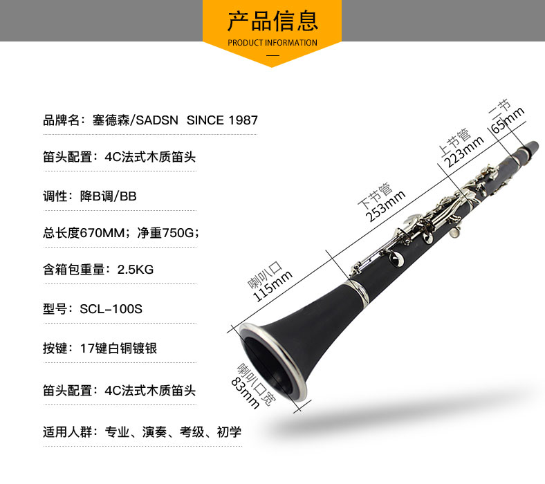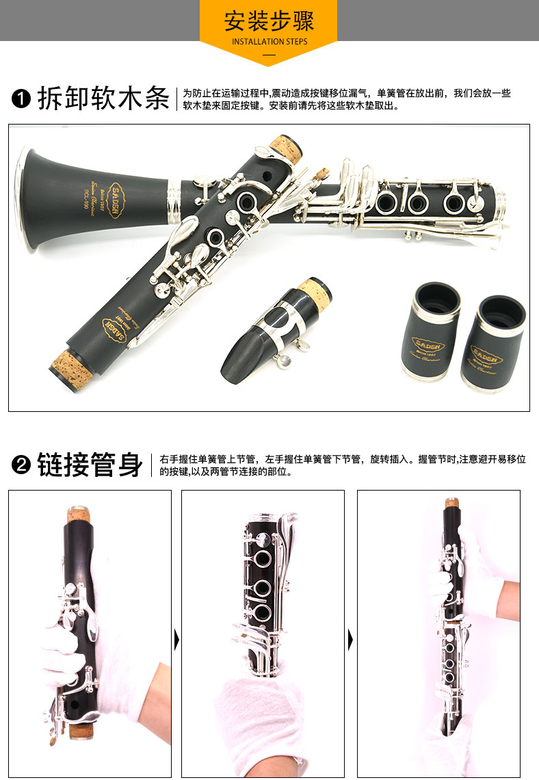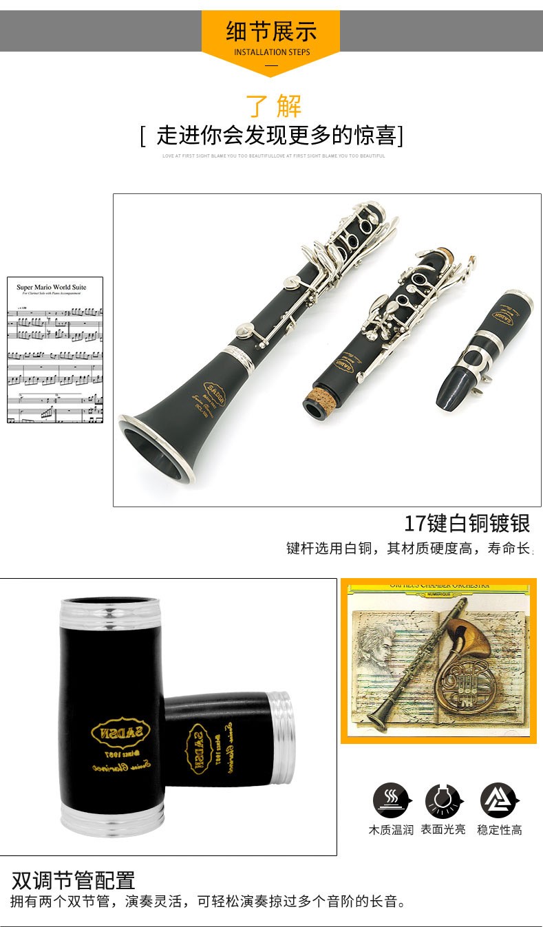 塞德森(SAIDESEN) 17键双二节 胶木单簧管/黑管乐器初学考级专业演奏 单簧管SCL-100