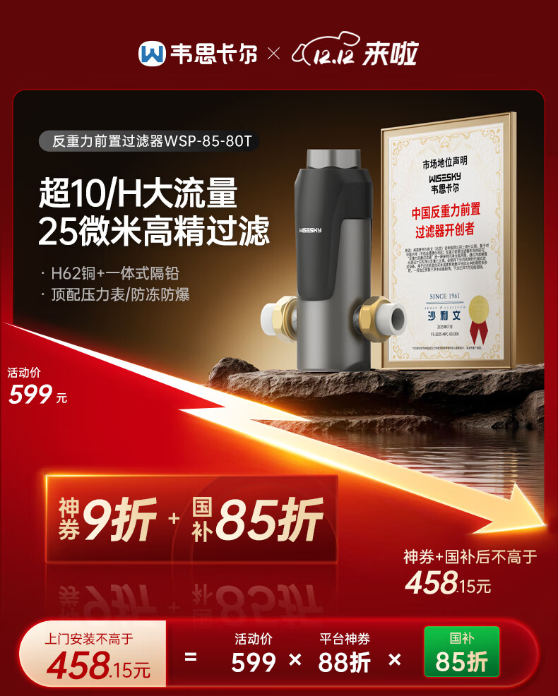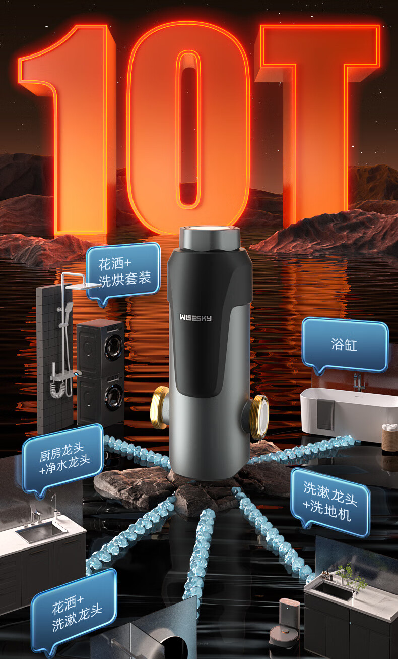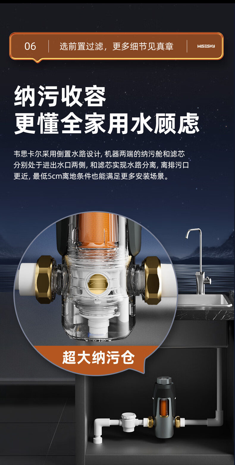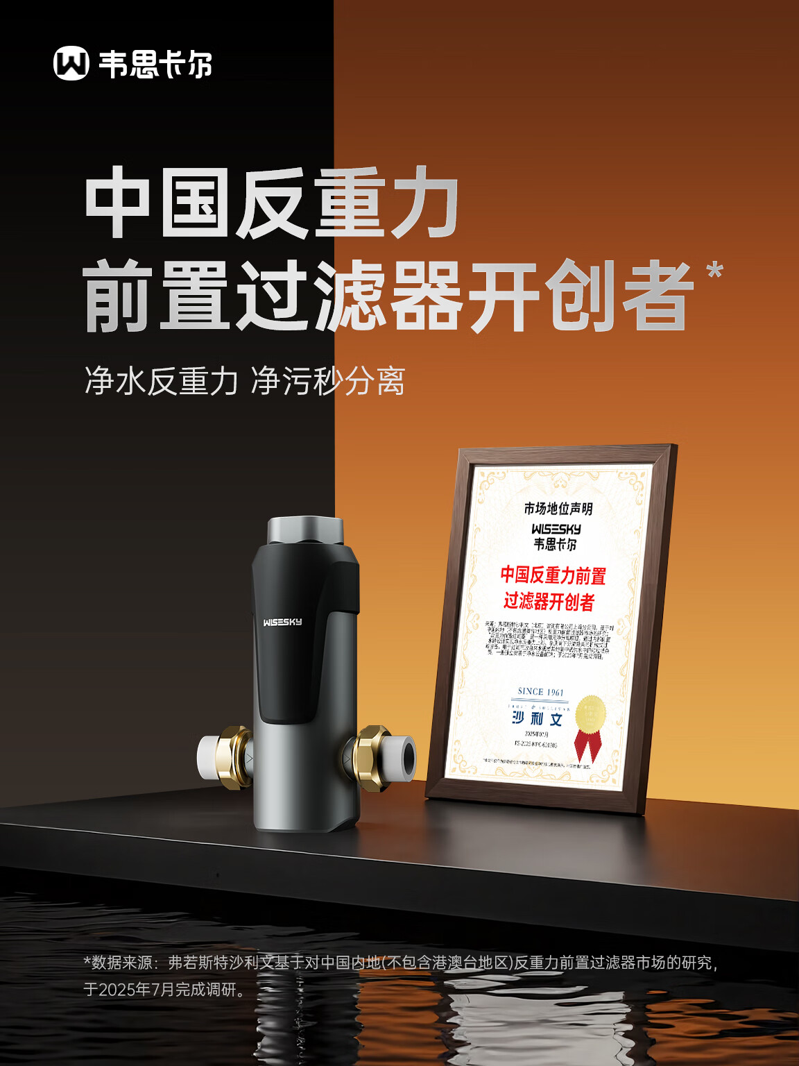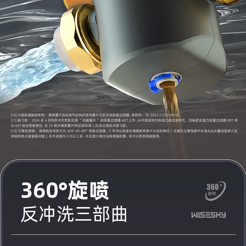 WISESKY韦思卡尔反重力前置过滤器10T/H大通量全屋家用前十名25微米反冲洗防爆防冻净水器 WSP-85-80T