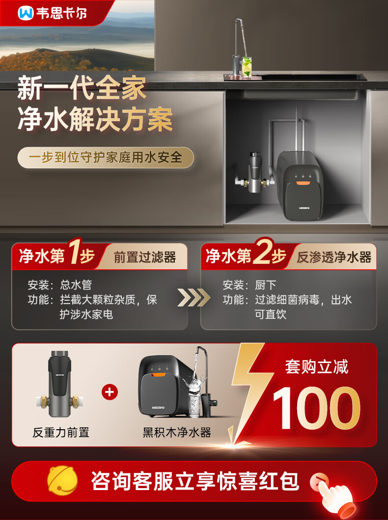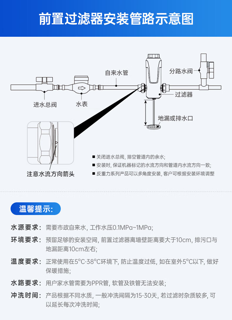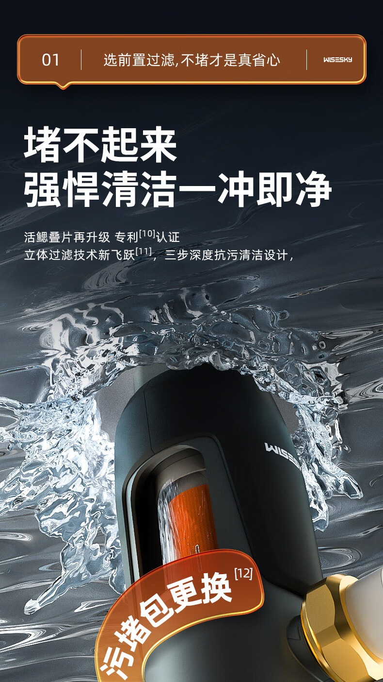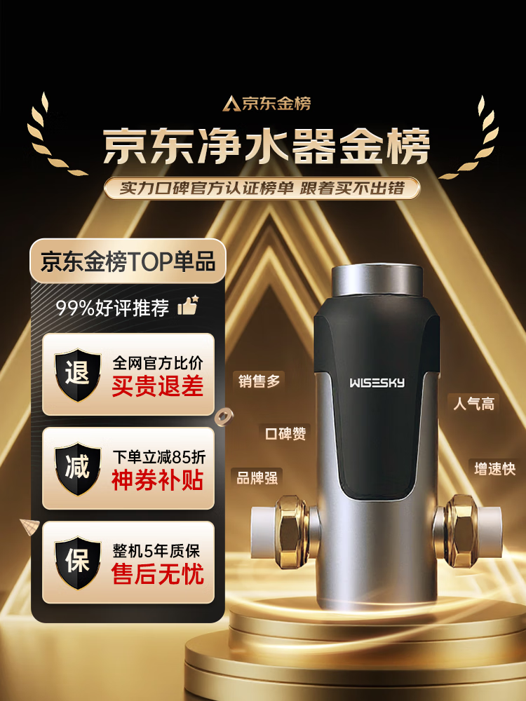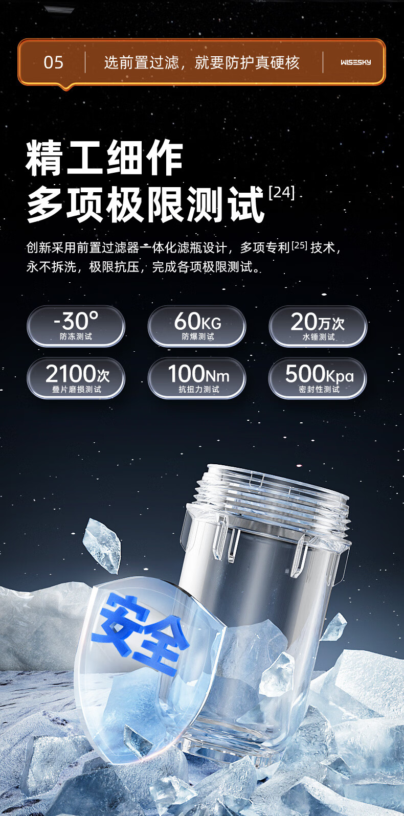 WISESKY韦思卡尔反重力前置过滤器10T/H大通量全屋家用前十名25微米反冲洗防爆防冻净水器 WSP-85-80T