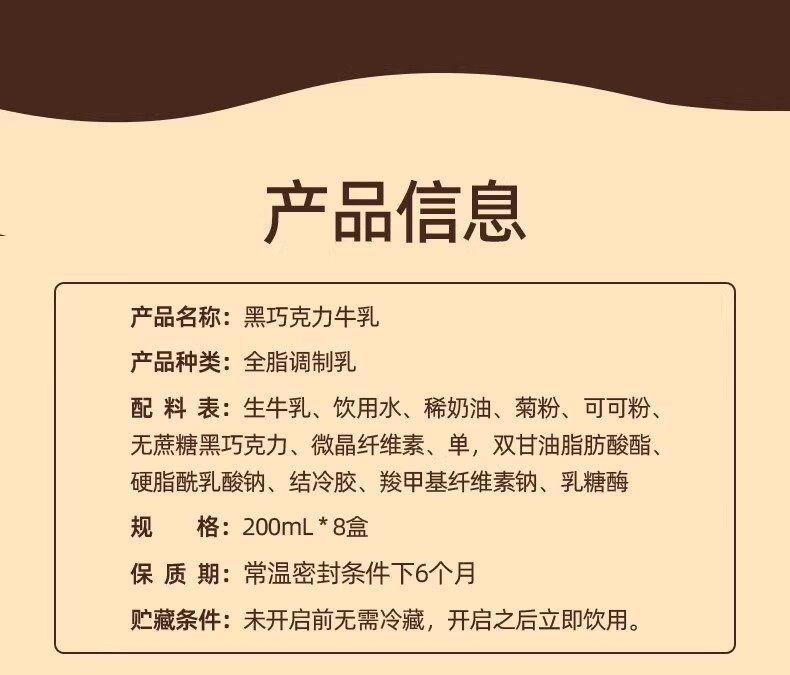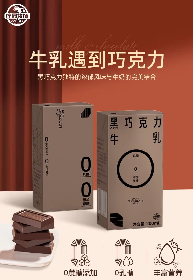 庄园牧场0乳糖0添加蔗糖200ml*8盒风味牛乳 巧克力口味