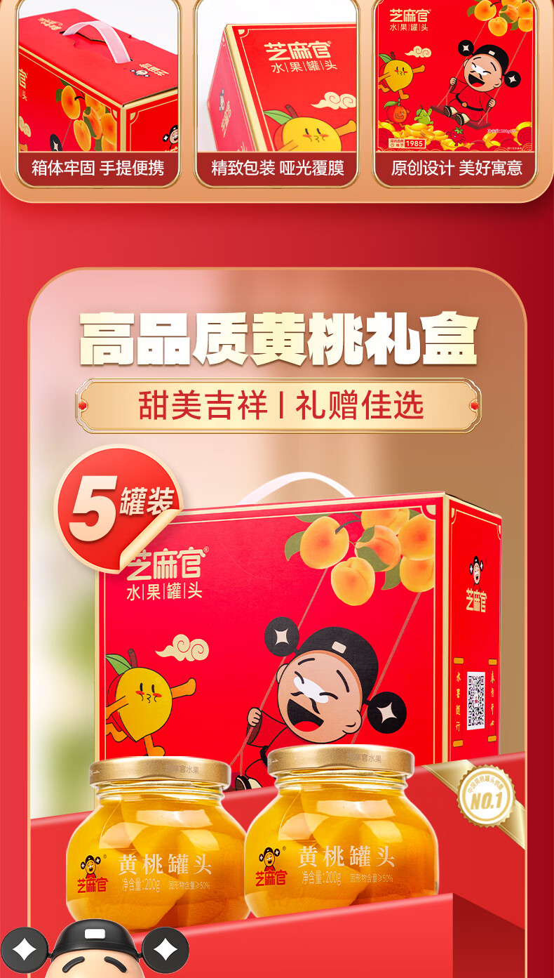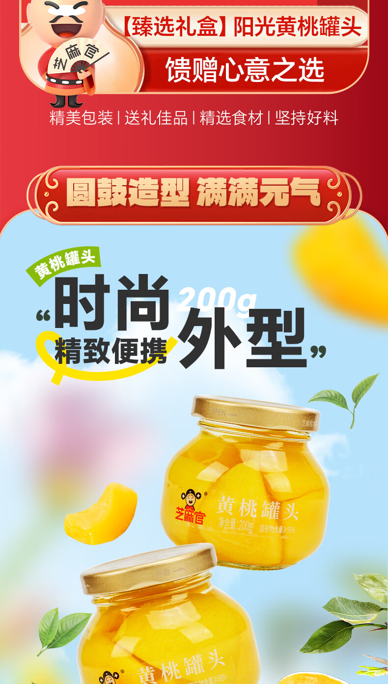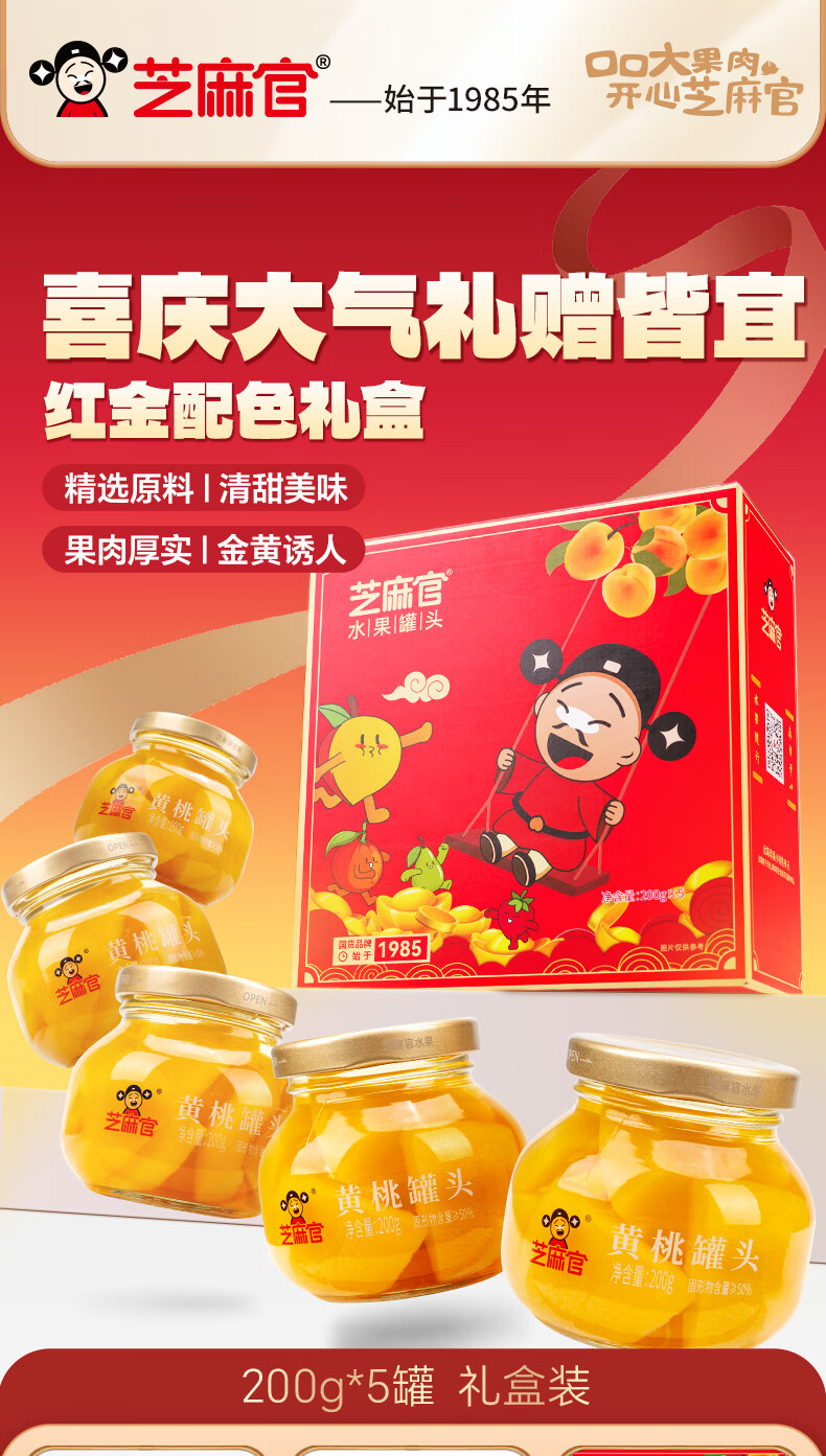 芝麻官送礼礼品礼盒 黄桃罐头礼盒整箱200g*5罐 水果捞休闲零食食品