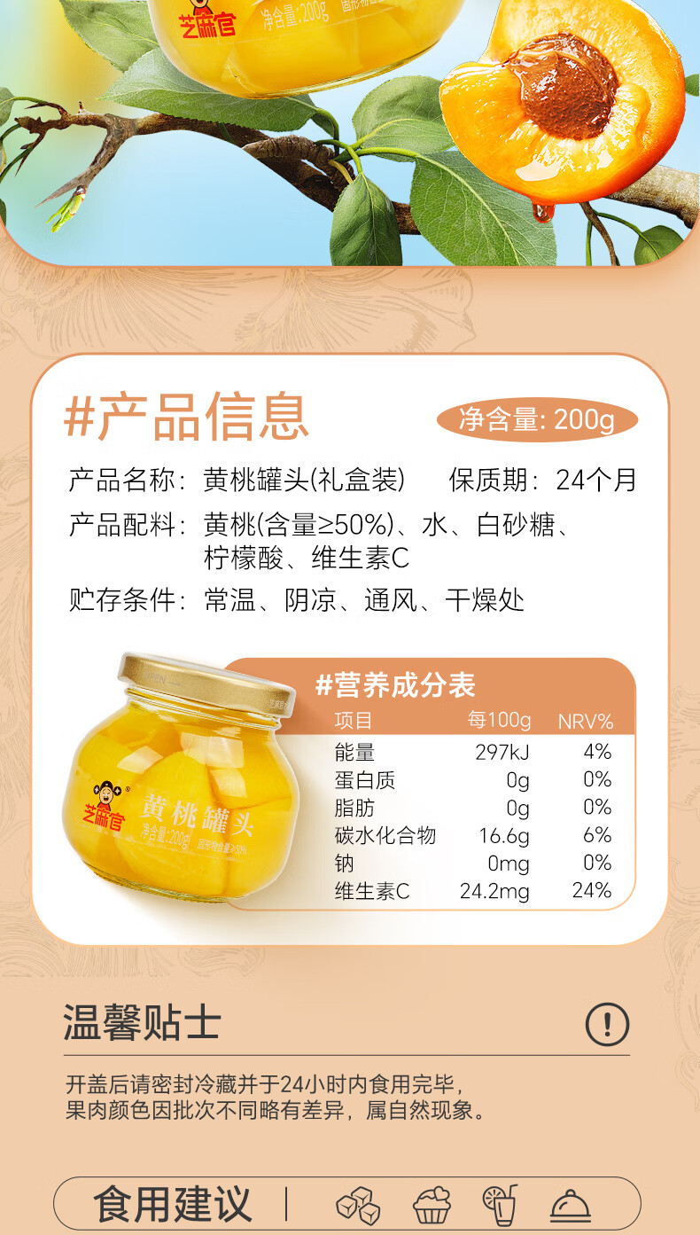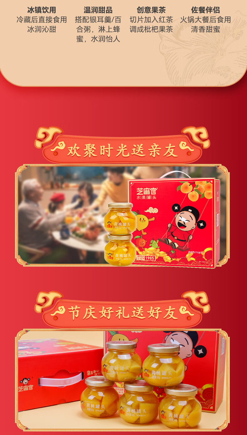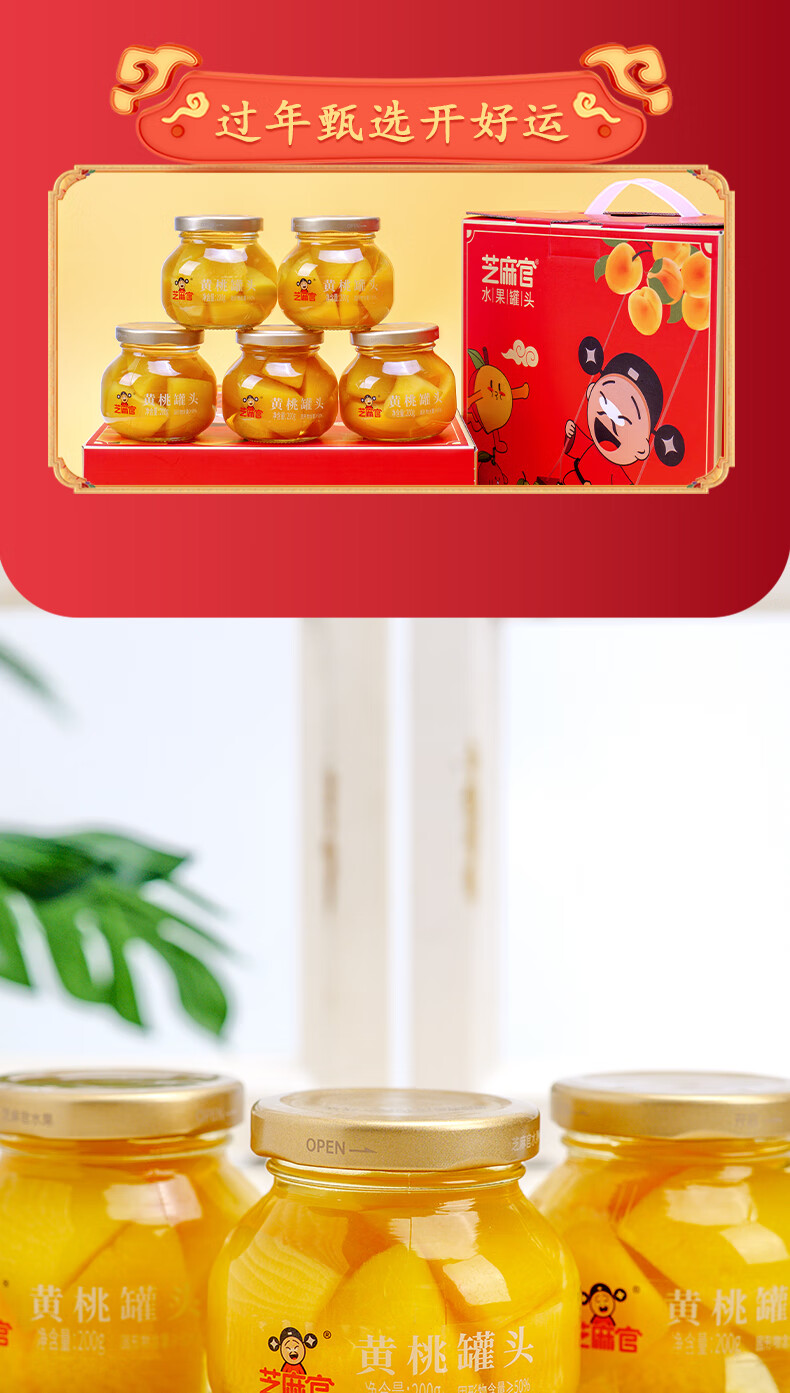 芝麻官送礼礼品礼盒 黄桃罐头礼盒整箱200g*5罐 水果捞休闲零食食品