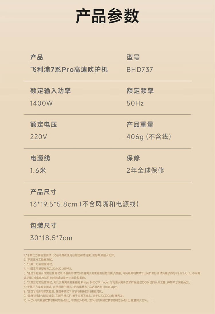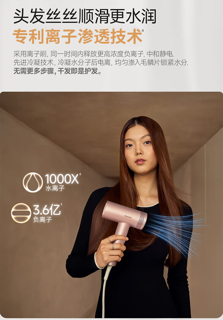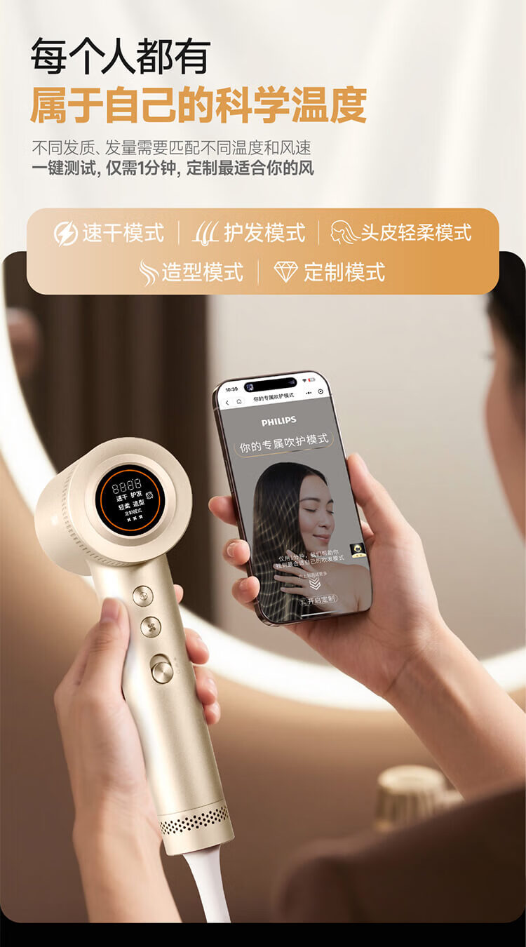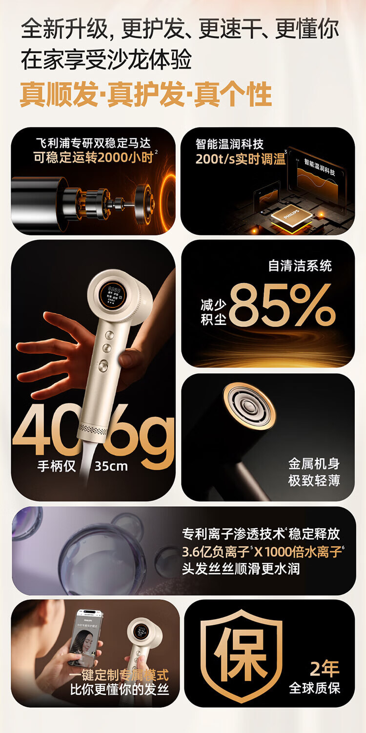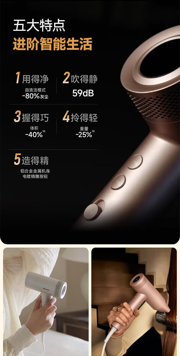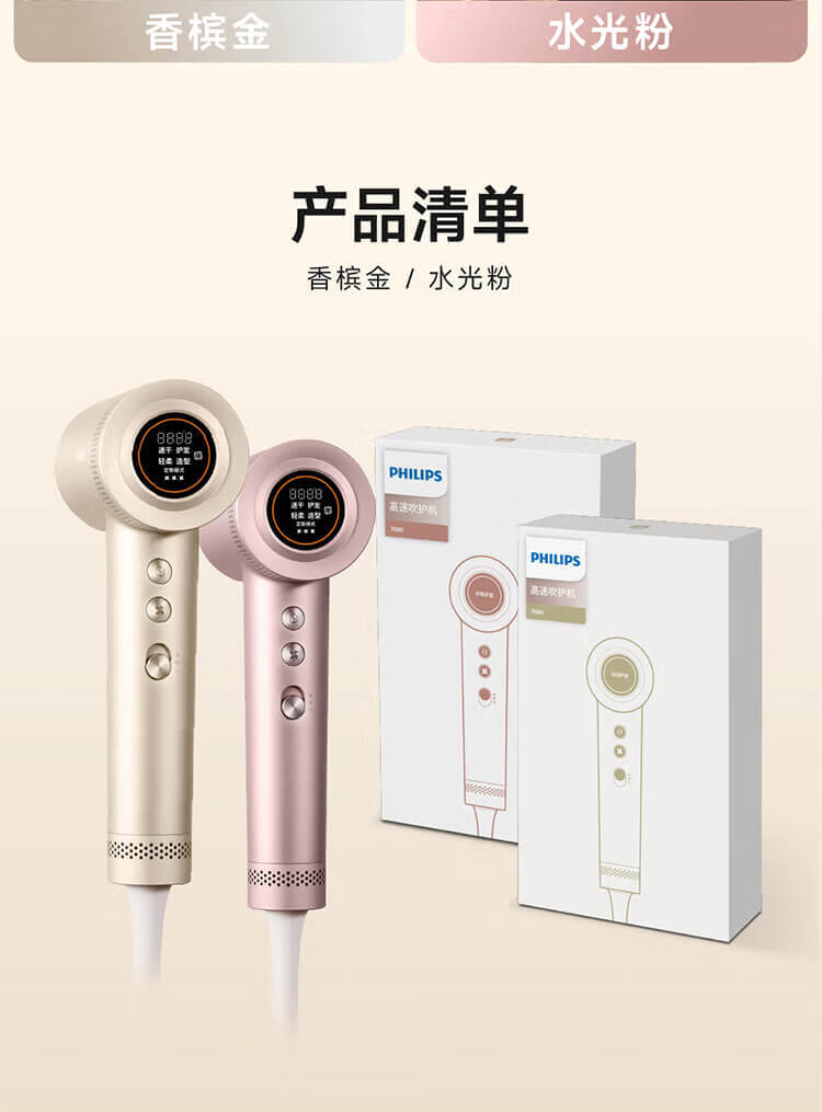 飞利浦(PHILIPS)7系Pro高速护发吹风机鎏金筒家用静音负离子大功率不伤发 香槟金国家补贴 生日礼物