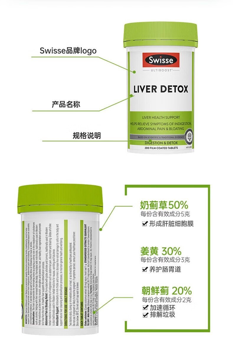 Swisse斯维诗澳洲Swisse高浓度奶蓟草片养肝片养肝宁200粒解醒酒熬夜 熬夜应酬 200粒*2瓶【护肝片优惠装】
