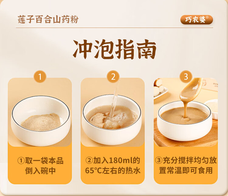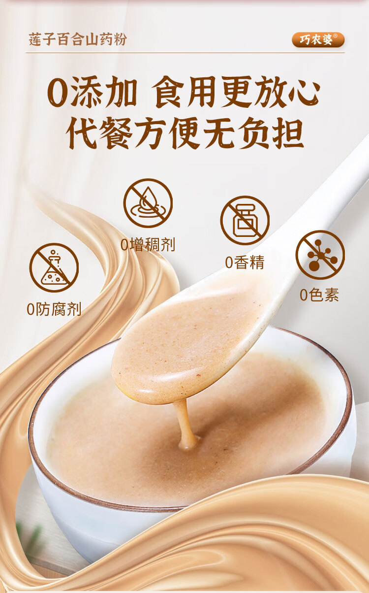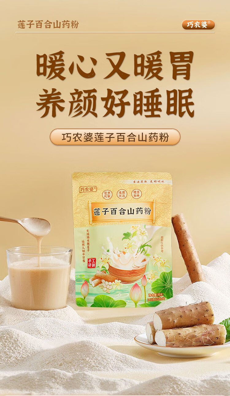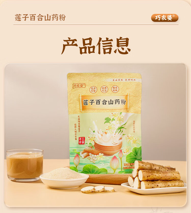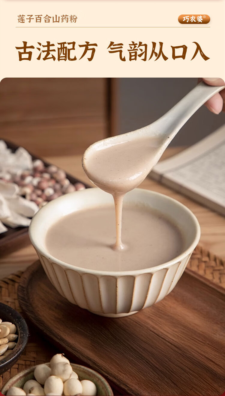 巧农婆莲子百合山药粉养胃营养早餐代餐粉无糖免煮冲泡即食老人速食米糊 【巩固周期装】 245g*4袋 (28小包)