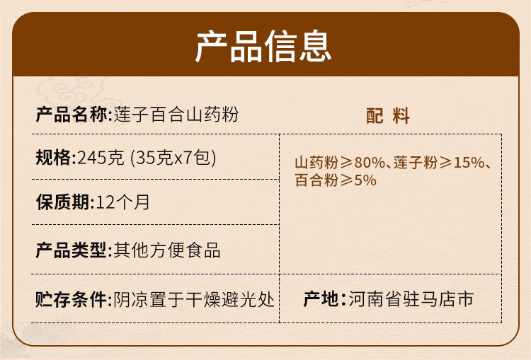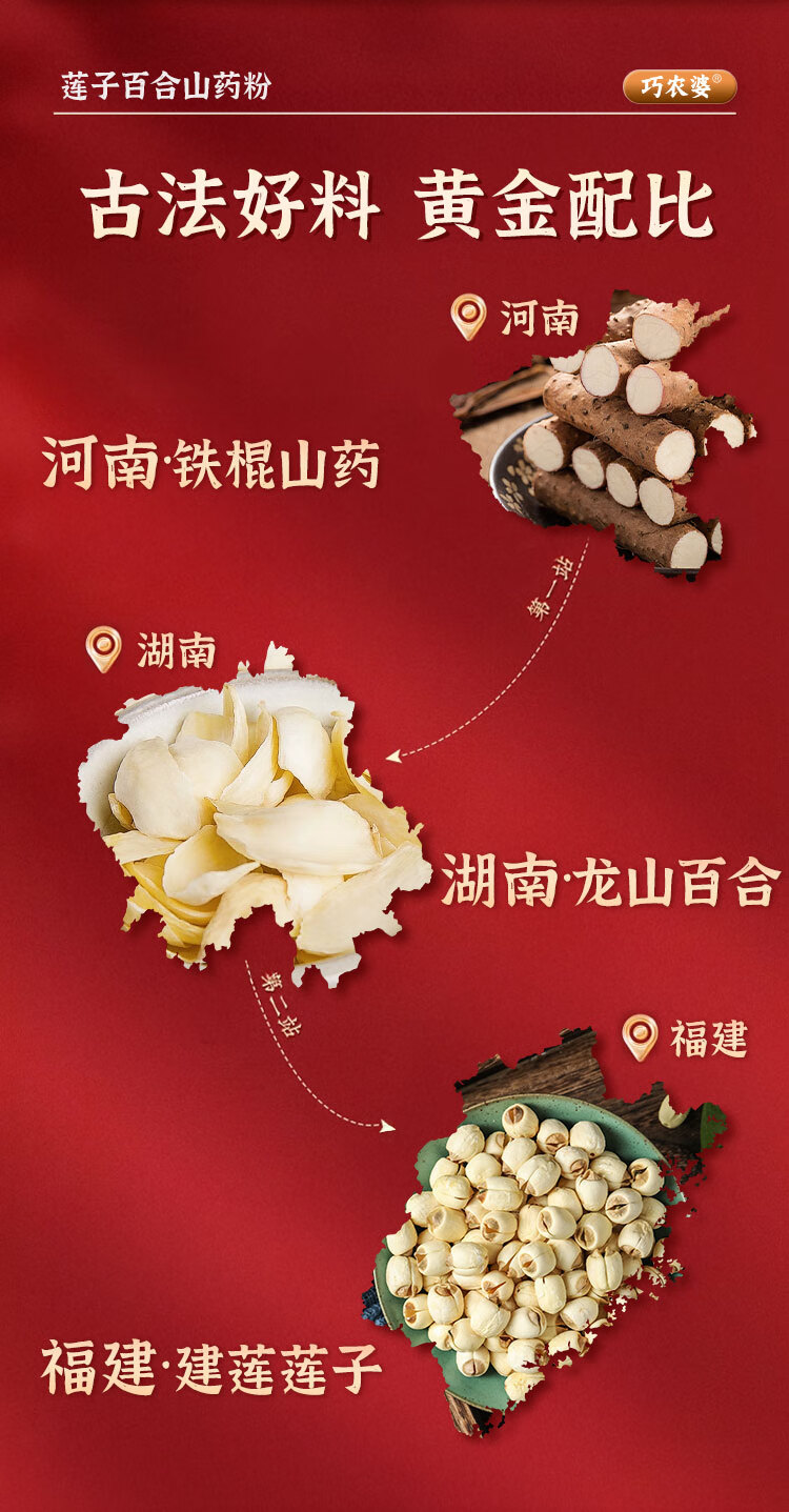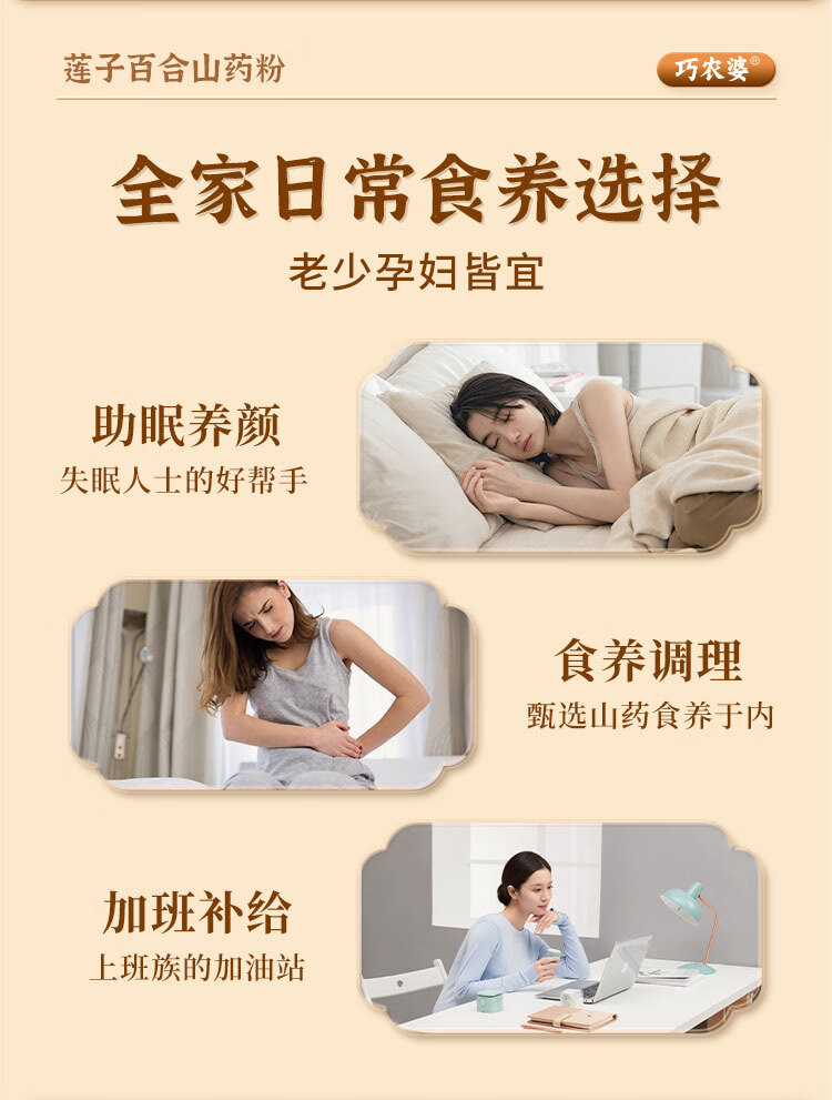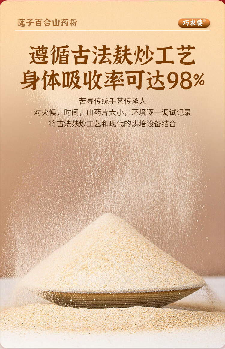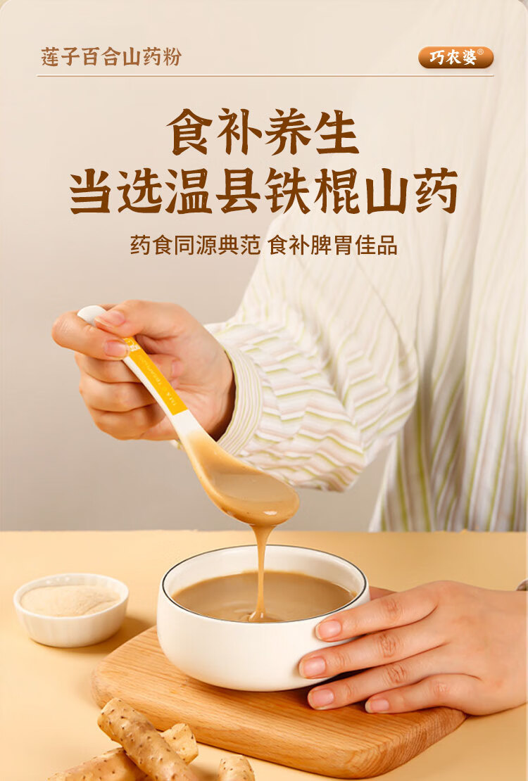 巧农婆莲子百合山药粉养胃营养早餐代餐粉无糖免煮冲泡即食老人速食米糊 【巩固周期装】 245g*4袋 (28小包)