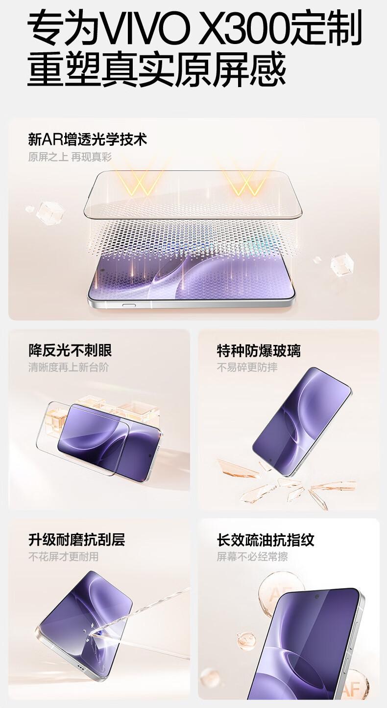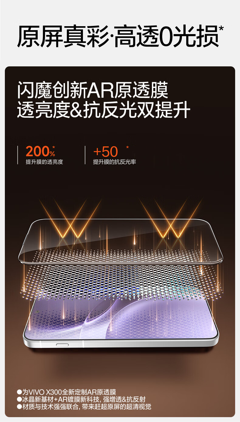 闪魔【严选直发】适用vivox300pro钢化膜vivox300钢化膜AR增透手机膜 VIVOX300pro 1片装【AR增透|秒贴】 一件包邮|现货速发