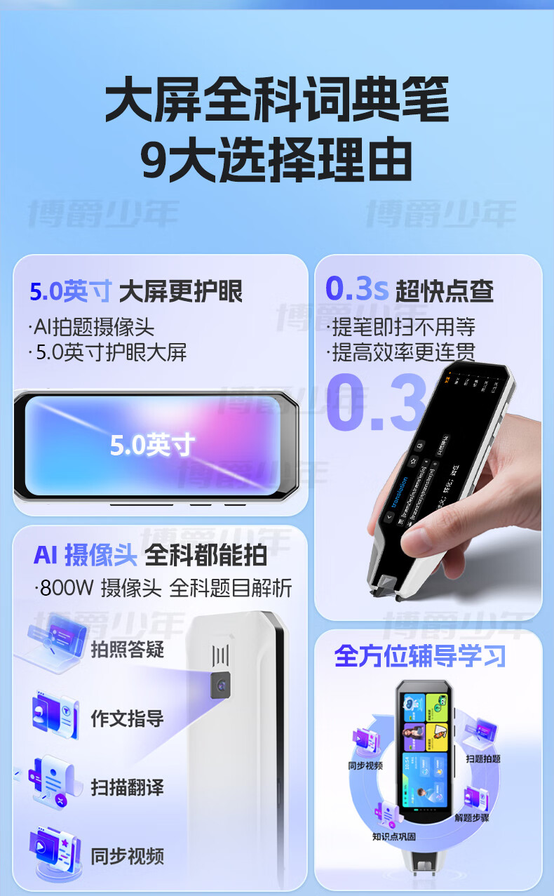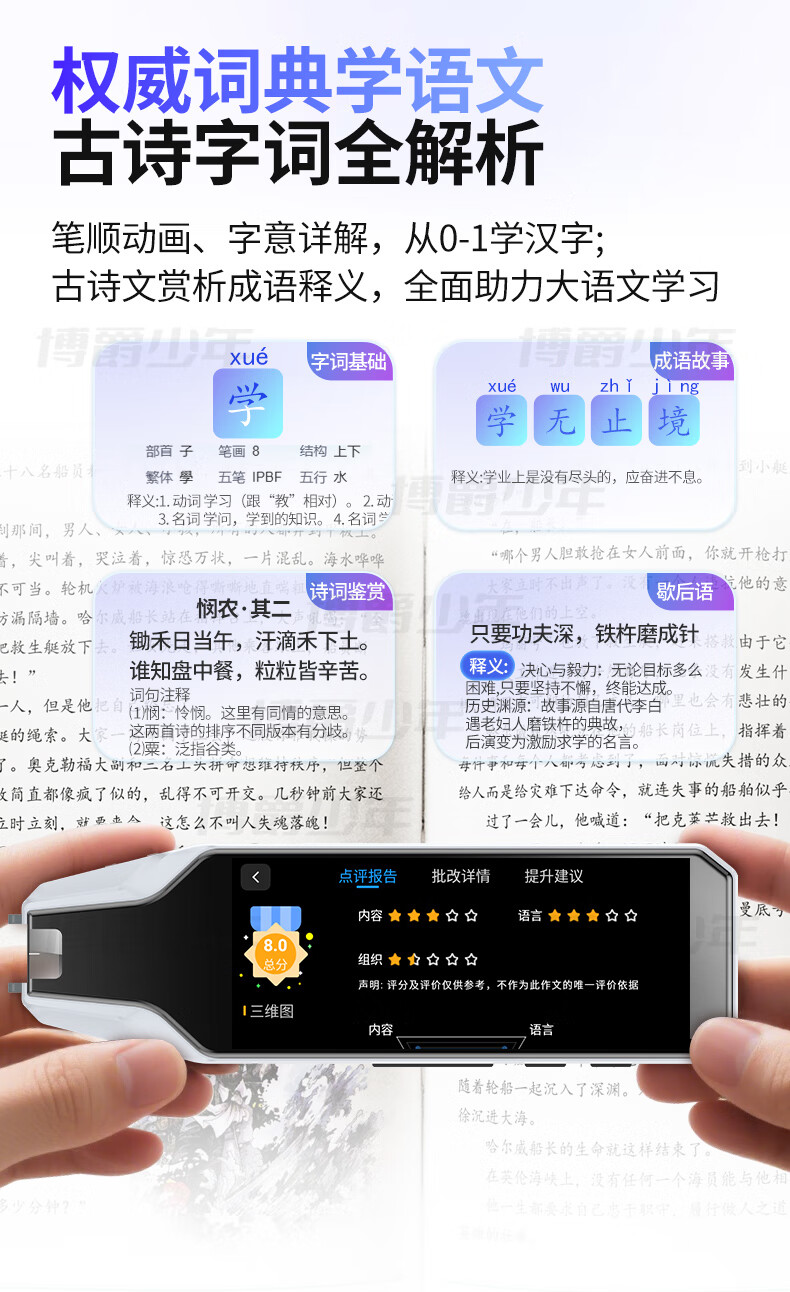 博爵少年5G英语点读笔小学初中高中同步全科万能通用词典笔翻译笔最新款AI老师一对一讲解分析 基础版扫描翻译 5G智能+拍照+全科+投屏+名师课堂+新课标