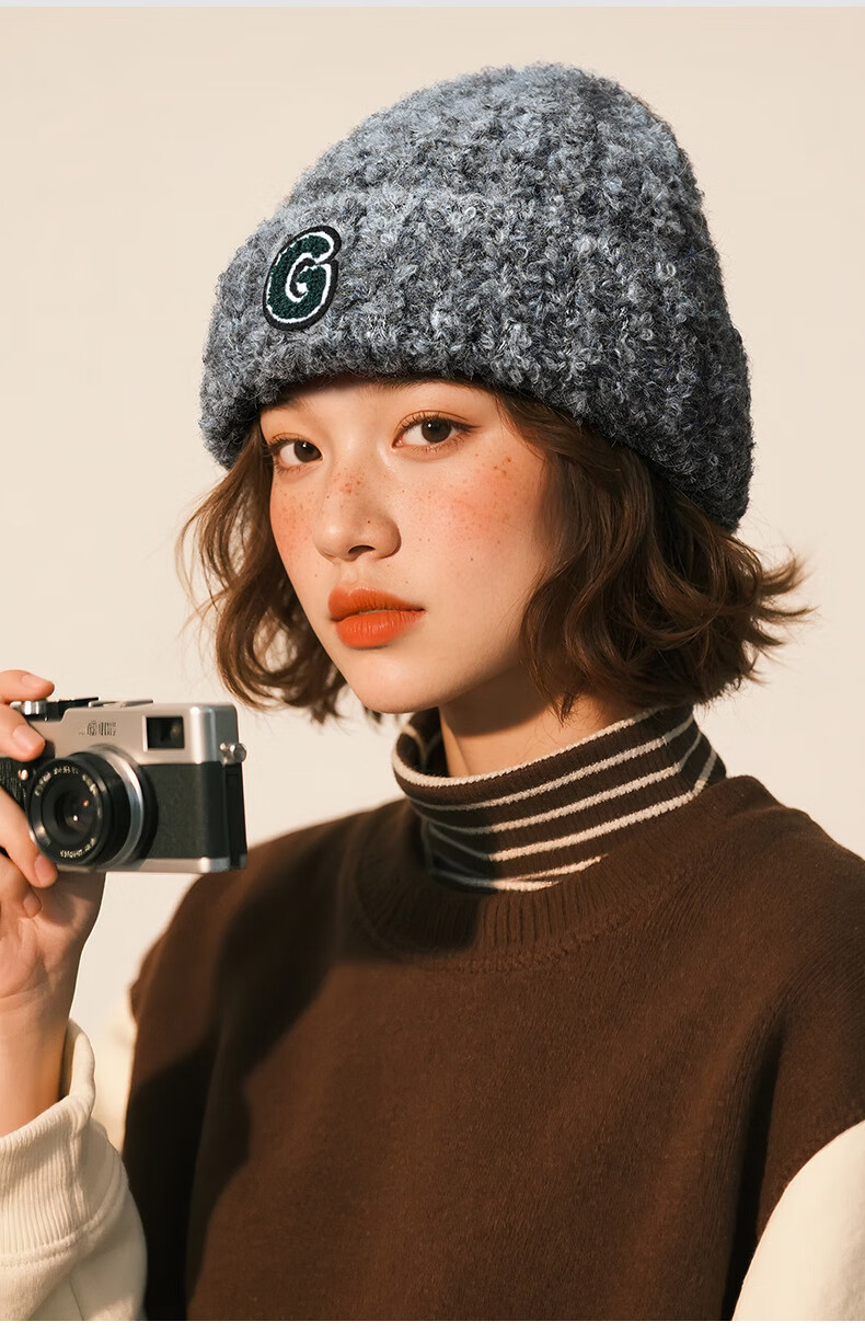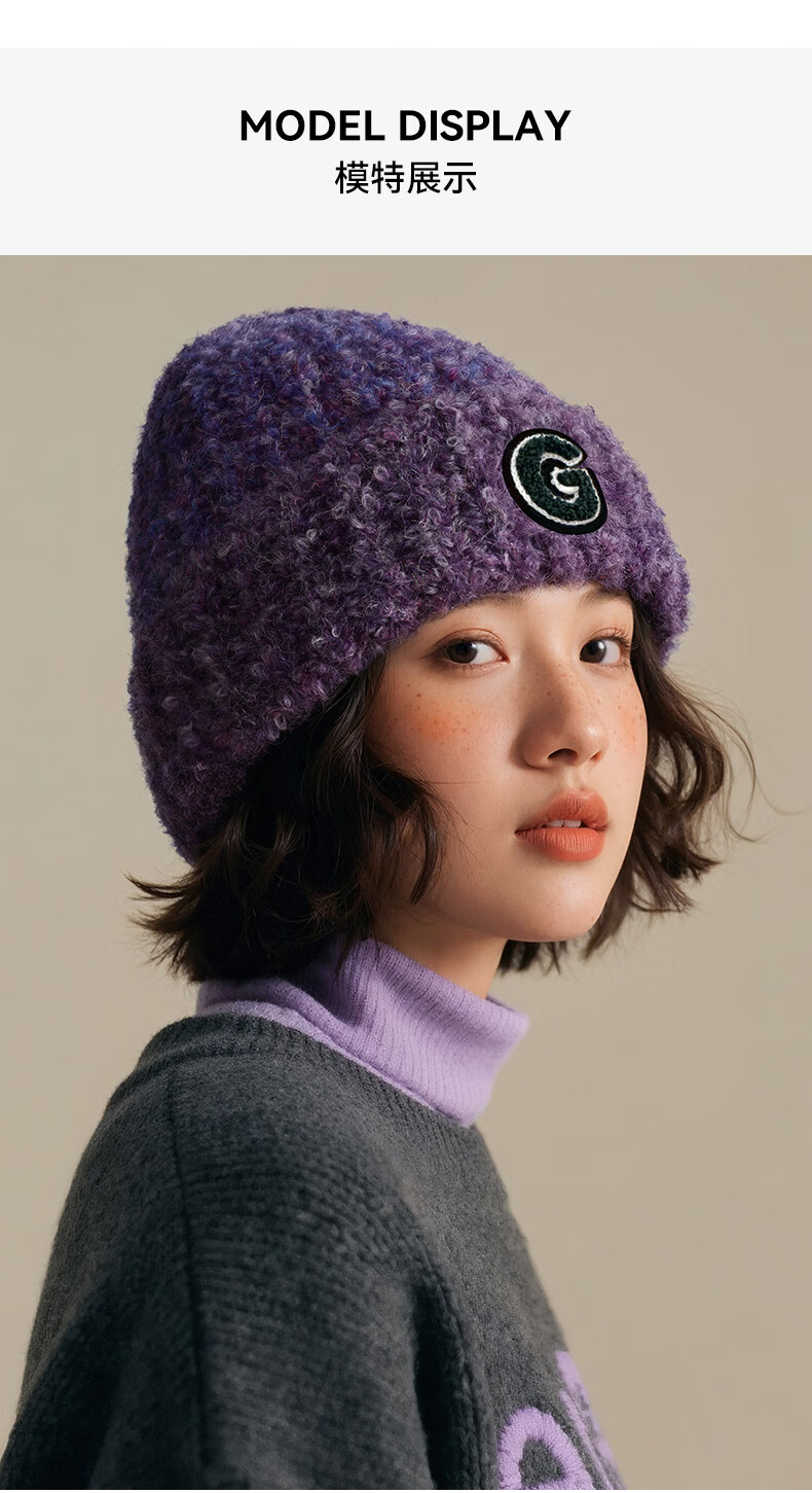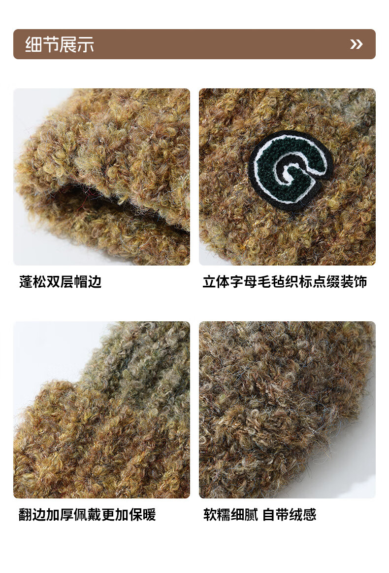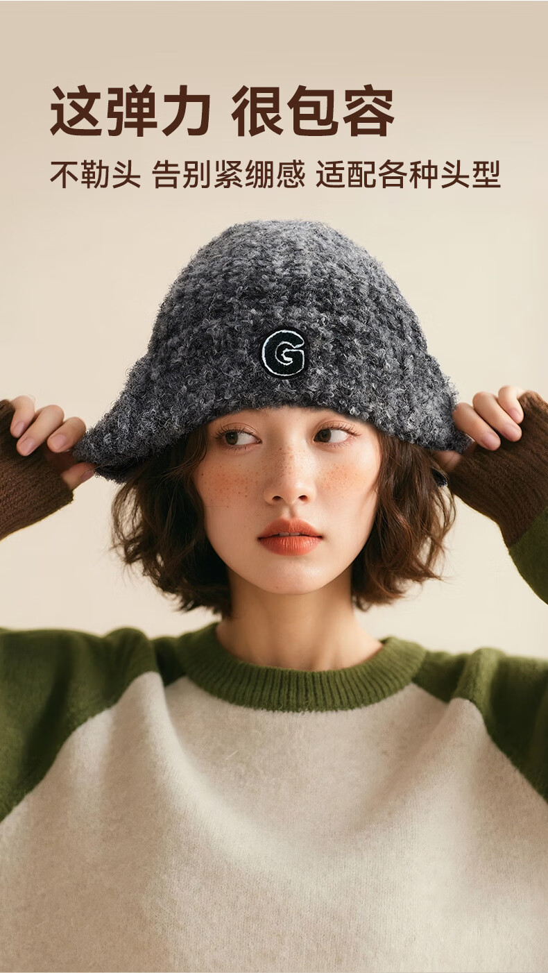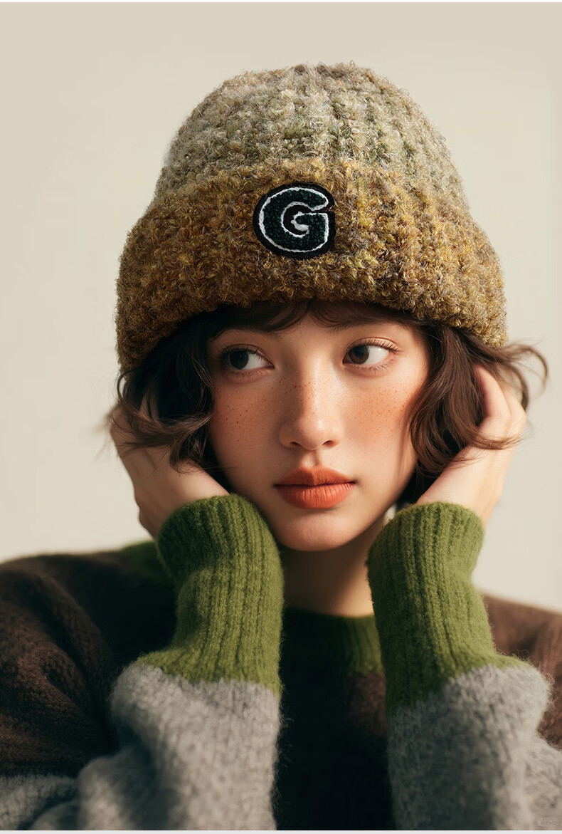 自相遇精品毛线帽女秋冬针织帽羊毛混纺加厚保暖百搭渐变大头围显脸小 暖檀棕 均码