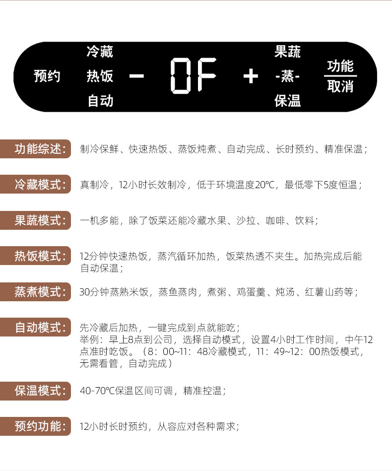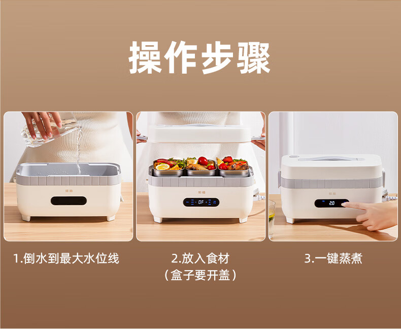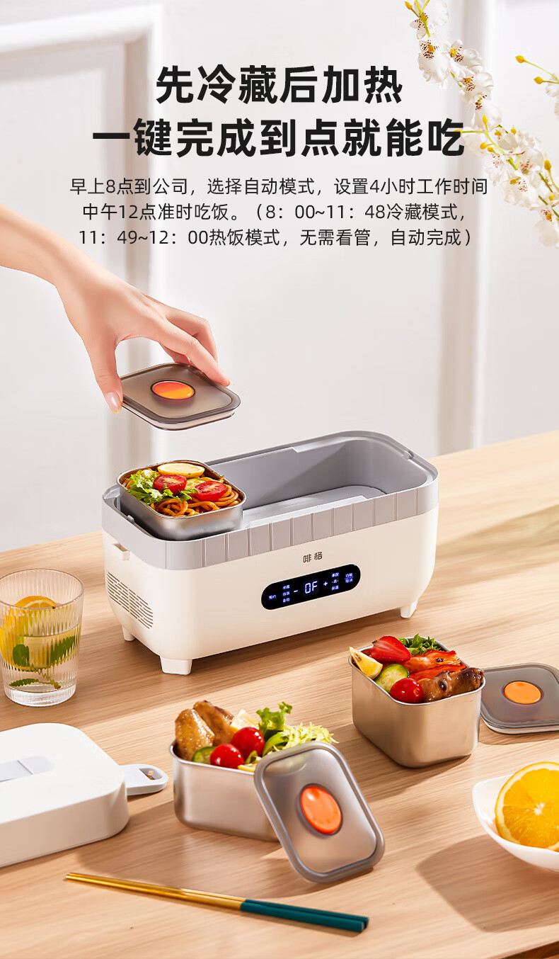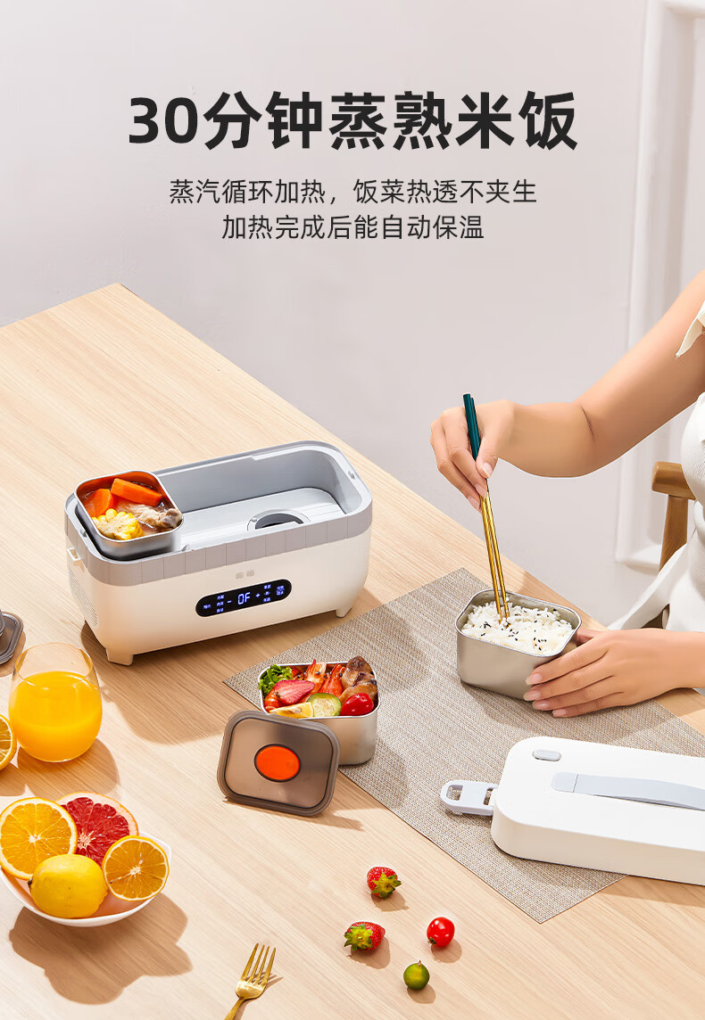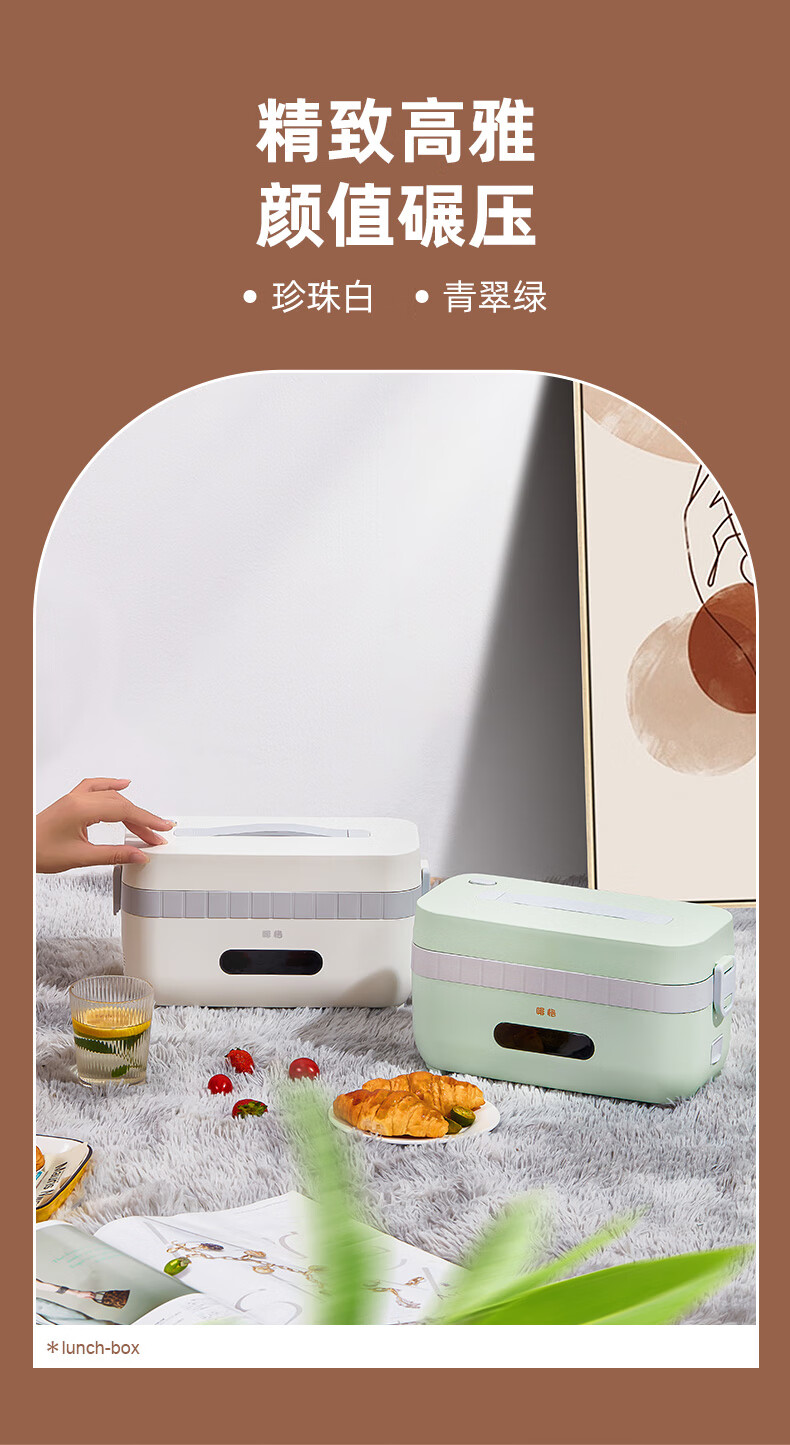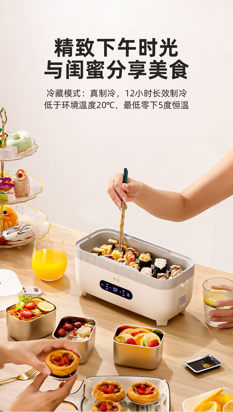 啡格制冷加热饭盒电热饭盒冷热冷藏保鲜制热两用饭盒可插电加热蒸饭定时预约保温煮饭热菜电饭盒1.3L 1.3L 珍珠白
