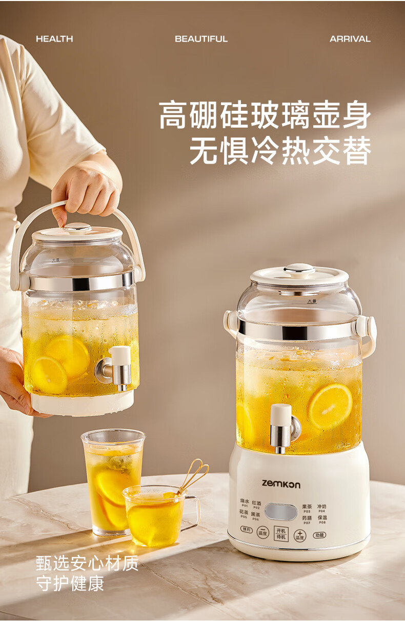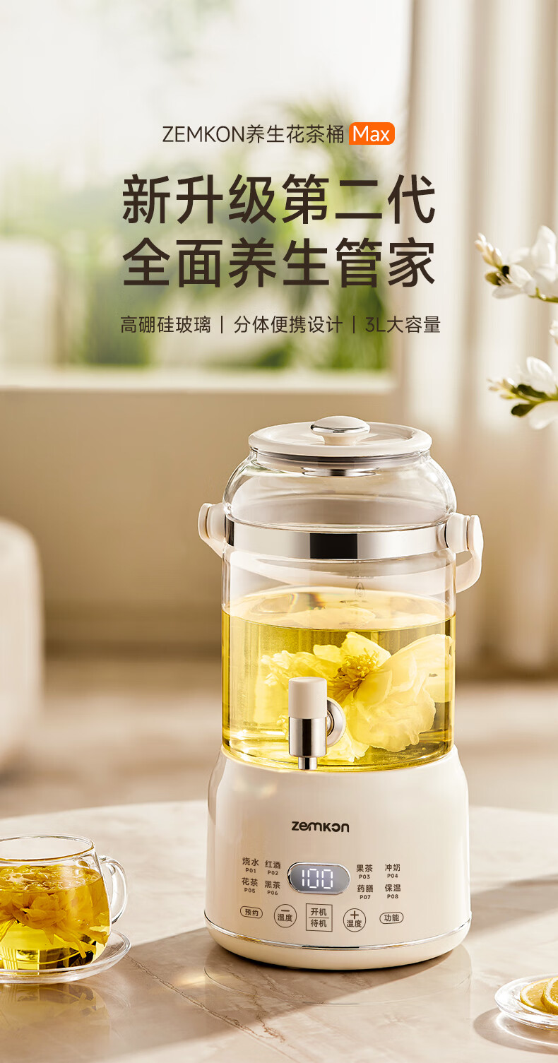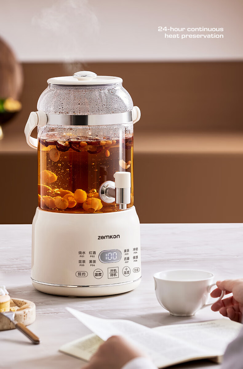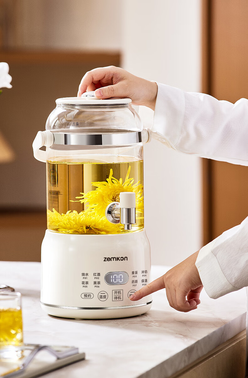ZEMKON玻璃养生壶母婴级不锈钢电热水壶多功能小型煮茶器烧水壶花茶壶恒温壶 【316钢】滤网版本 3L
