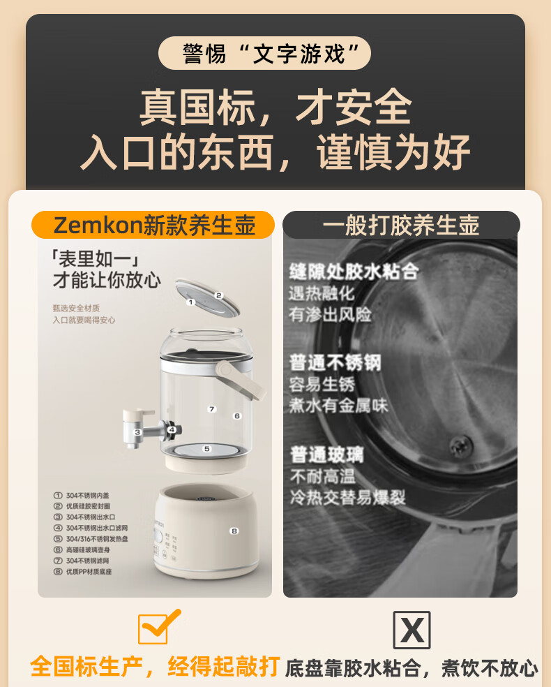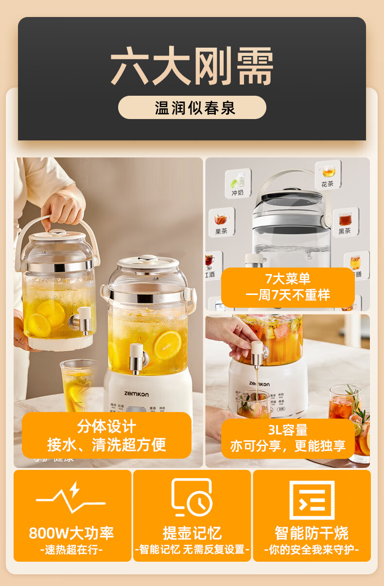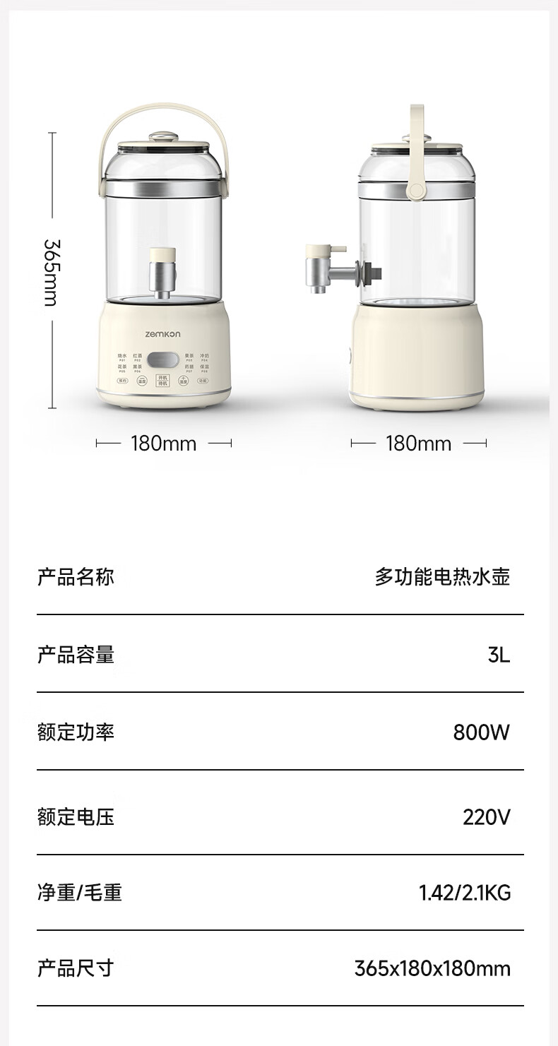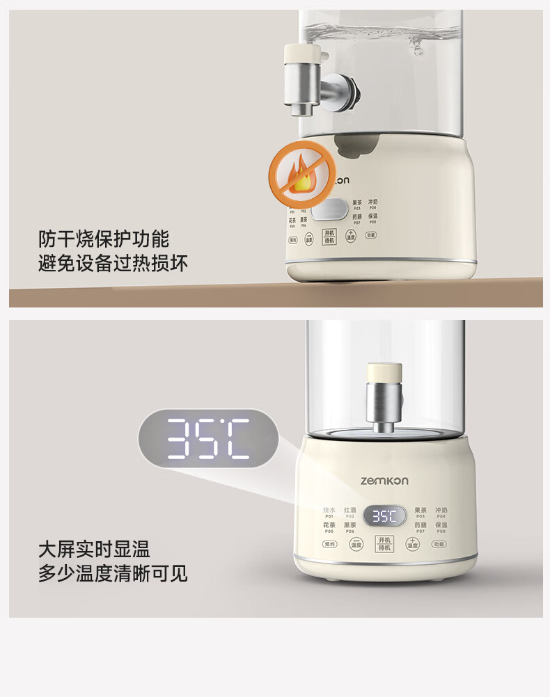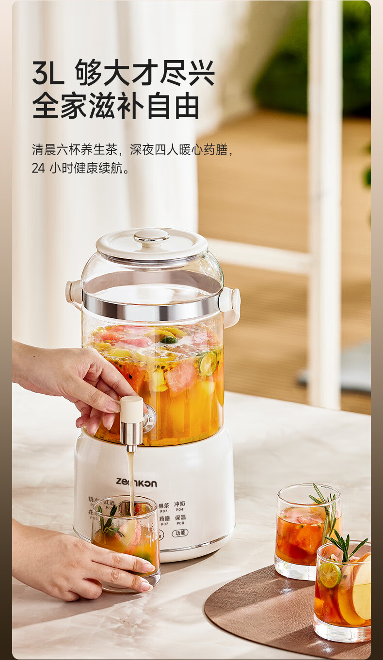 ZEMKON玻璃养生壶母婴级不锈钢电热水壶多功能小型煮茶器烧水壶花茶壶恒温壶 【316钢】滤网版本 3L