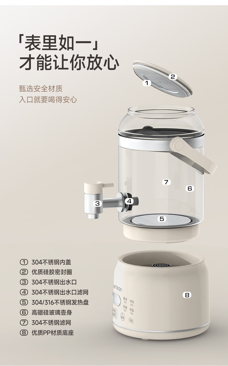 美的全玻璃养生壶 办公室烧水壶 家用多功能煮茶壶 花茶煮茶器 迷你小型电热水壶 围炉煮茶壶 【全玻璃】0金属0胶水0涂层 1L