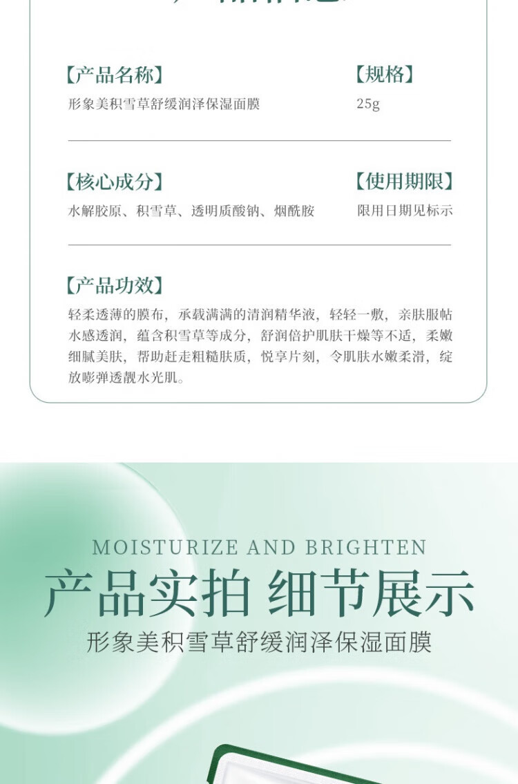 形象美【厂家直供】积雪草面膜面膜SN2109 【1片】润泽保湿面膜25g
