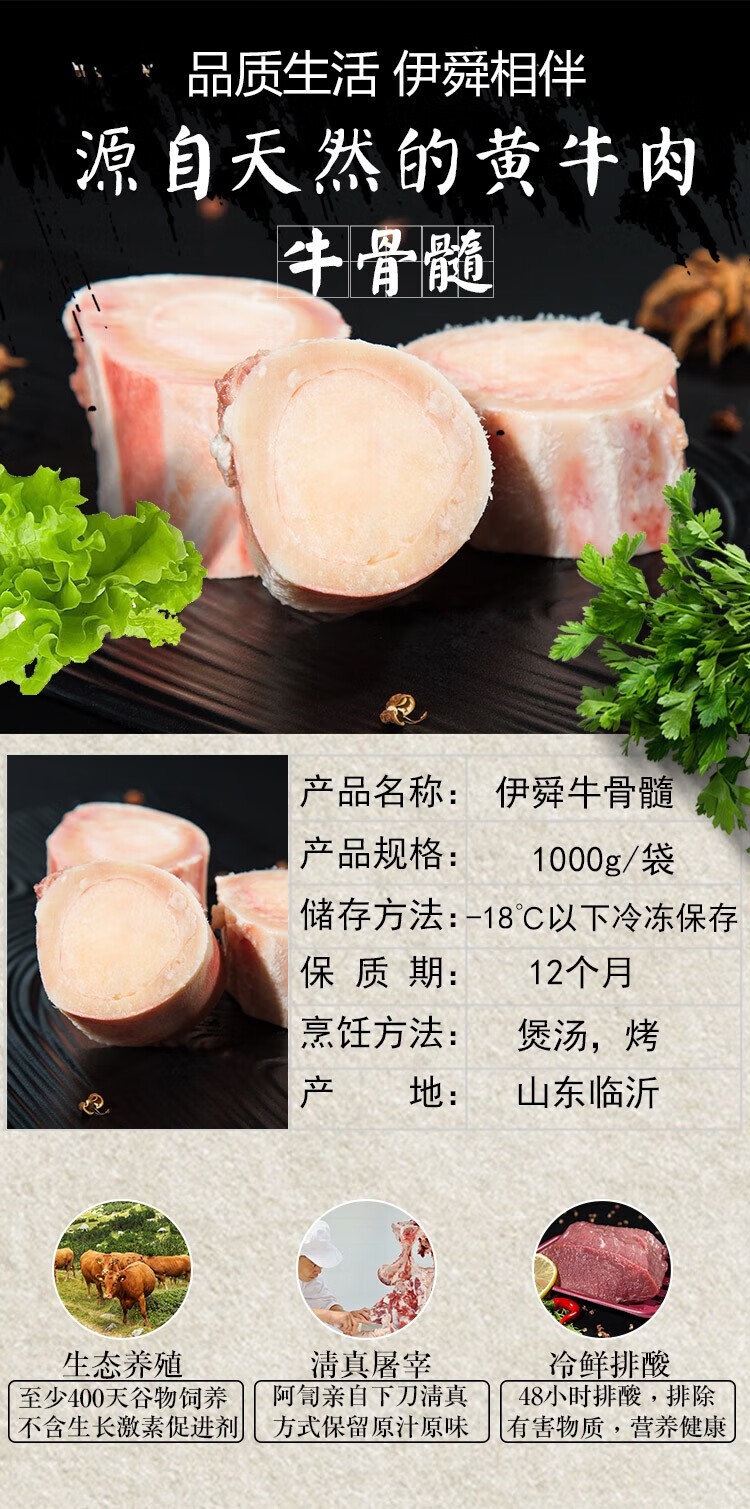 伊舜新鲜现宰杀黄牛牛骨髓牛筒骨生鲜牛棒骨现杀黄牛腿骨熬汤 筒骨骨髓2000克