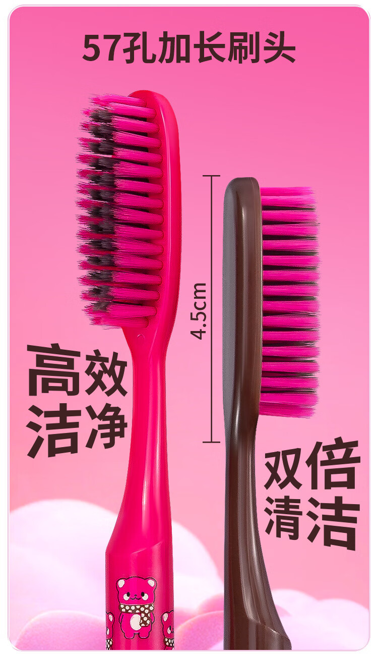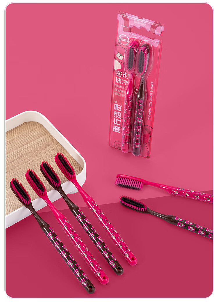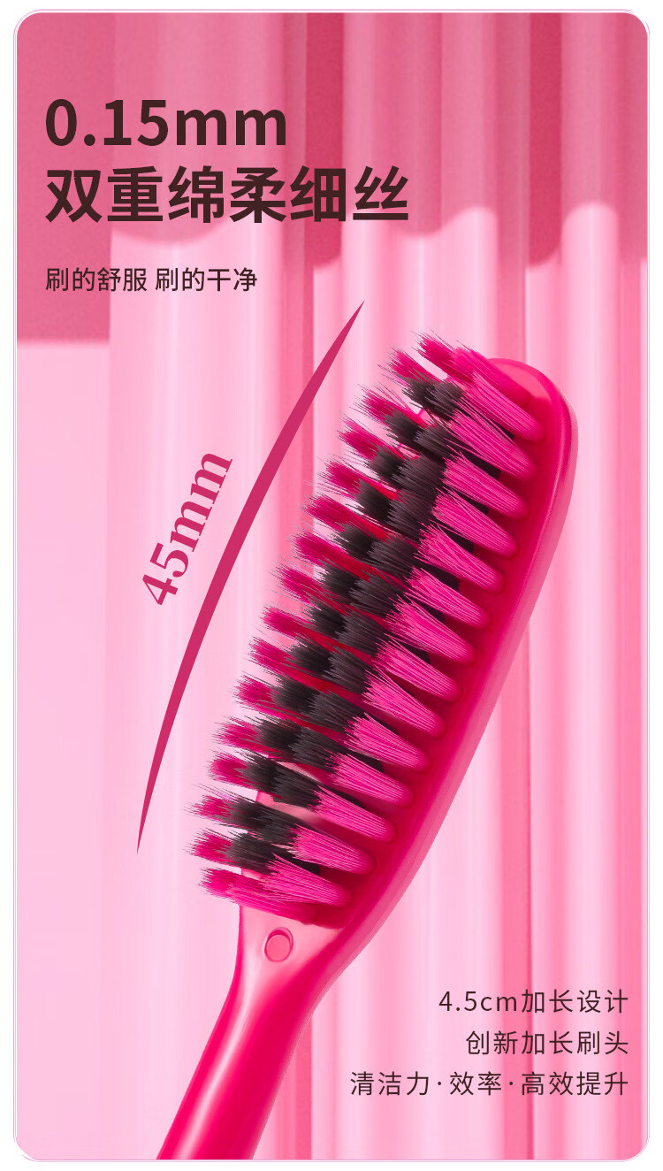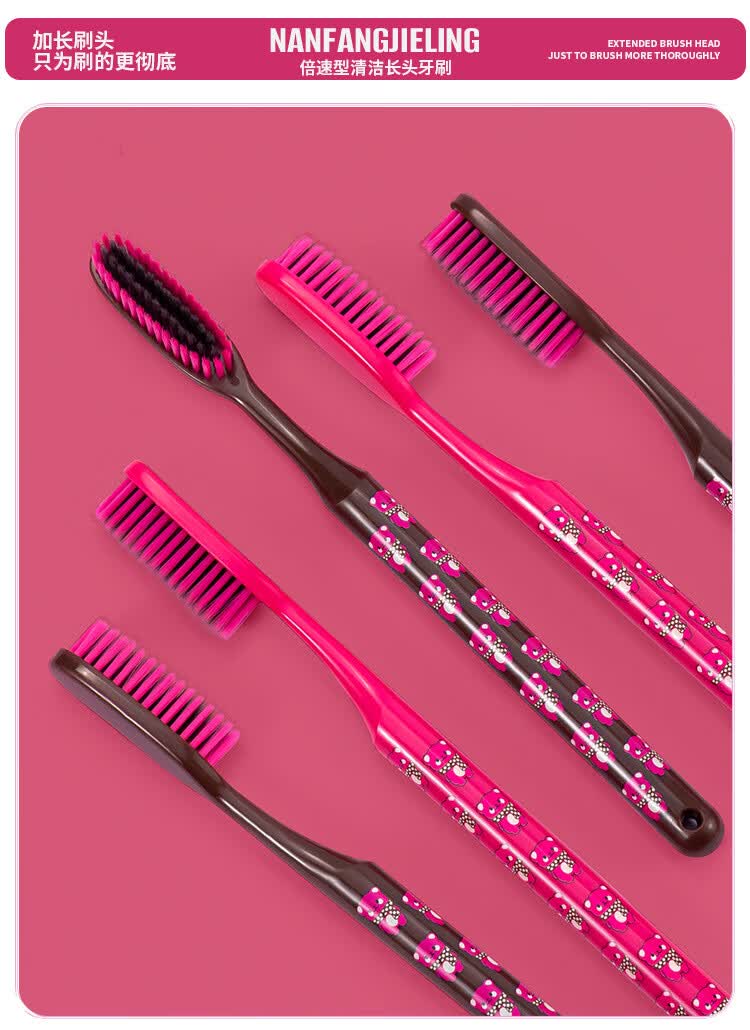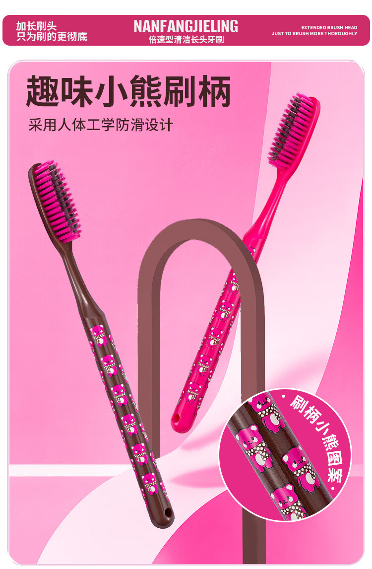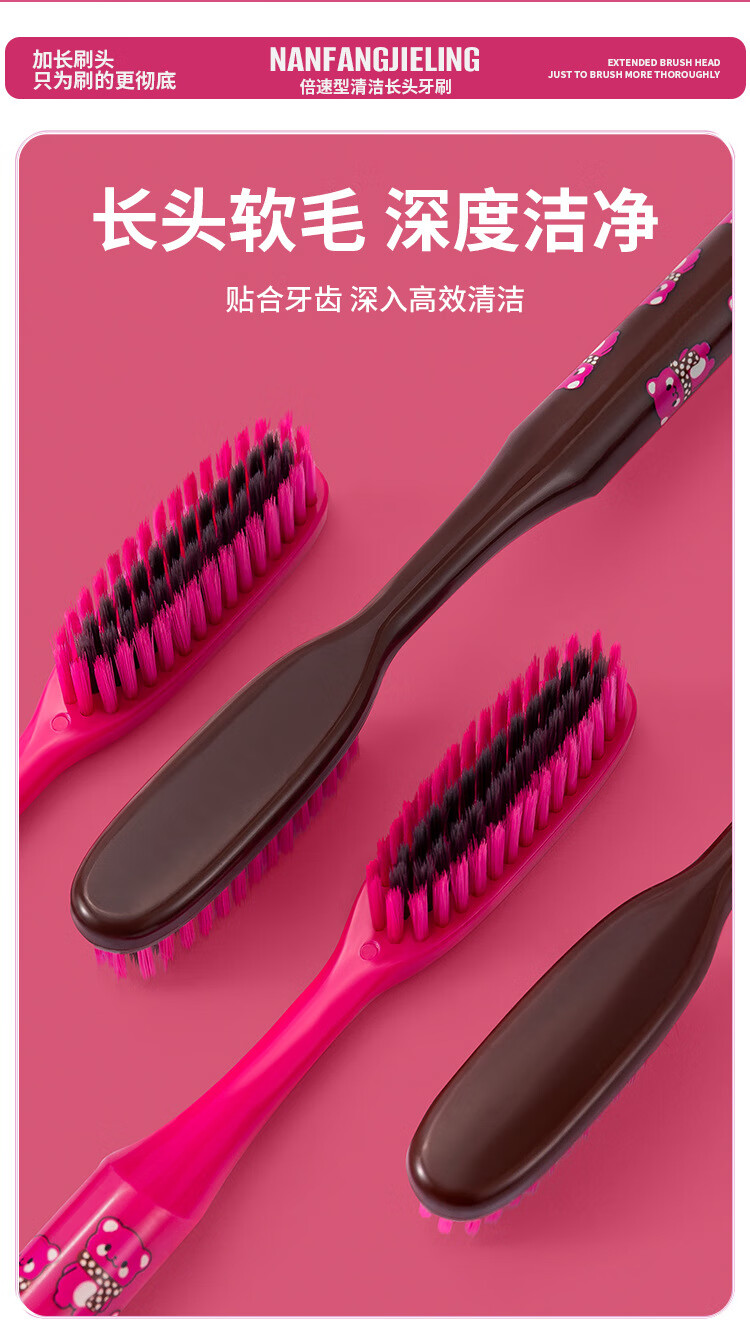南方洁灵长头牙刷创新洁净加长刷头细丝软毛牙刷家用宽头男女学生家庭 草莓长头软毛牙刷4支