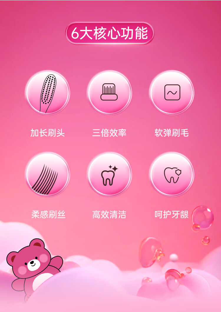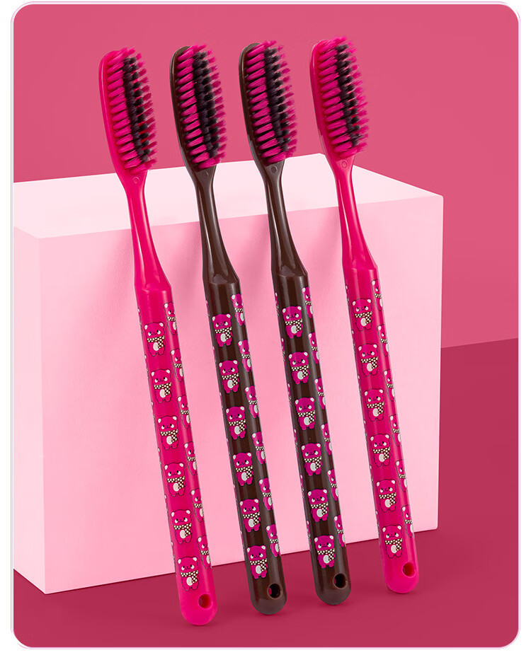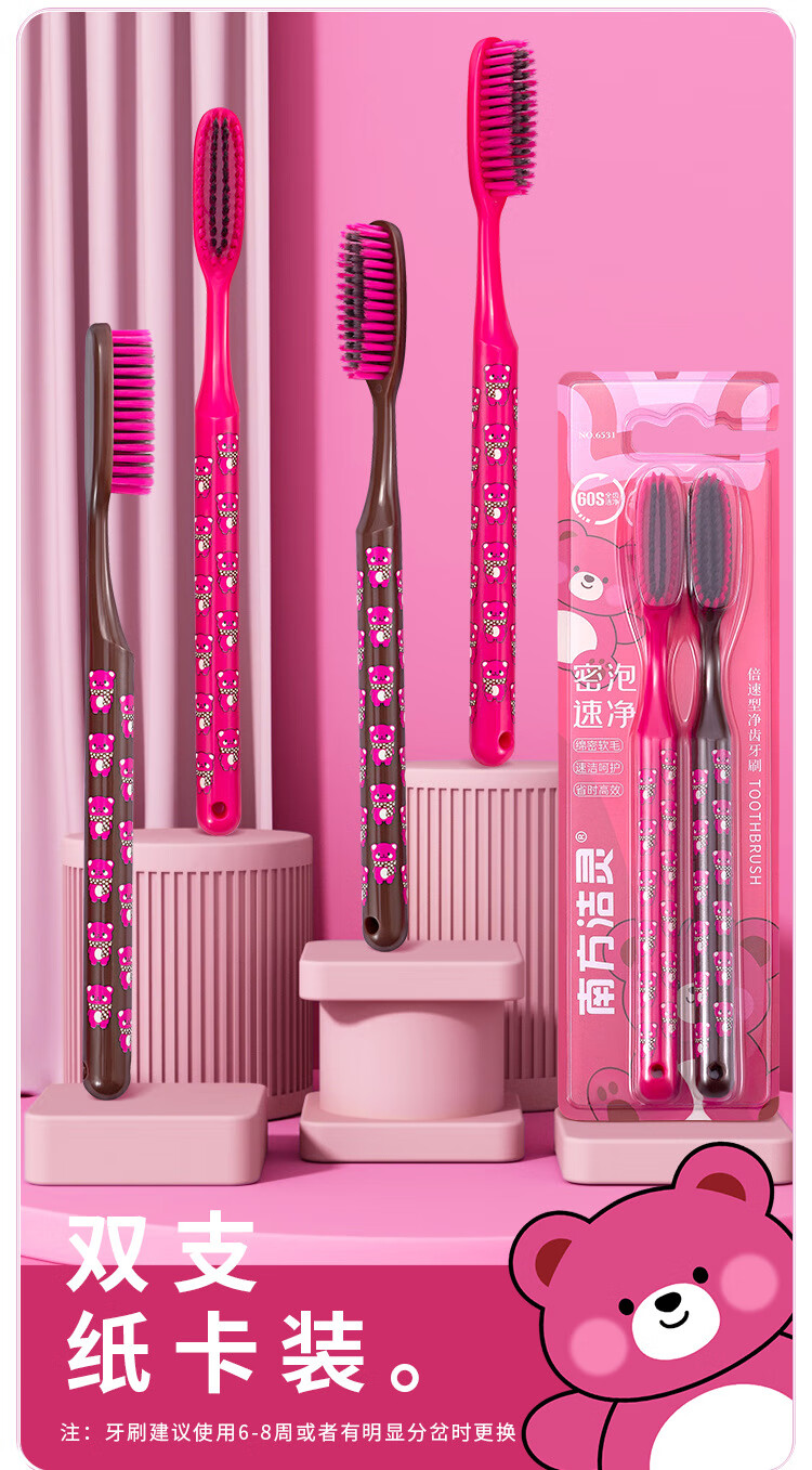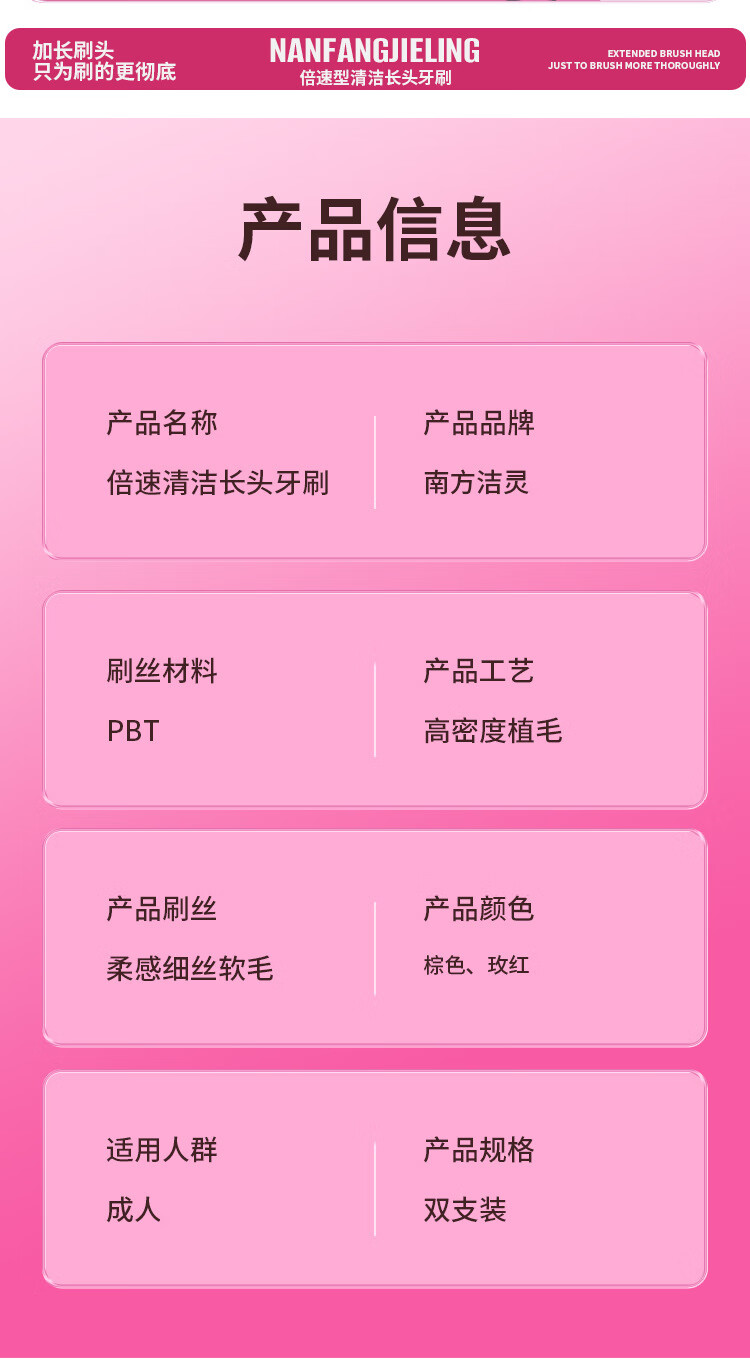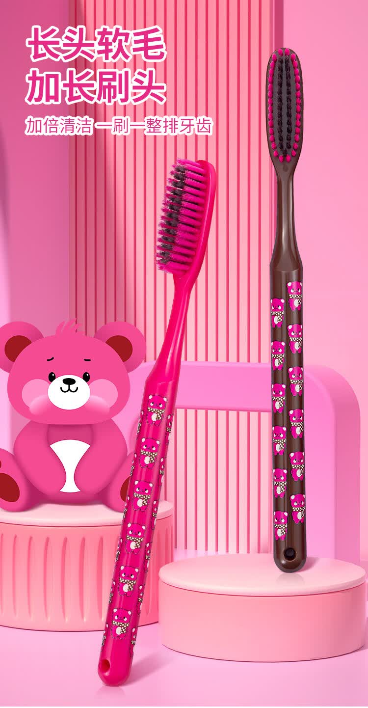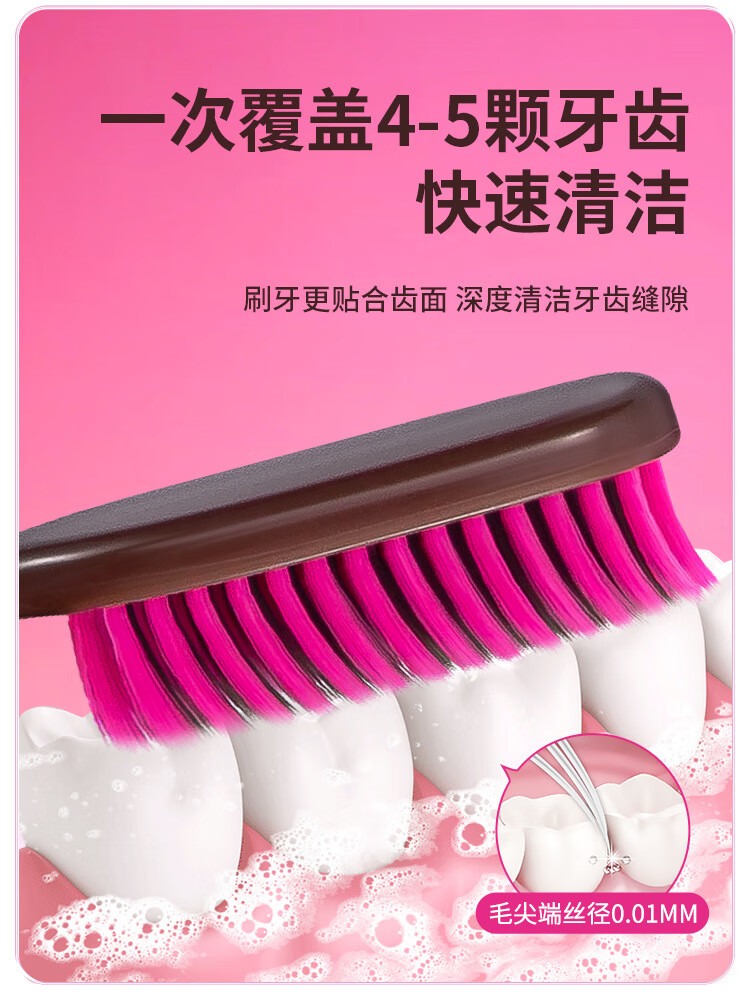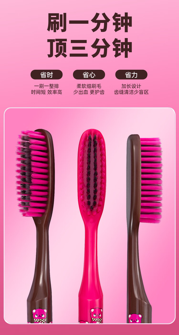 南方洁灵长头牙刷创新洁净加长刷头细丝软毛牙刷家用宽头男女学生家庭 草莓长头软毛牙刷4支
