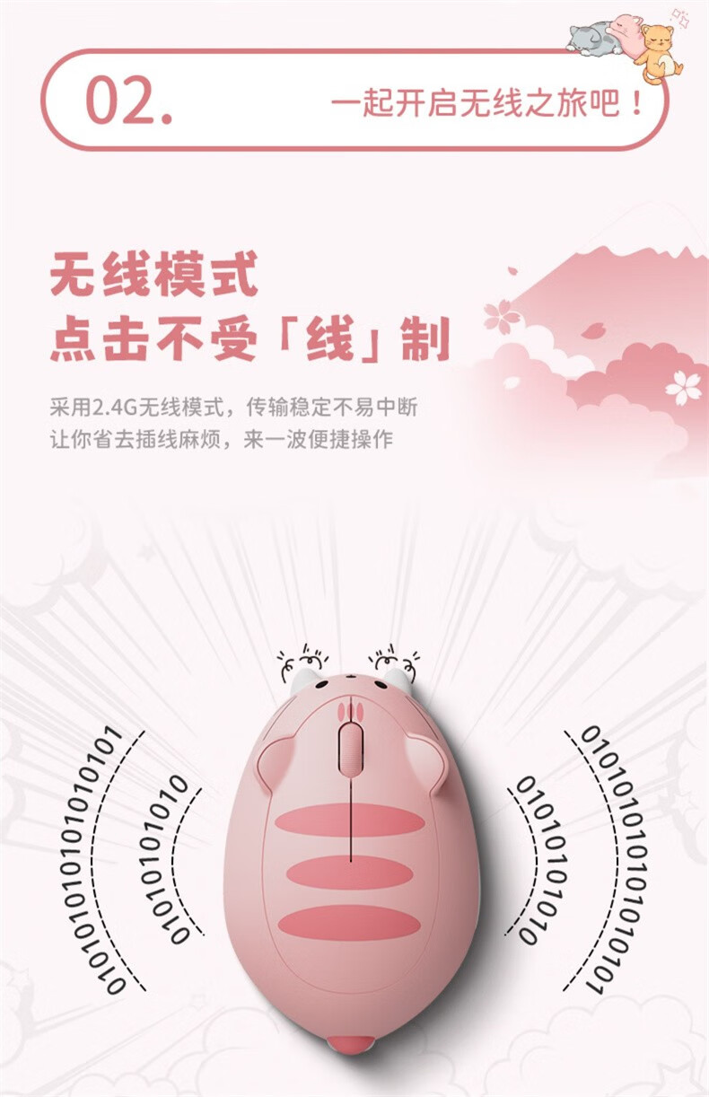 AKKO猫猫无线鼠标大手无线办公鼠标 对称鼠标 笔记本鼠标 电脑 女生 可爱 软萌粉色高颜值 2.4G 安琪-粉色三模【2.4G+蓝牙】-送鼠标垫