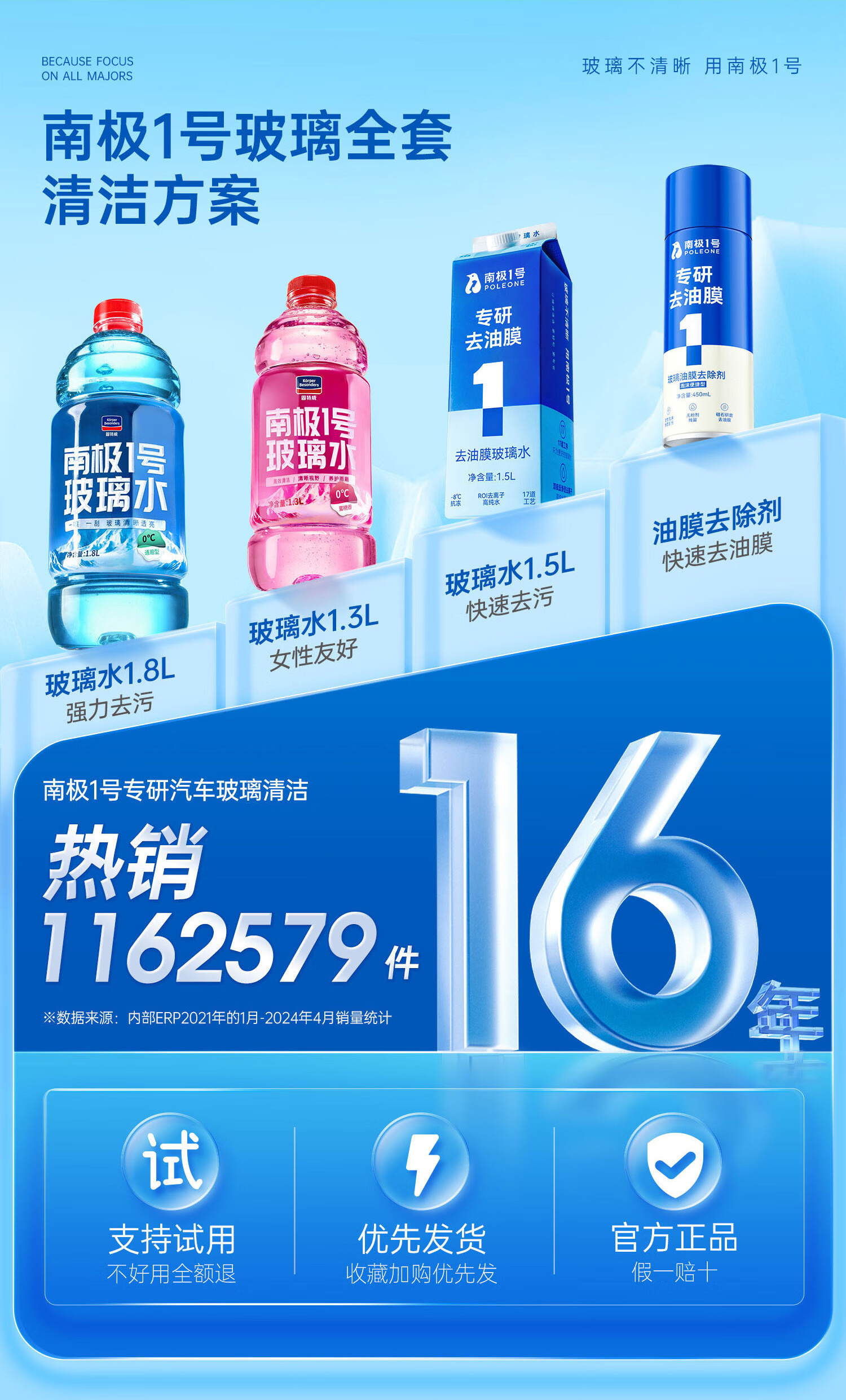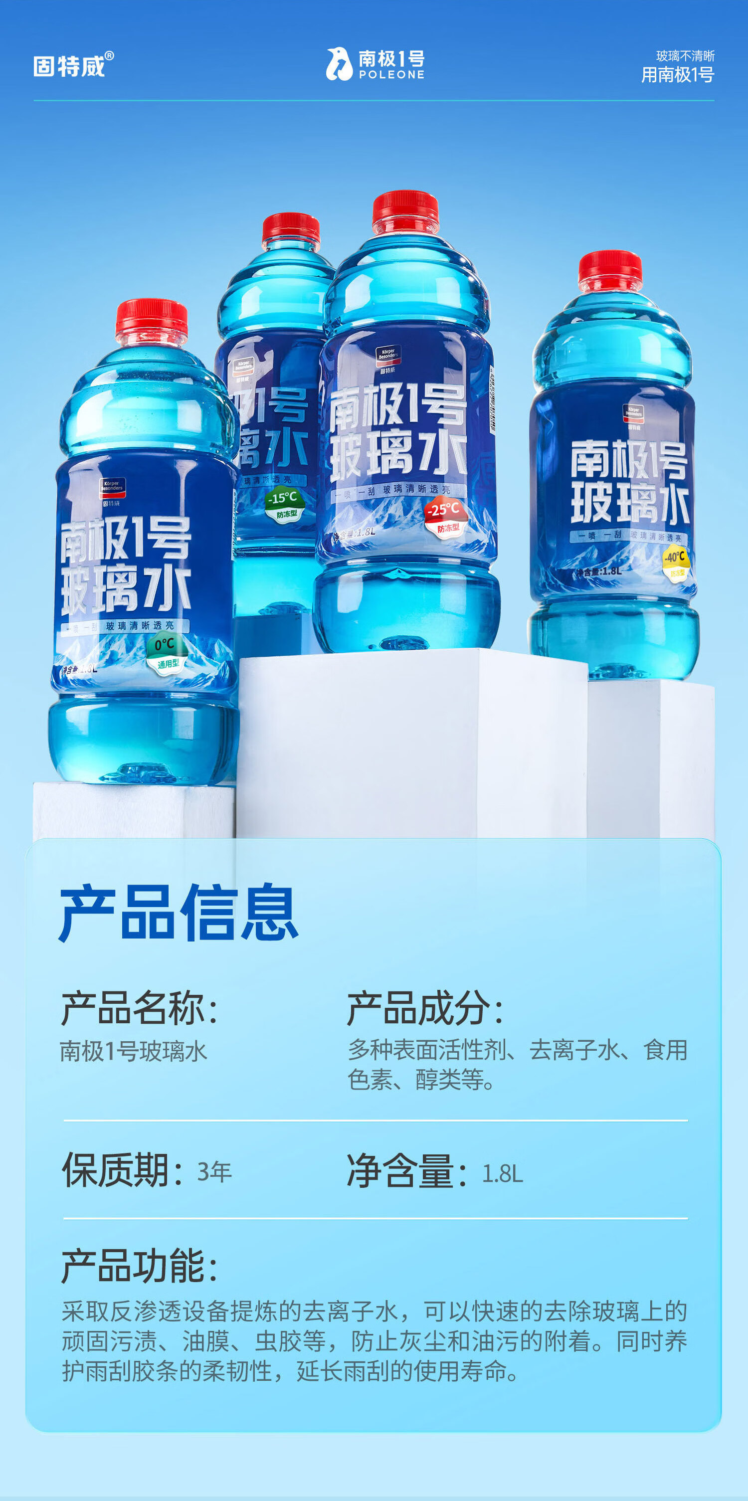 固特威 汽车玻璃水 冬季防冻玻璃去油膜雨刮水清洁剂去污剂南极一号 防冻玻璃水-15℃1.8L*4瓶