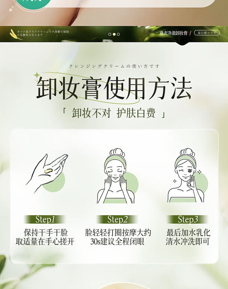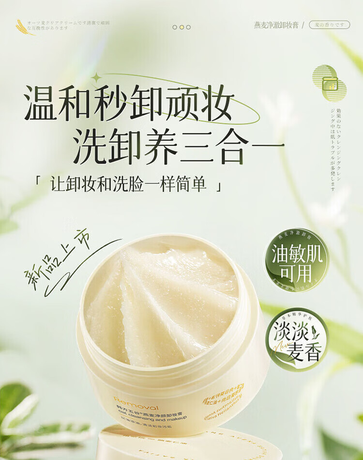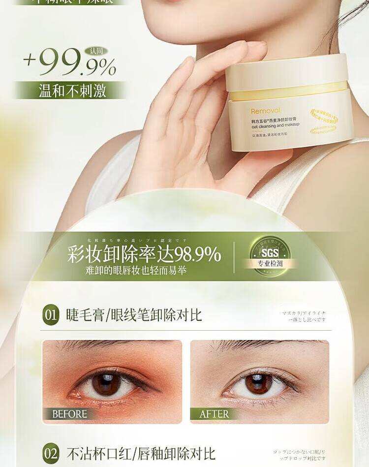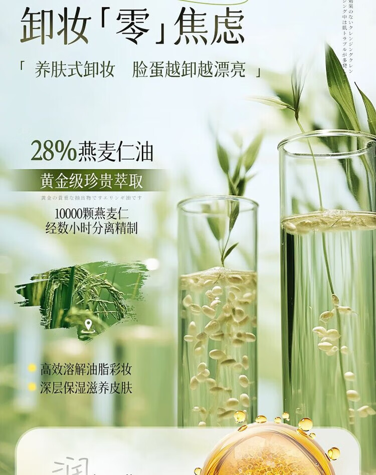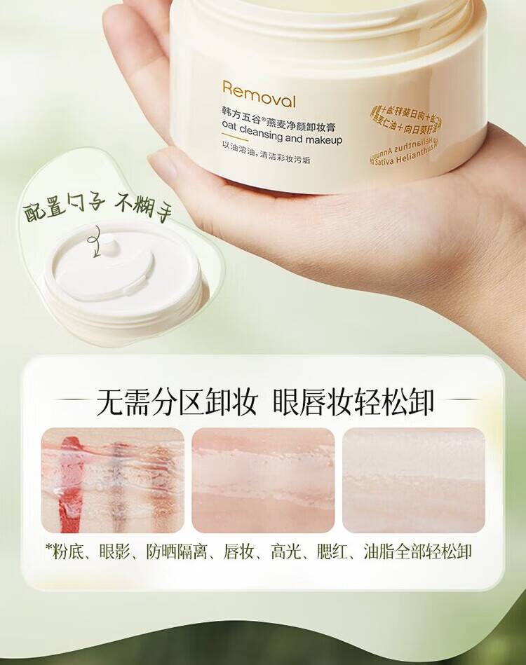 韩方五谷燕麦卸妆膏温和清洁眼唇面部浓淡妆净颜敏肌卸妆水 1盒