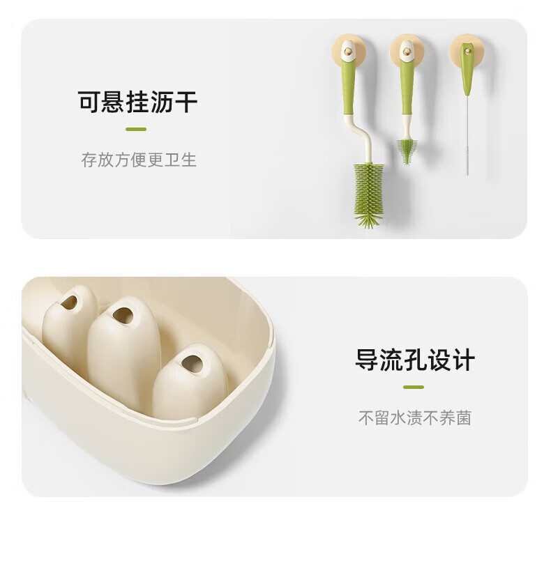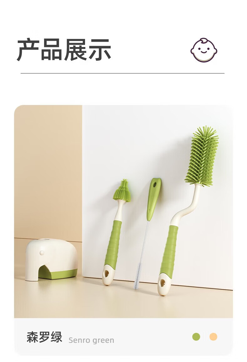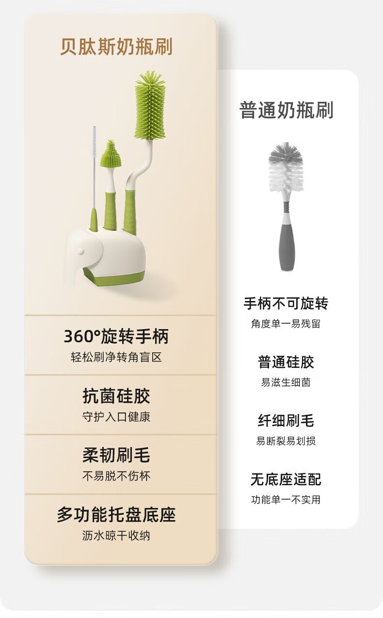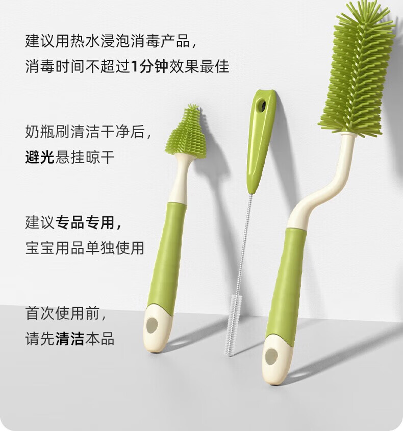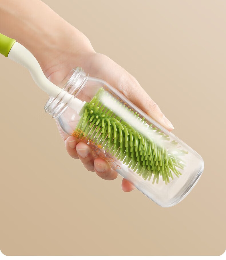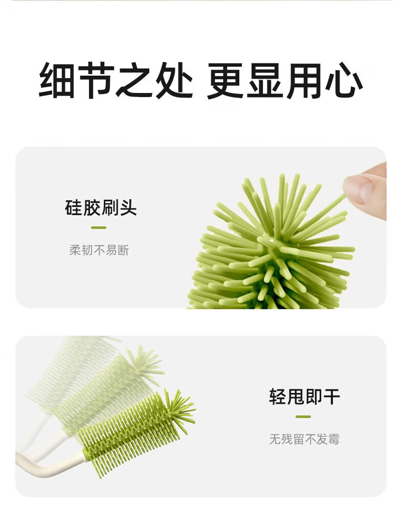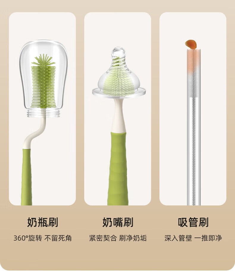 贝肽斯奶瓶刷硅胶清洗刷新生婴儿专用清洗奶瓶刷子吸管刷子便携套装 【樱花粉】防滑手柄硅胶三件套 旋转柄硅胶奶瓶刷套装